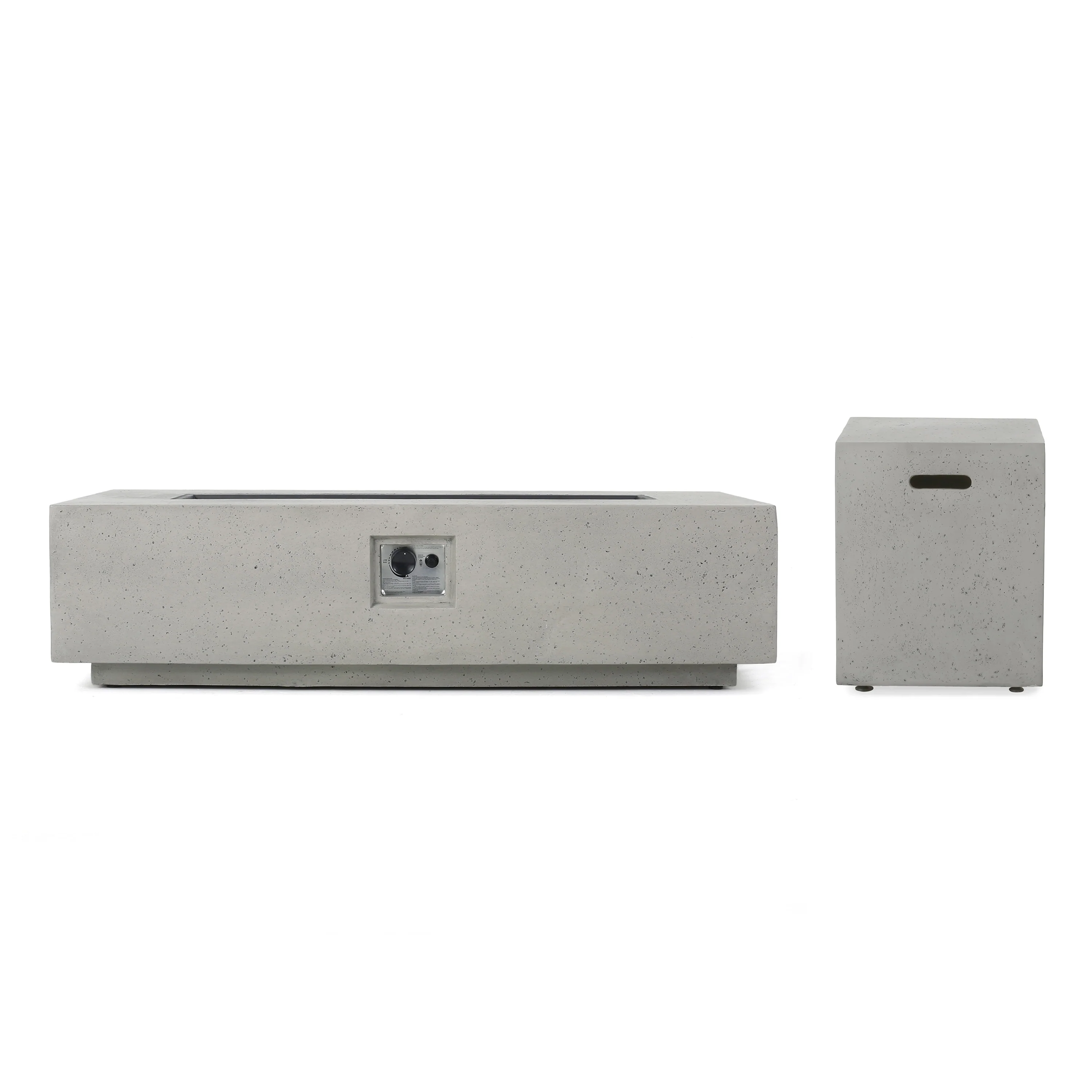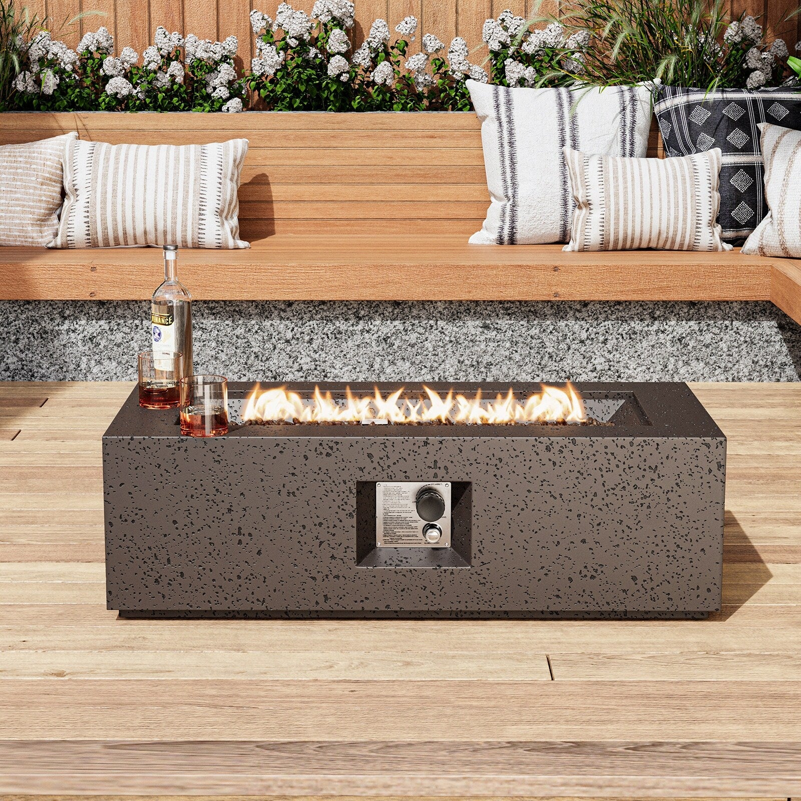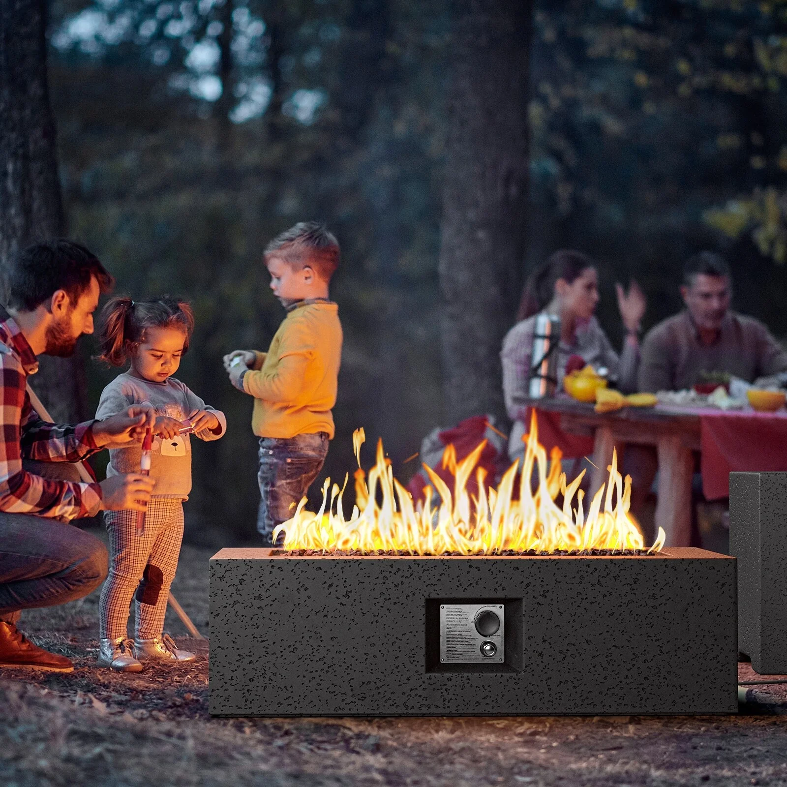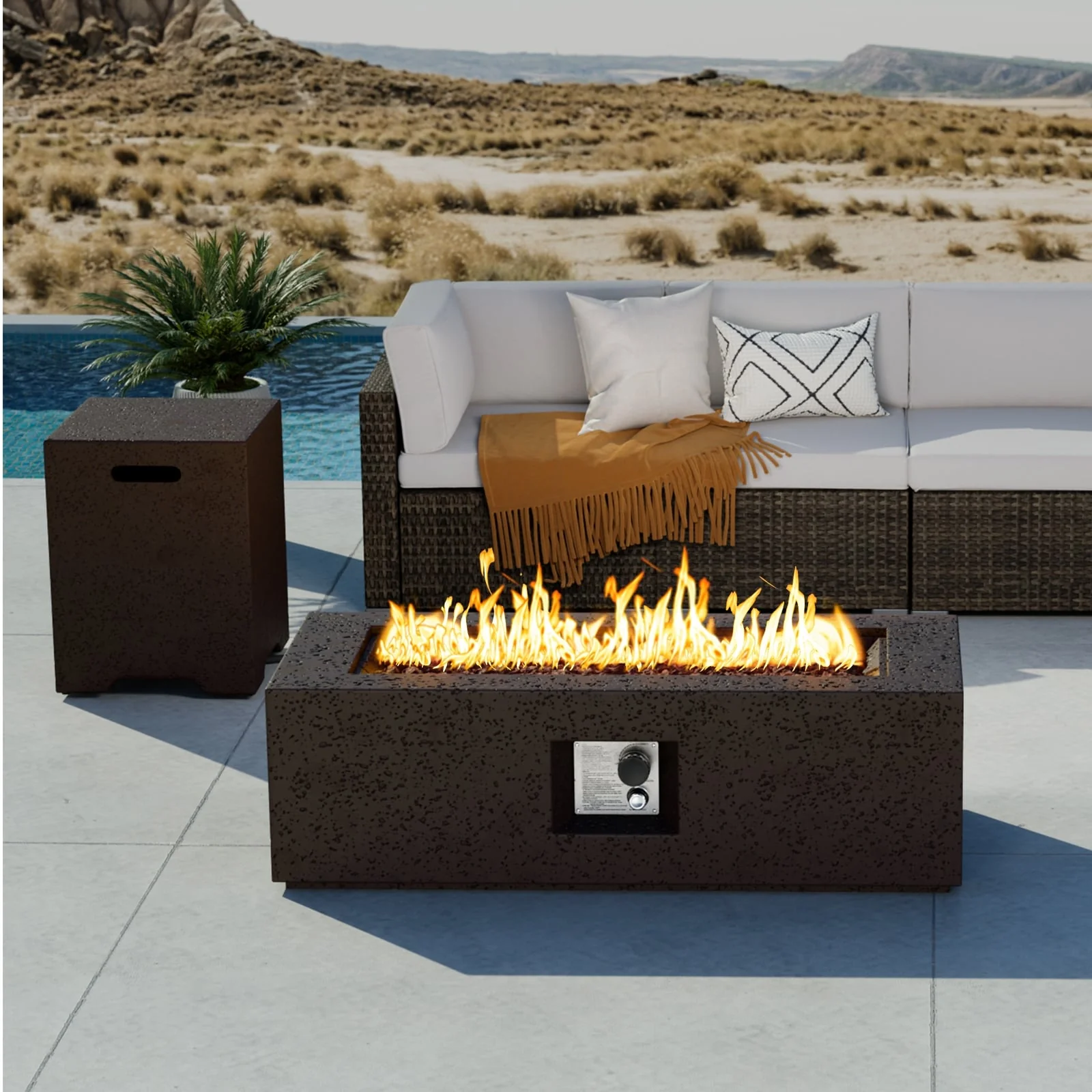 AVAWING 2-Piece 42" Rectangle Concrete Fire Pit Table with Tank Holder