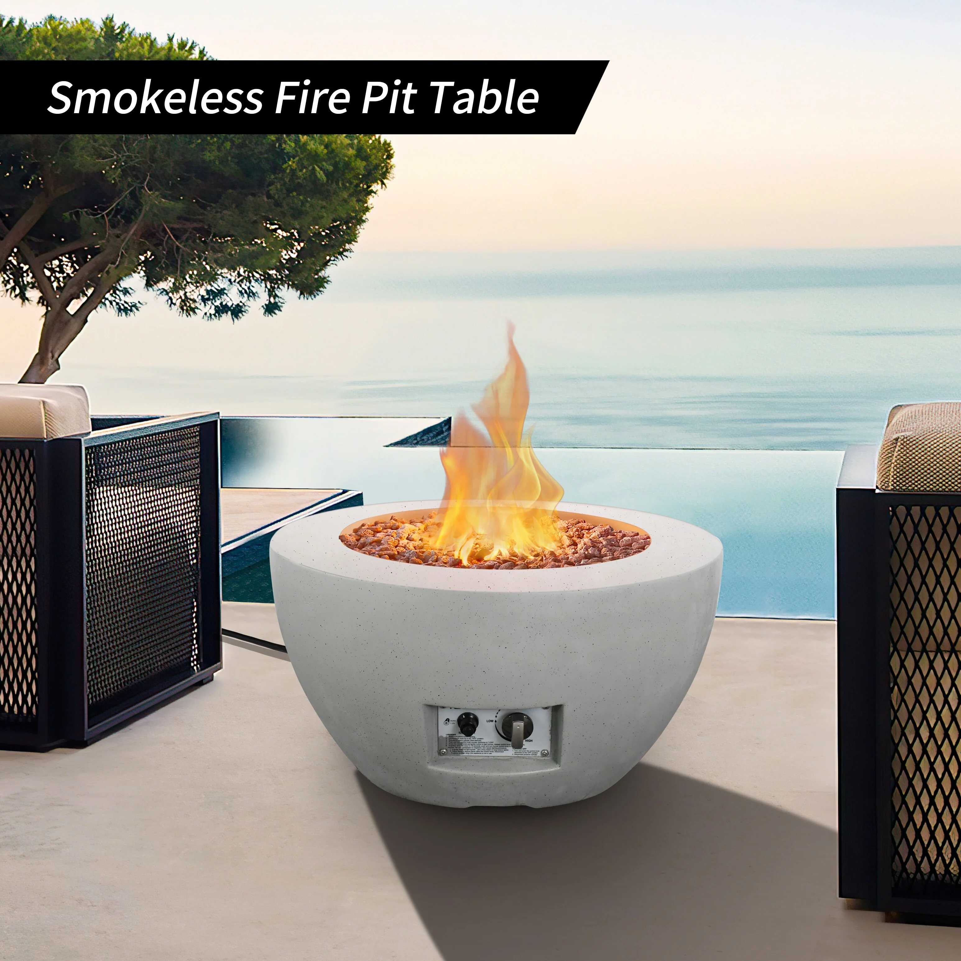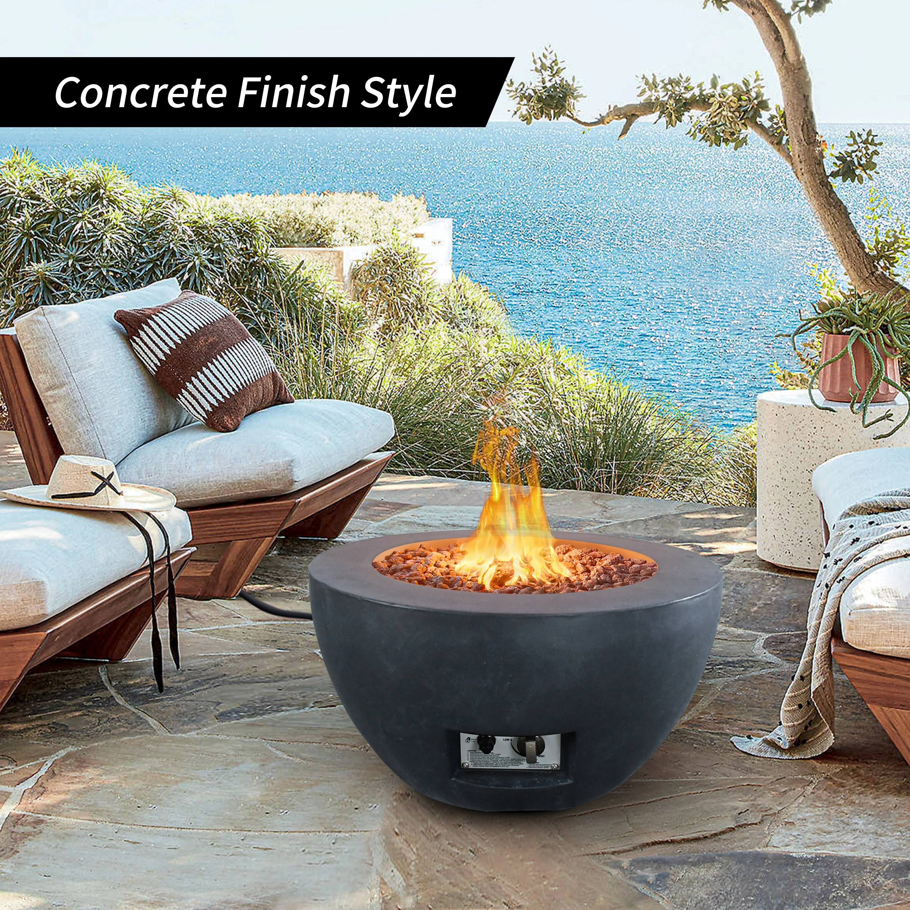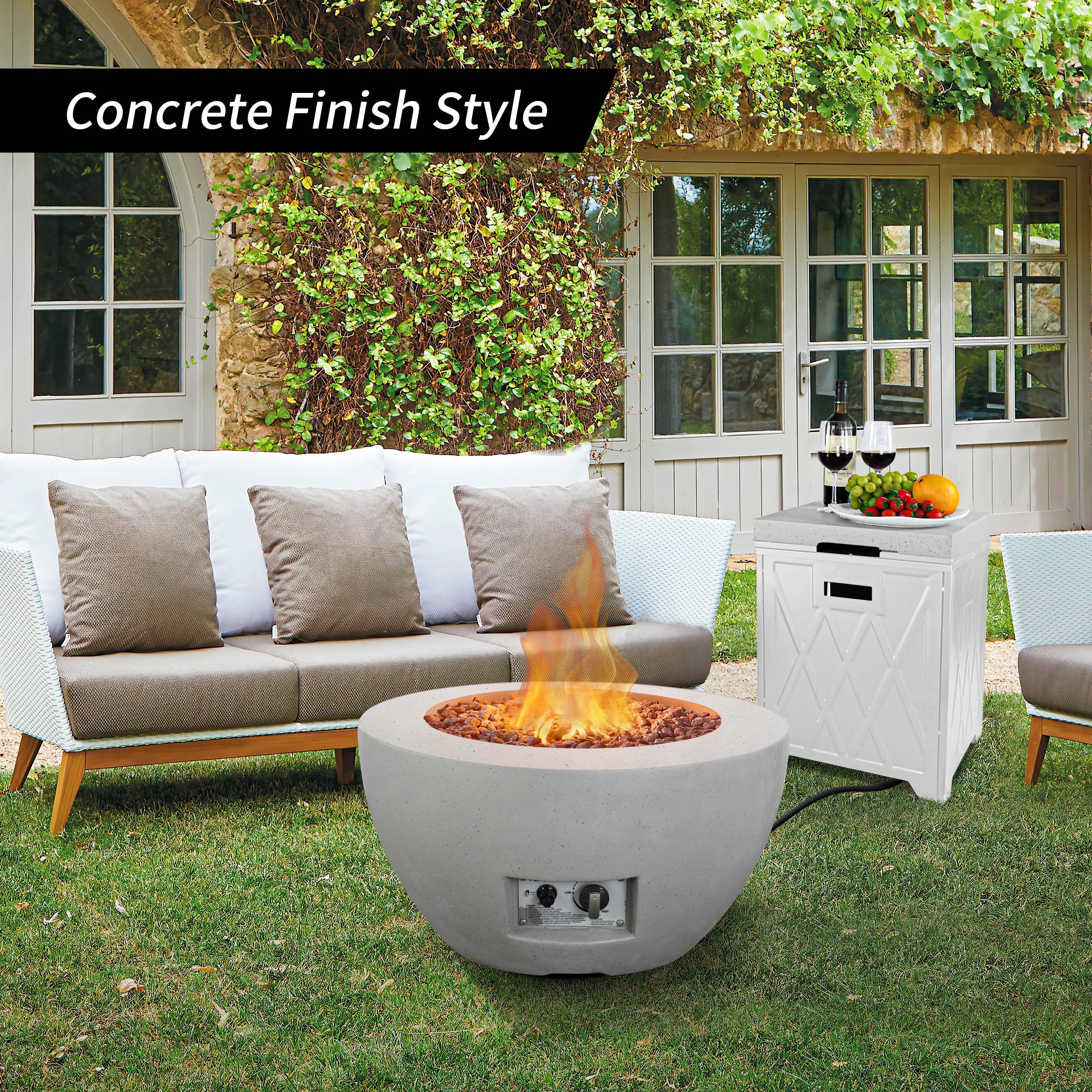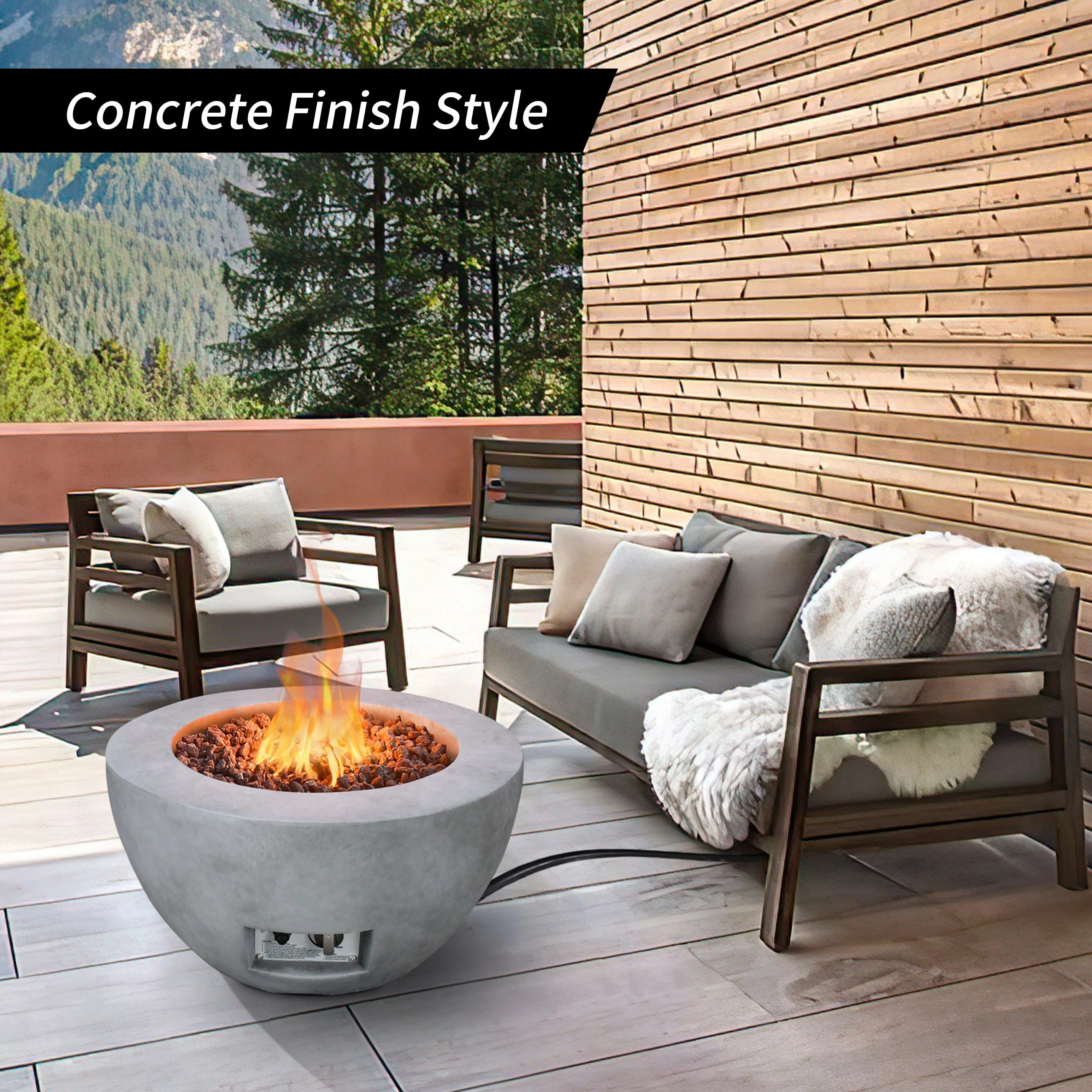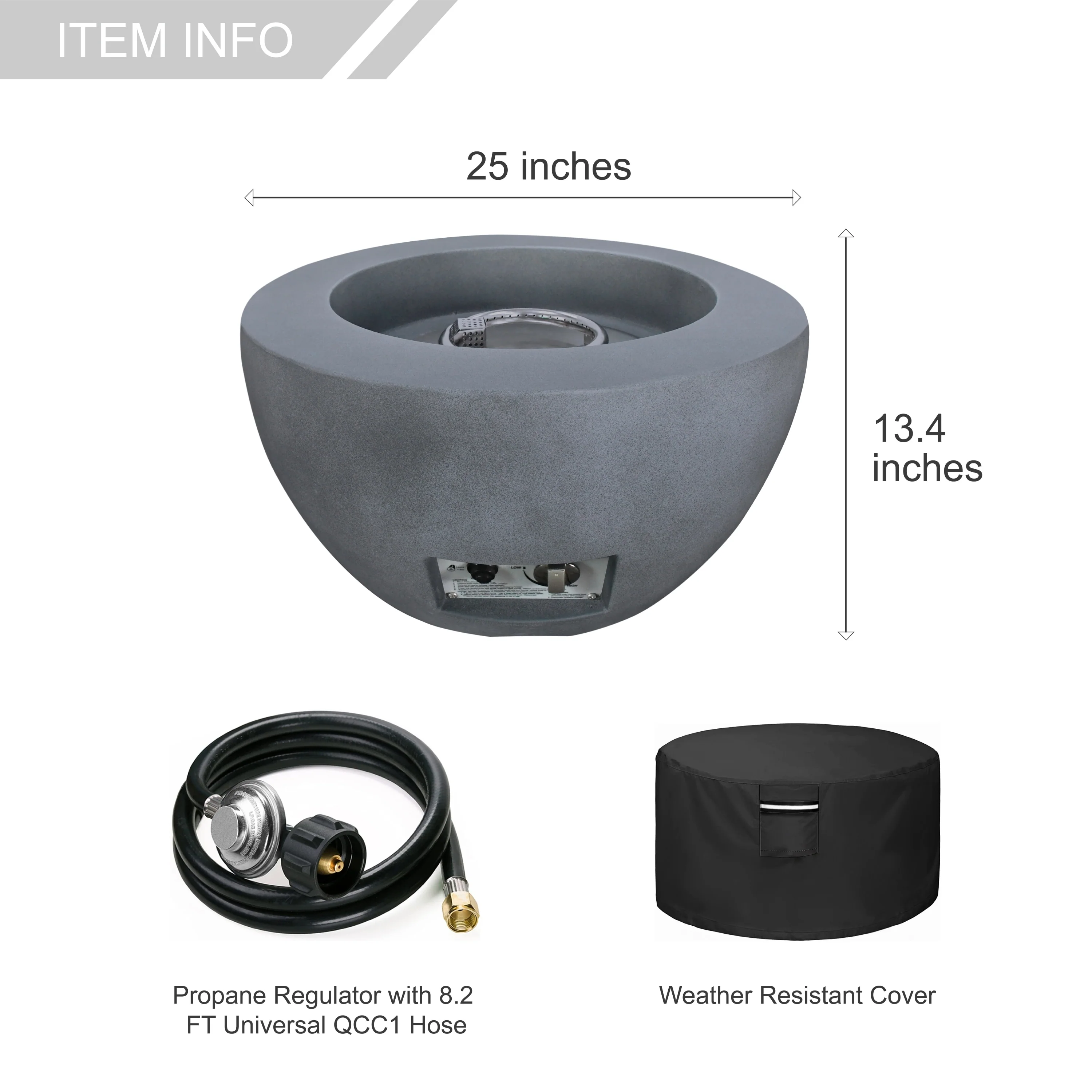 Kante 25-inch Round Concrete & Metal Outdoor Smokeless 50,000 BTU Propane Gas Fire Pit Bowl Table - 25" W x 25" L x 13.4" H