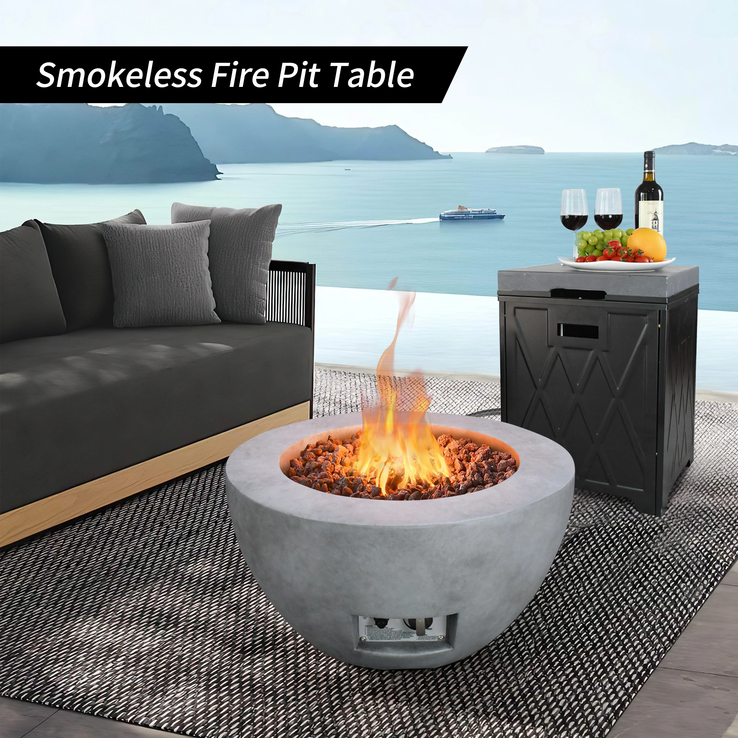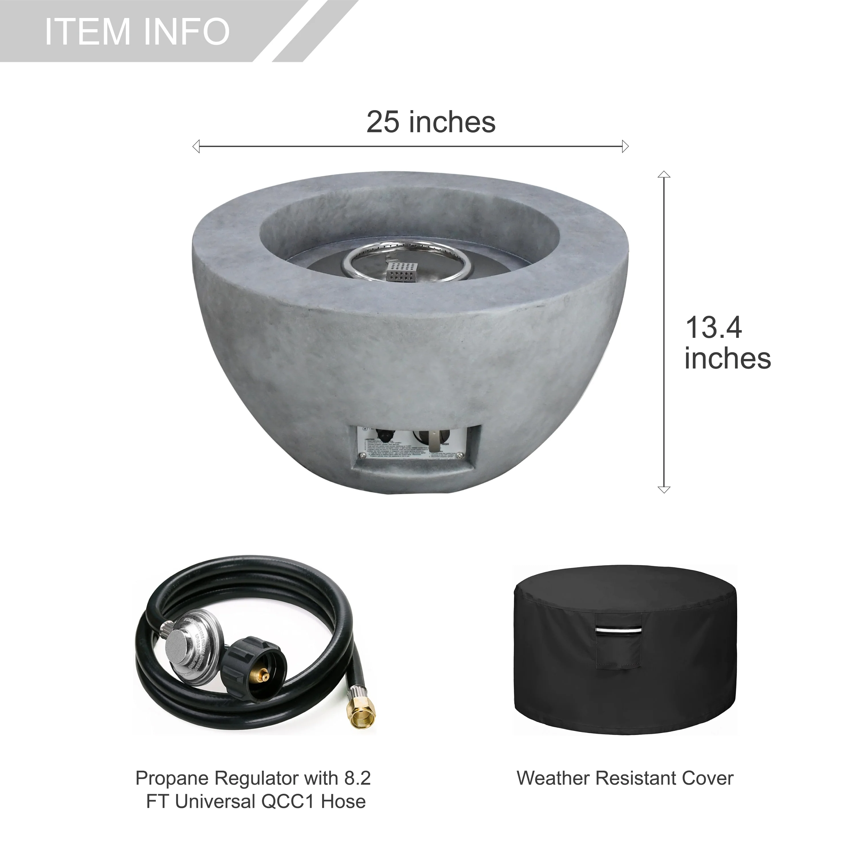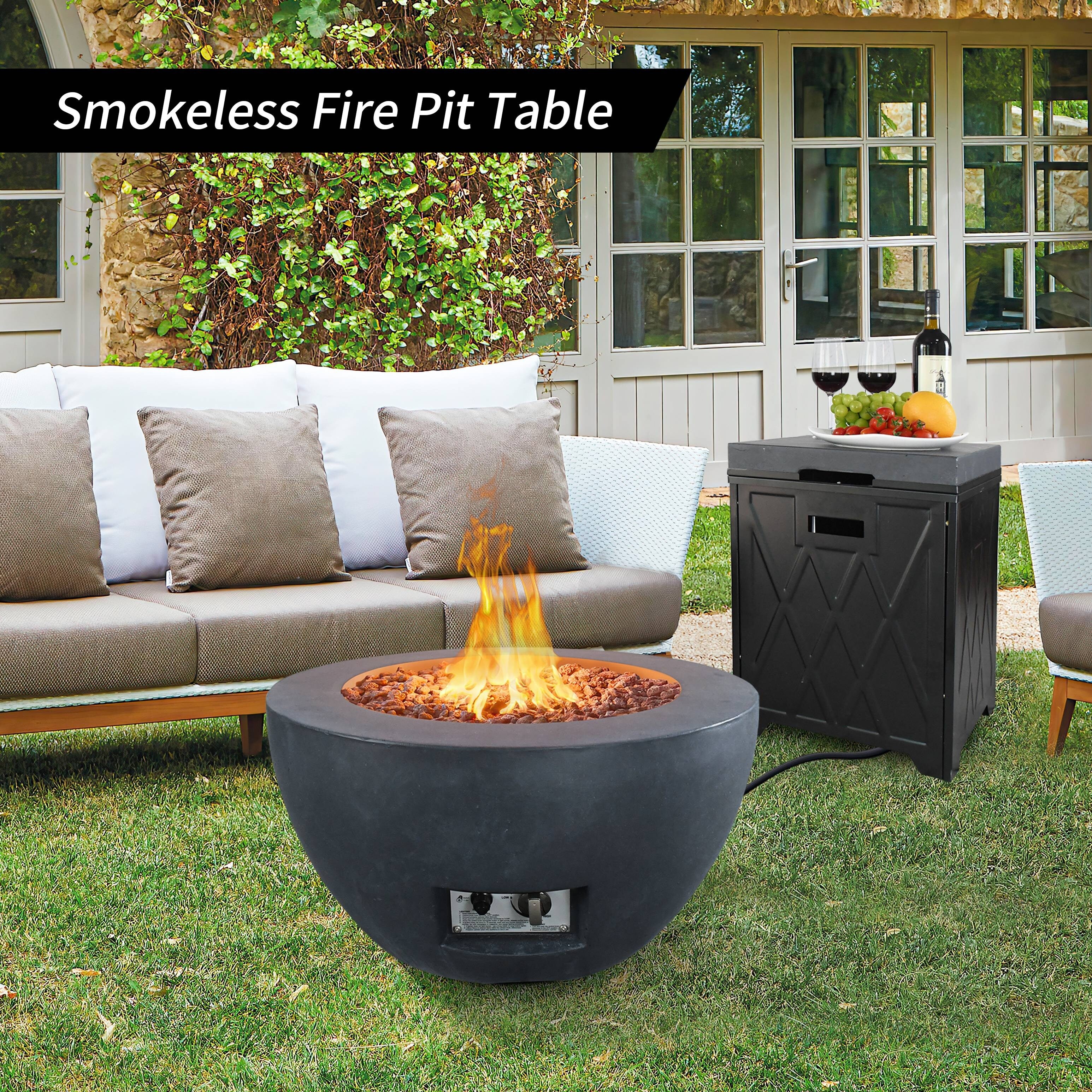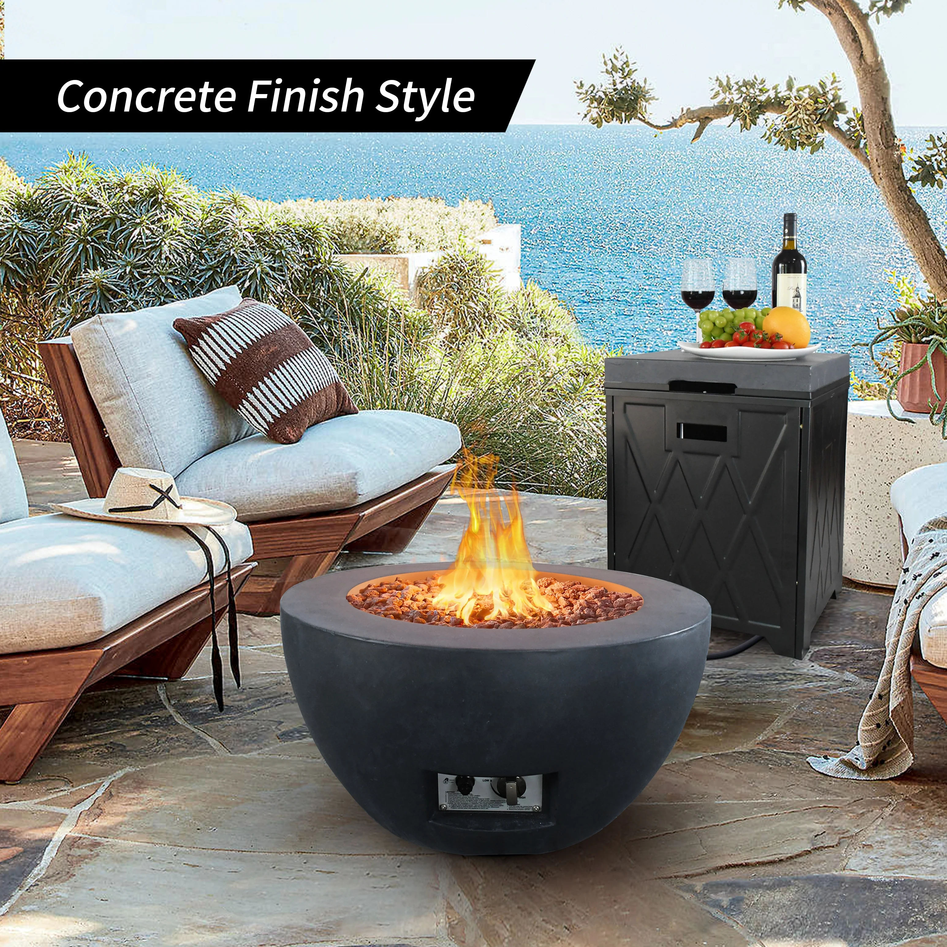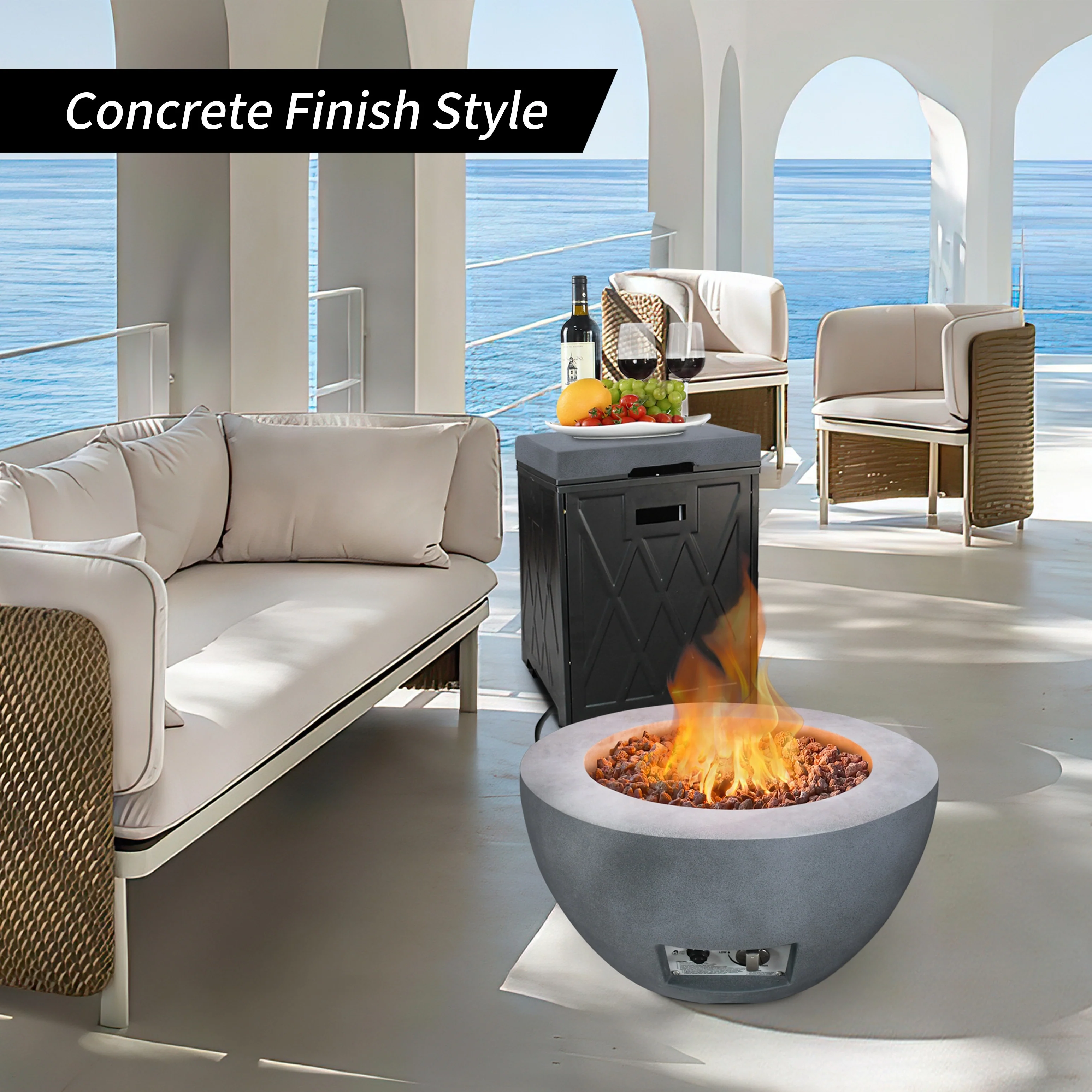 Kante 25-inch Round Concrete & Metal Outdoor Smokeless 50,000 BTU Propane Gas Fire Pit Bowl Table - 25" W x 25" L x 13.4" H