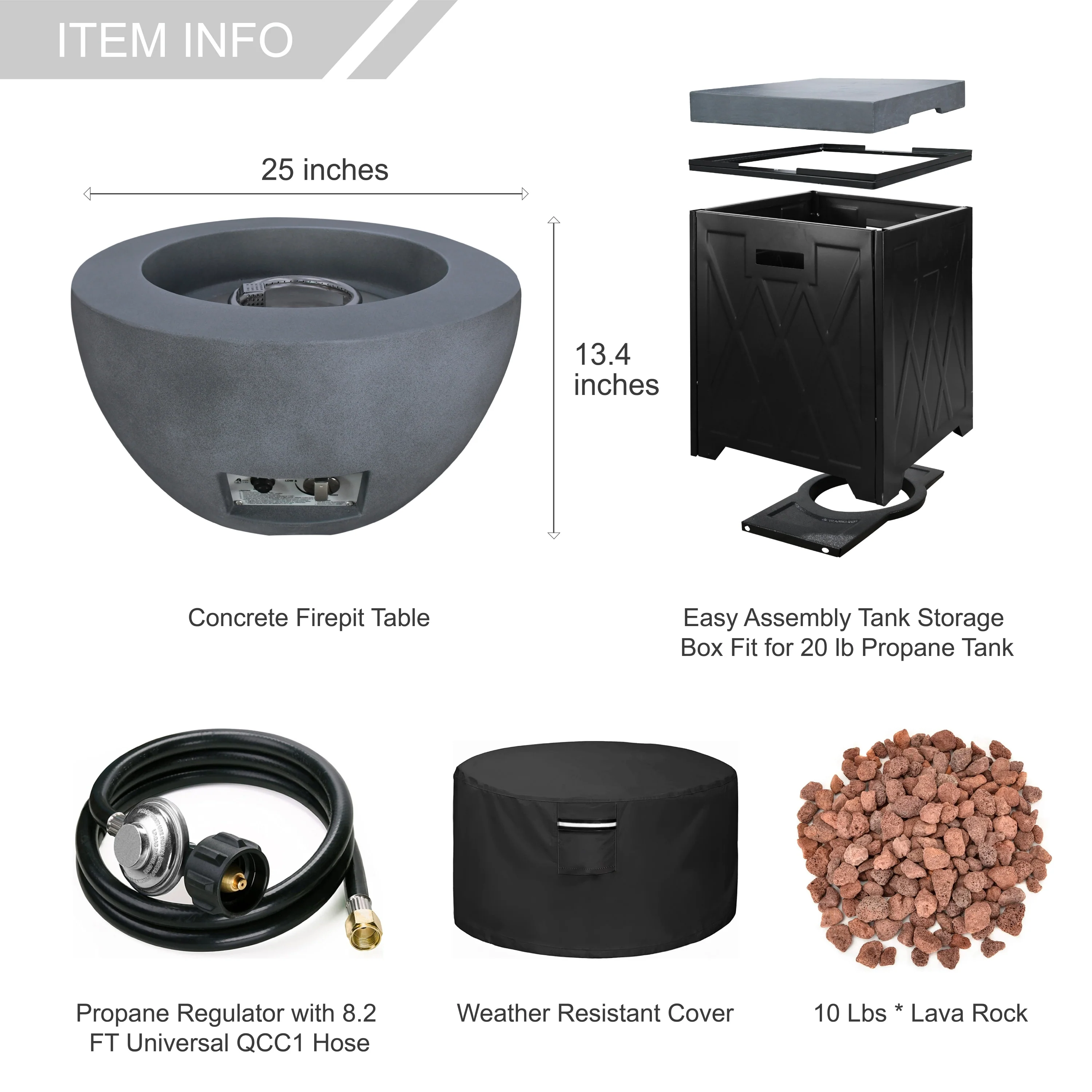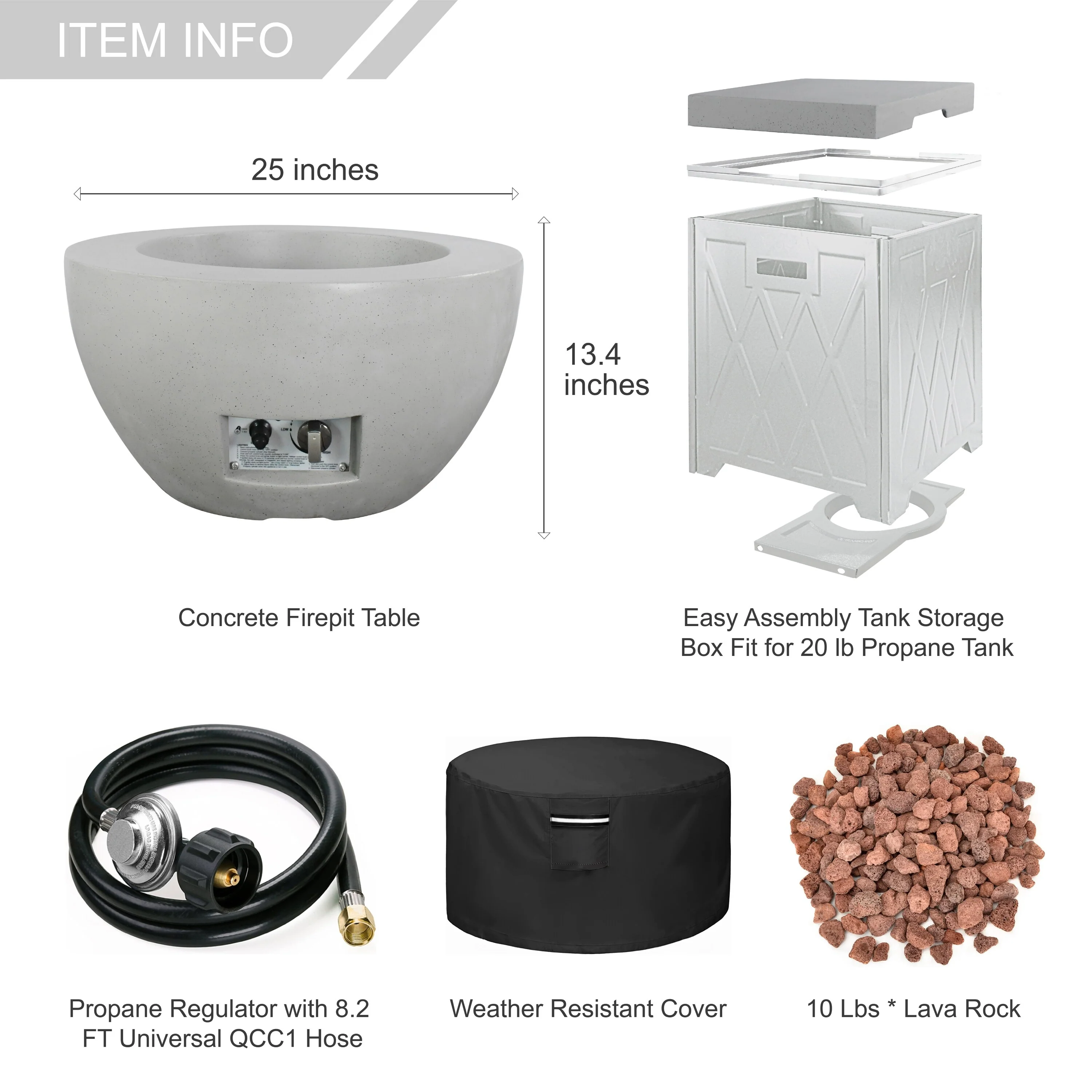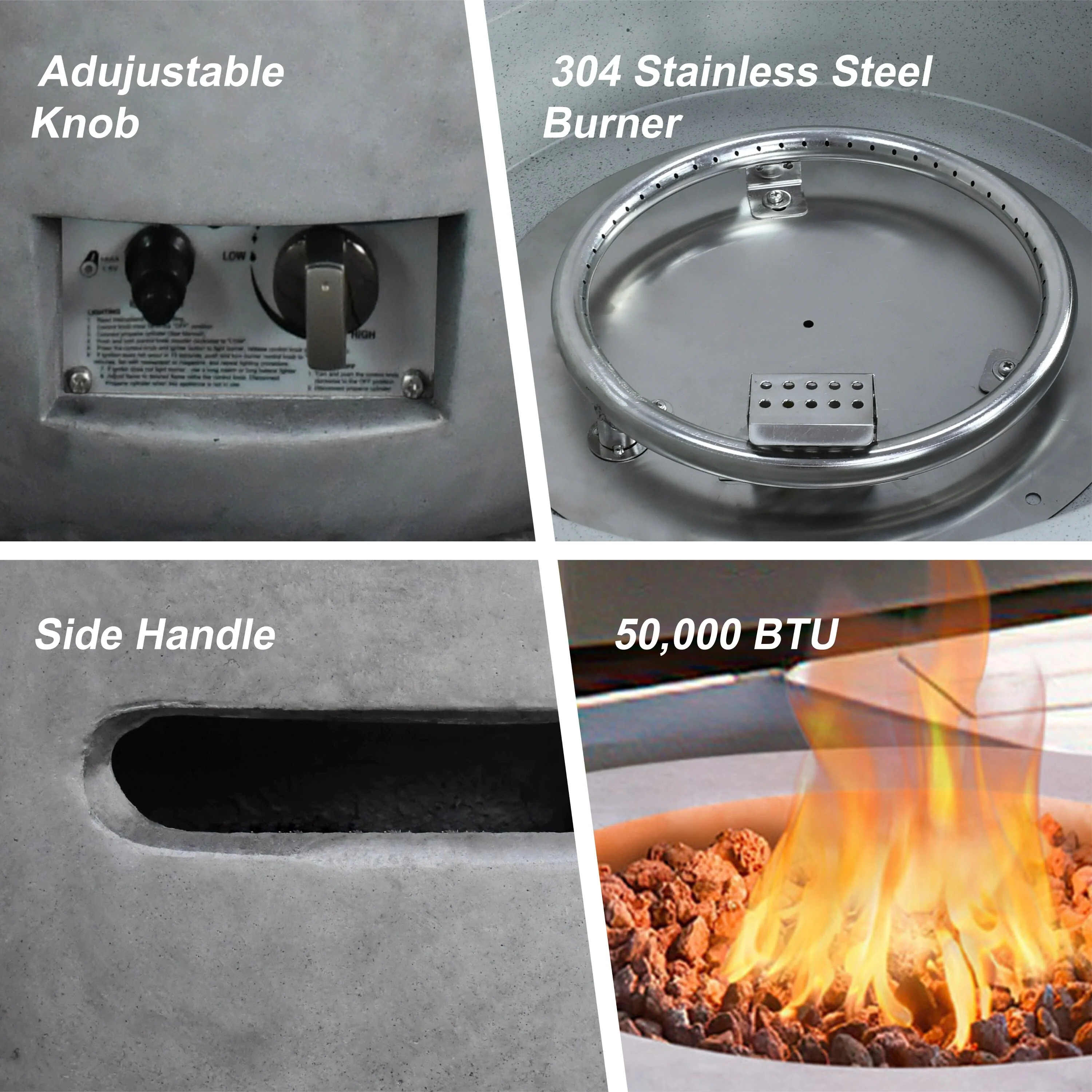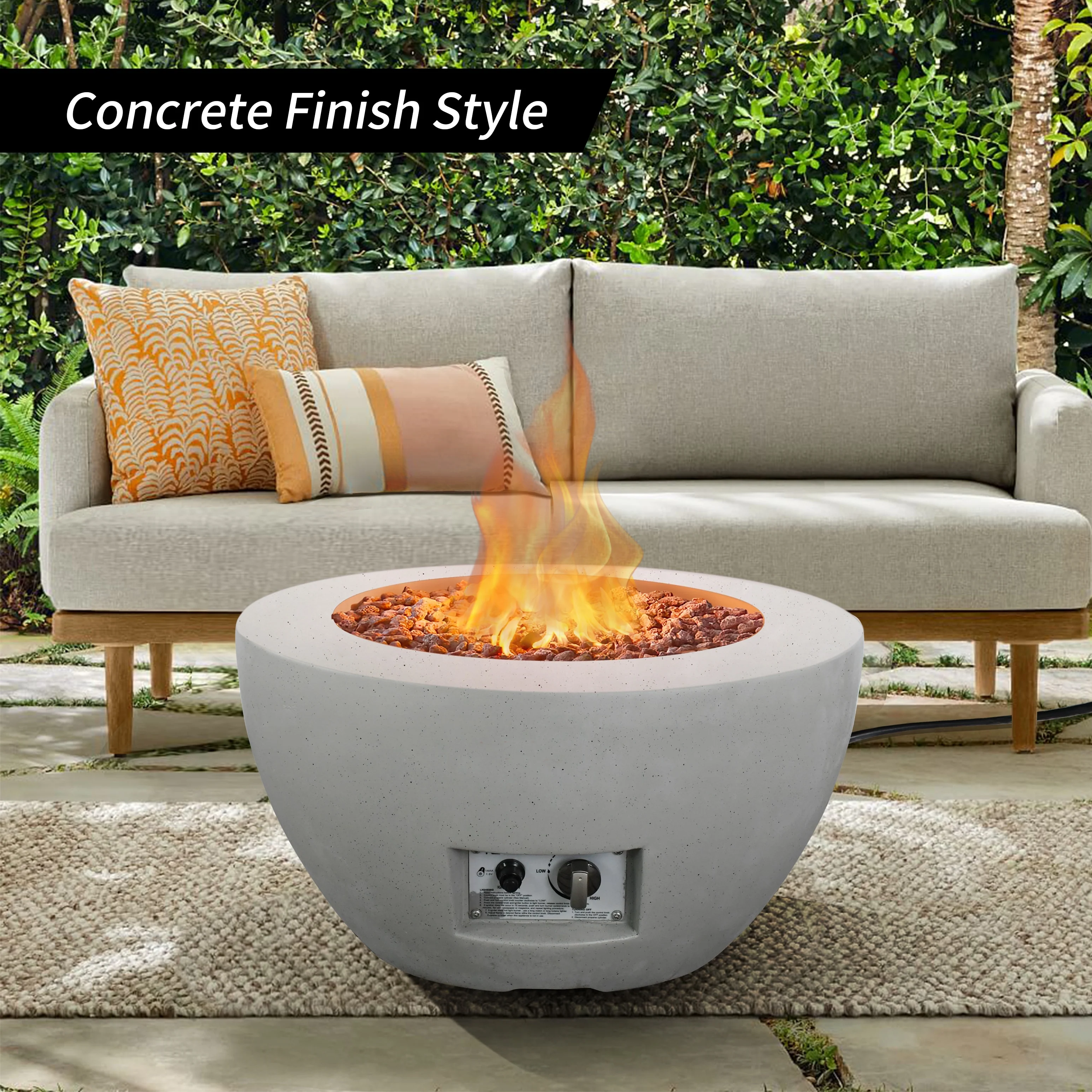 Kante 25-inch Round Concrete & Metal Outdoor Smokeless 50,000 BTU Propane Gas Fire Pit Bowl Table - 25" W x 25" L x 13.4" H