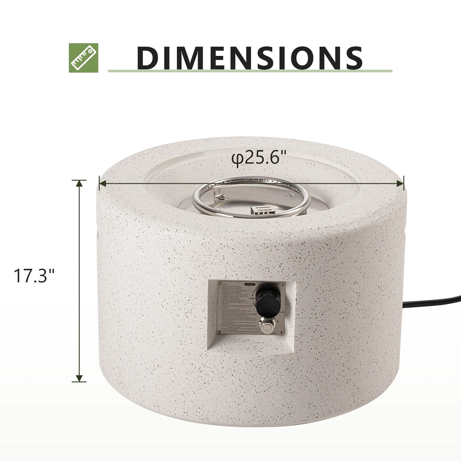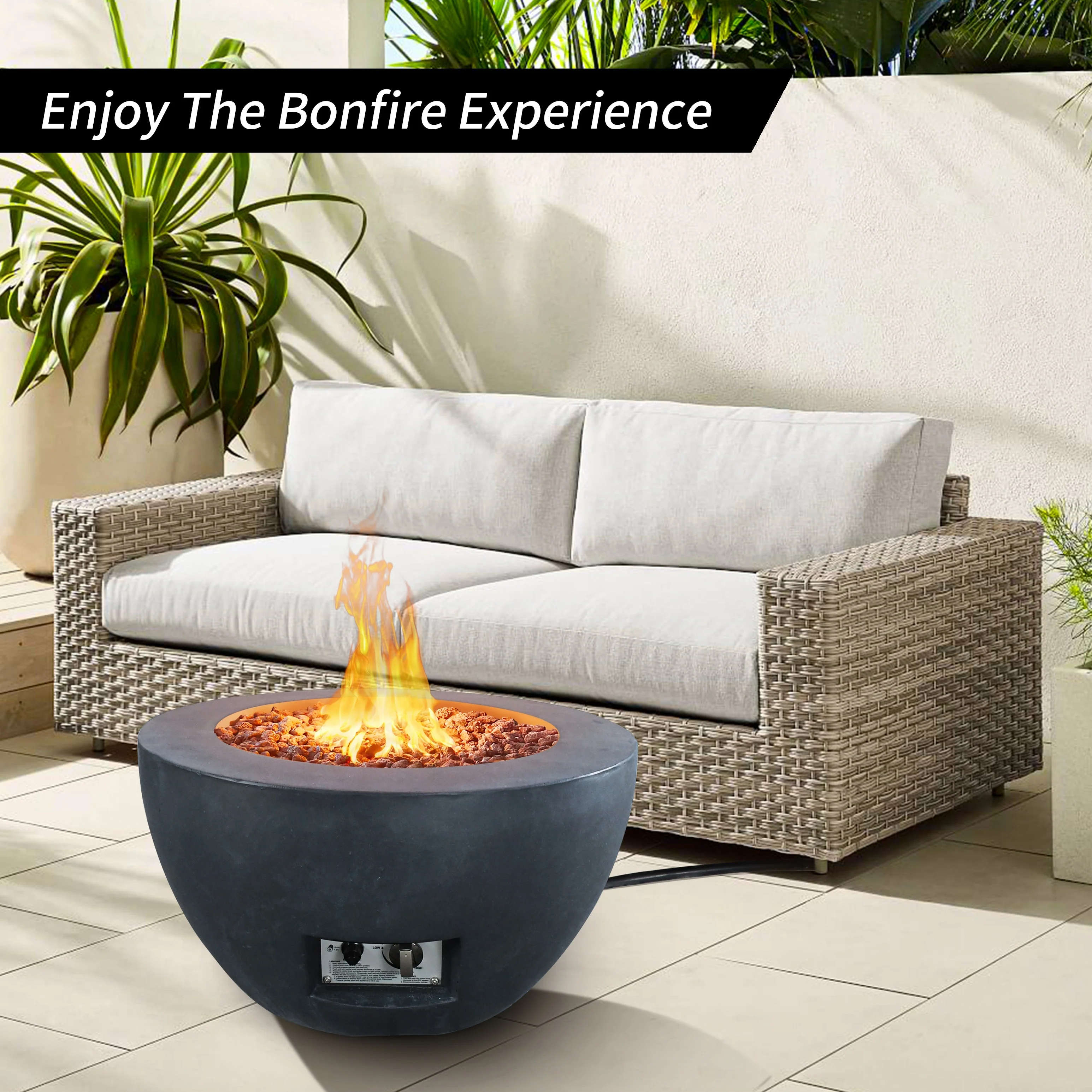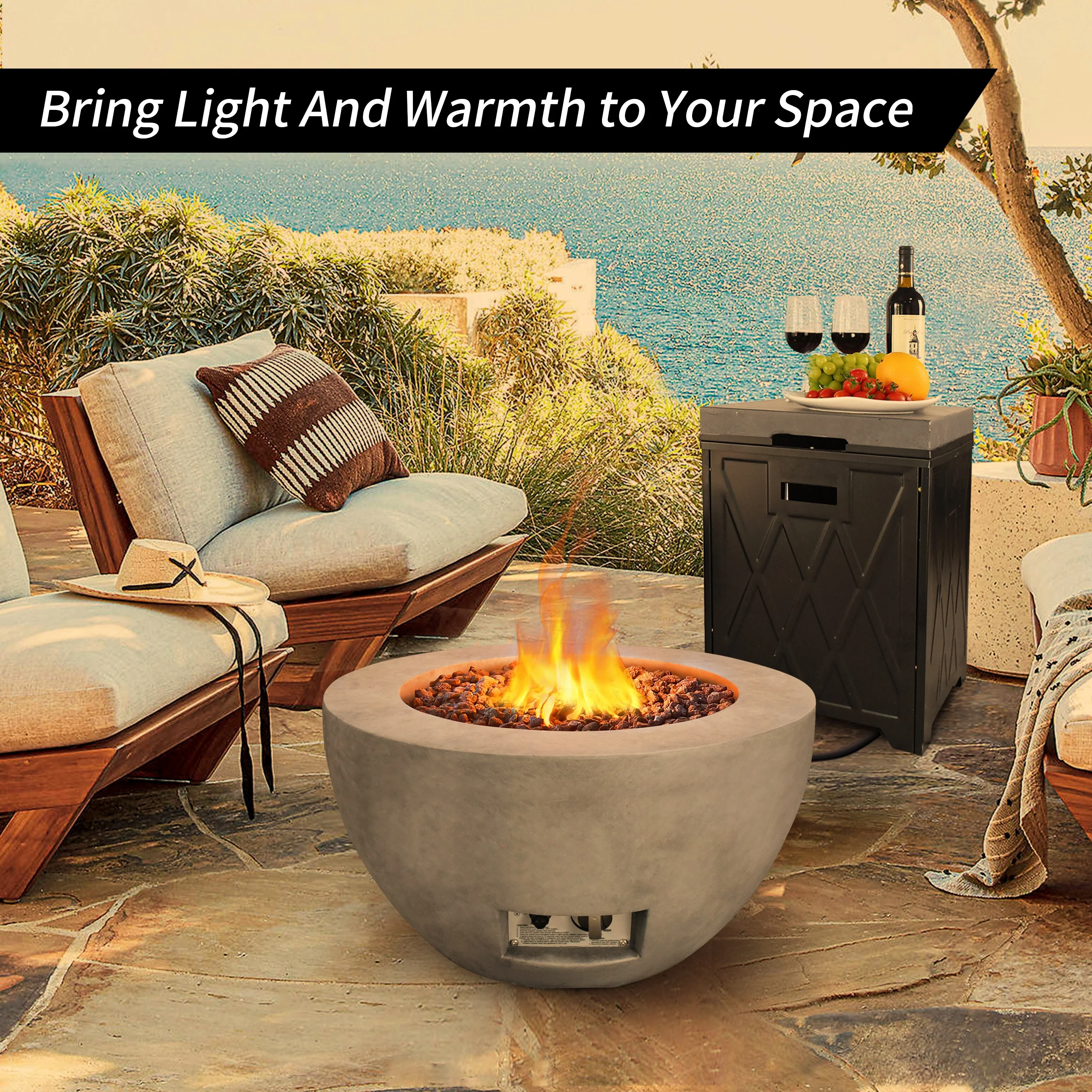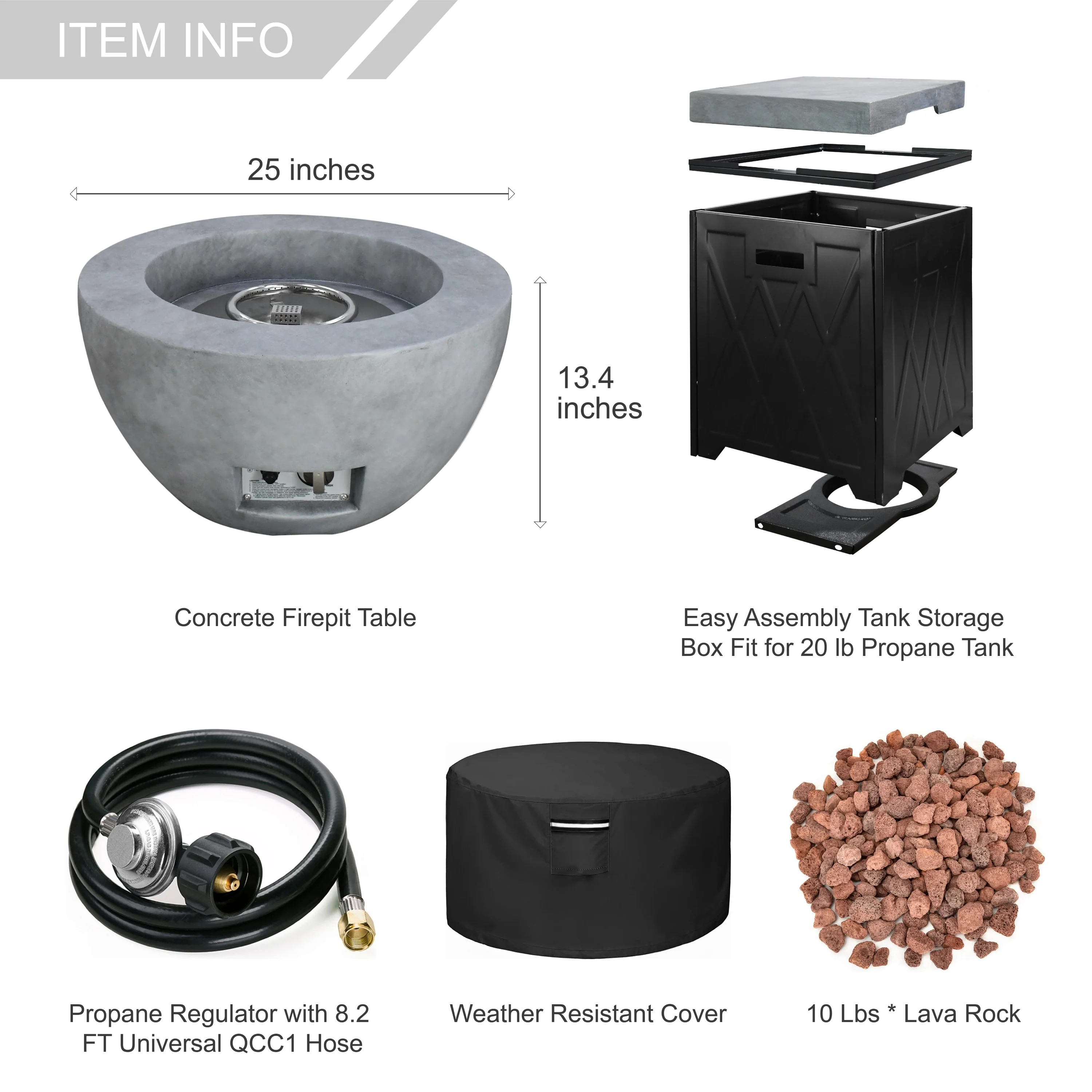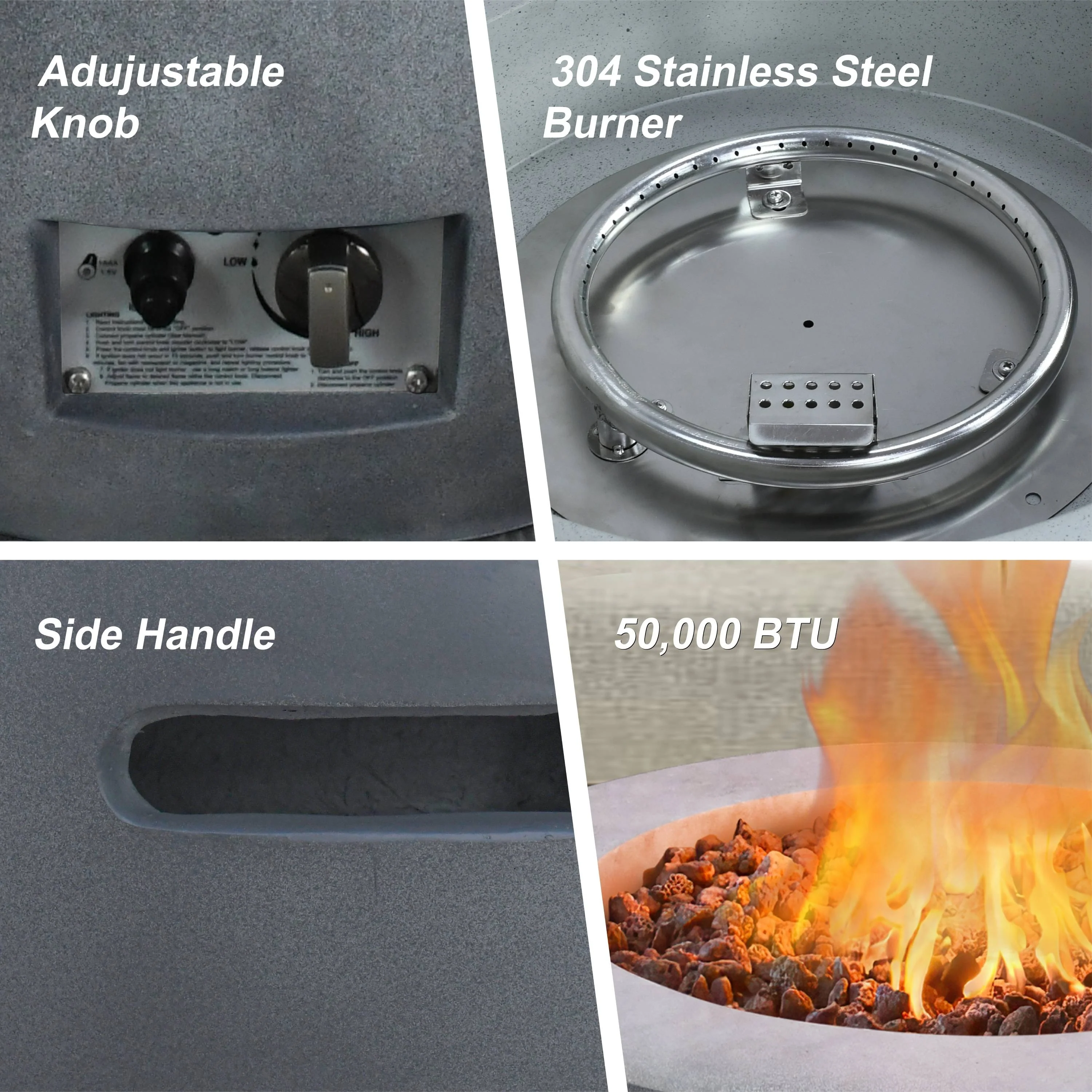 Kante 25-inch Round Concrete & Metal Outdoor Smokeless 50,000 BTU Propane Gas Fire Pit Bowl Table - 25" W x 25" L x 13.4" H