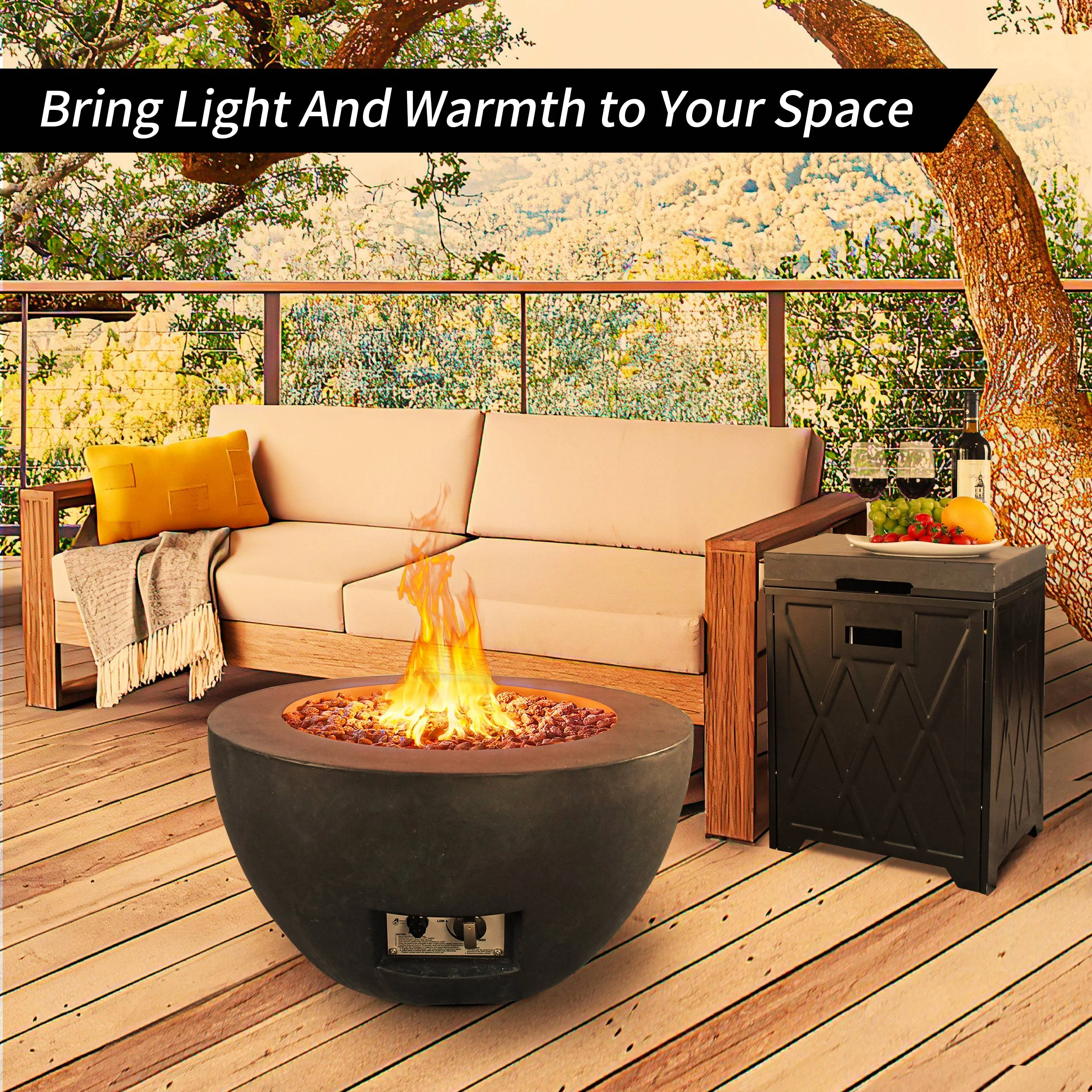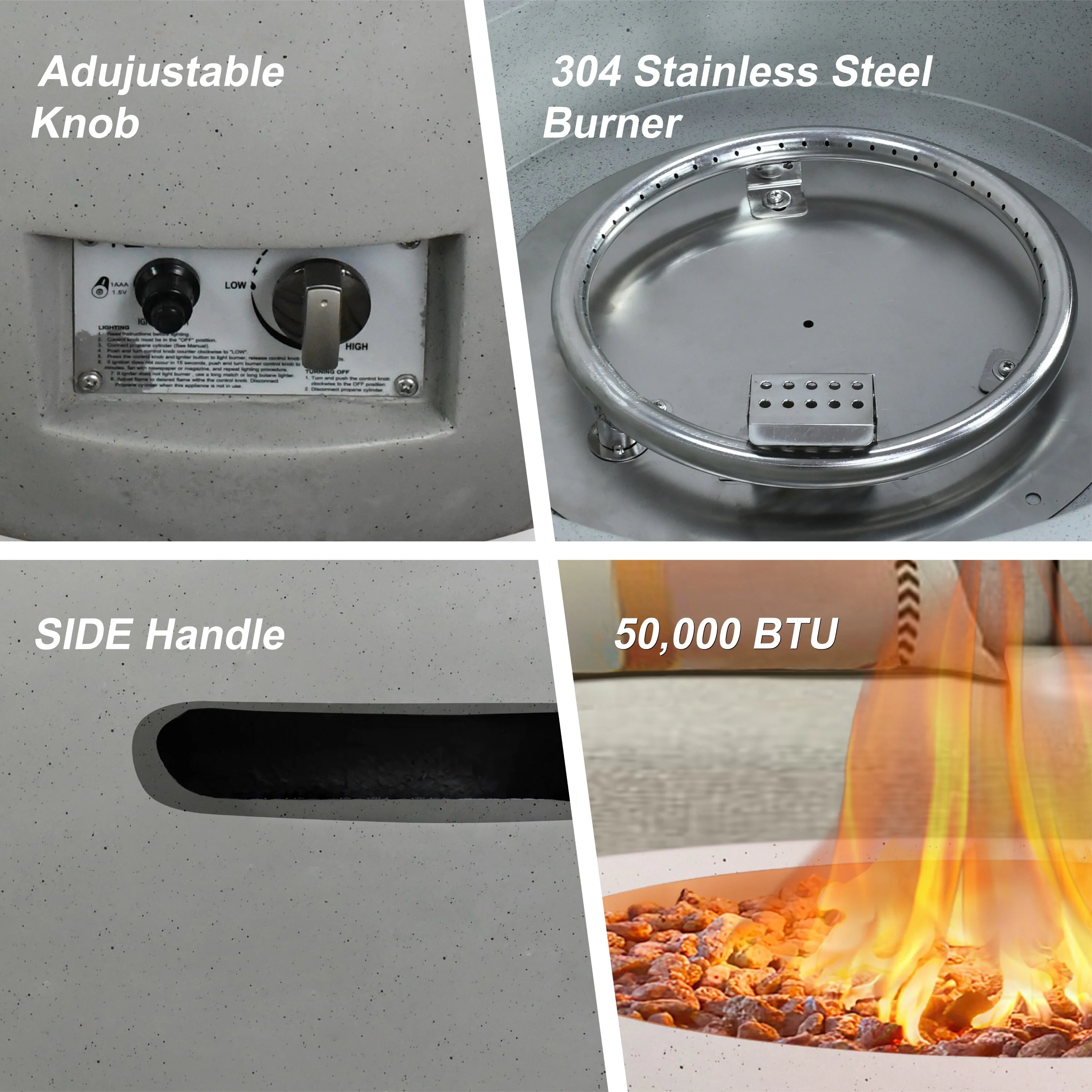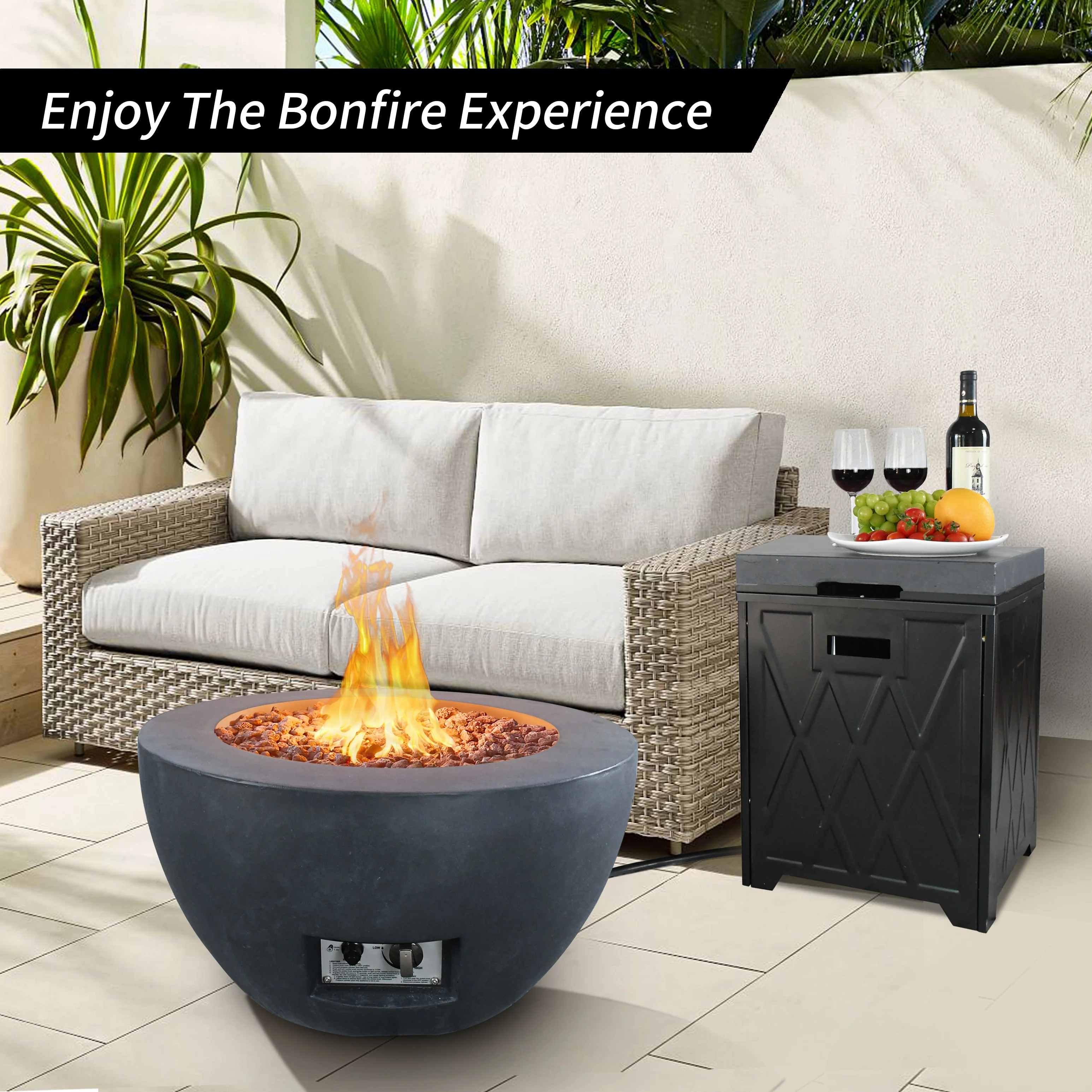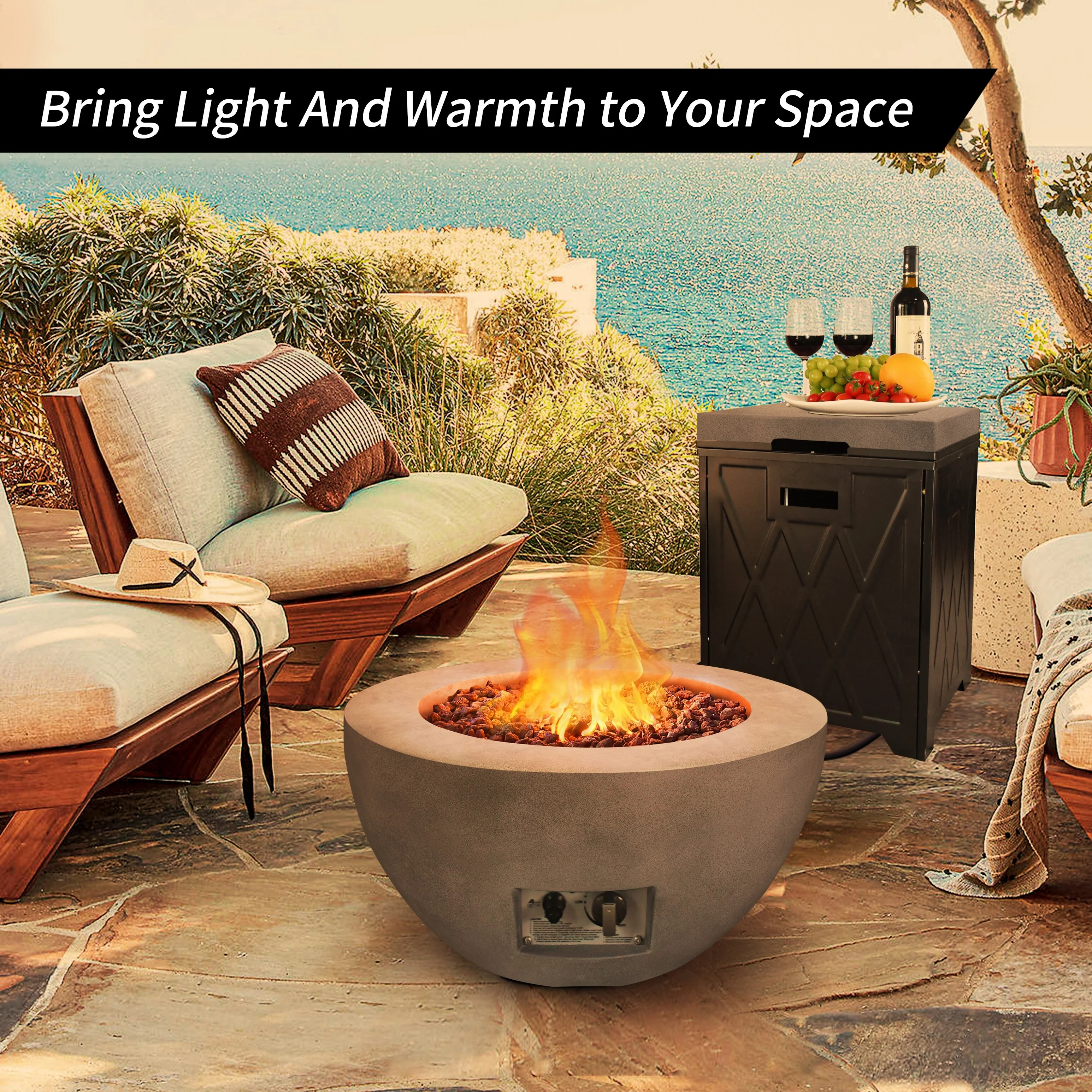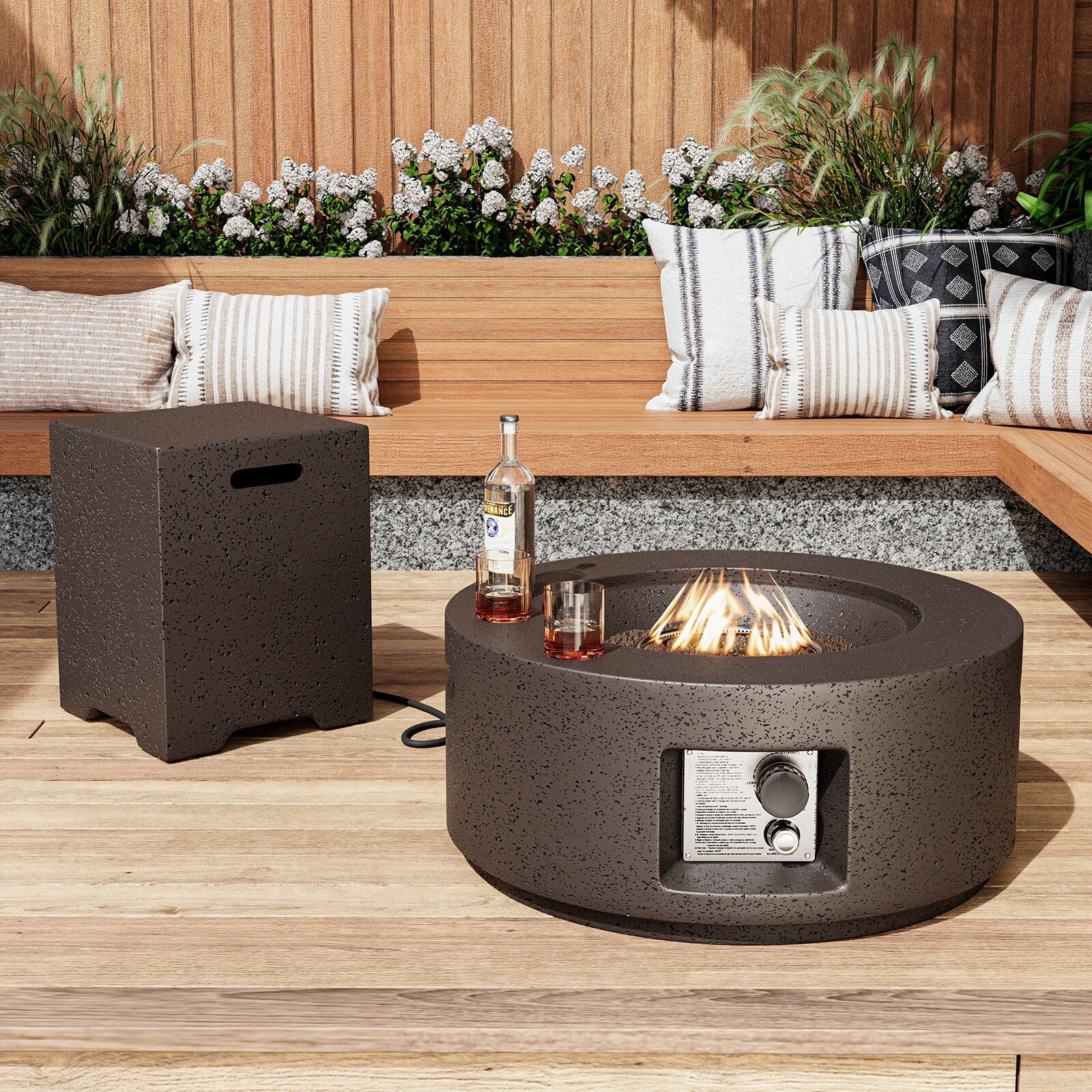 Kante 25-inch Round Concrete & Metal Outdoor Smokeless 50,000 BTU Propane Gas Fire Pit Bowl Table - 25" W x 25" L x 13.4" H