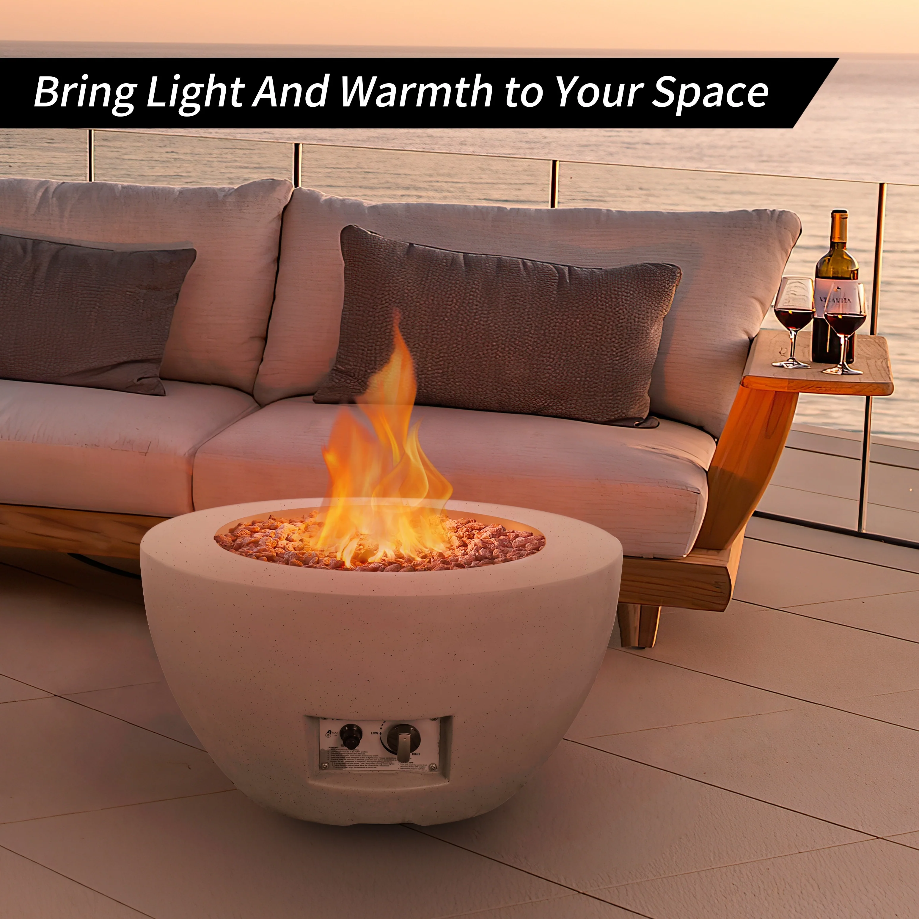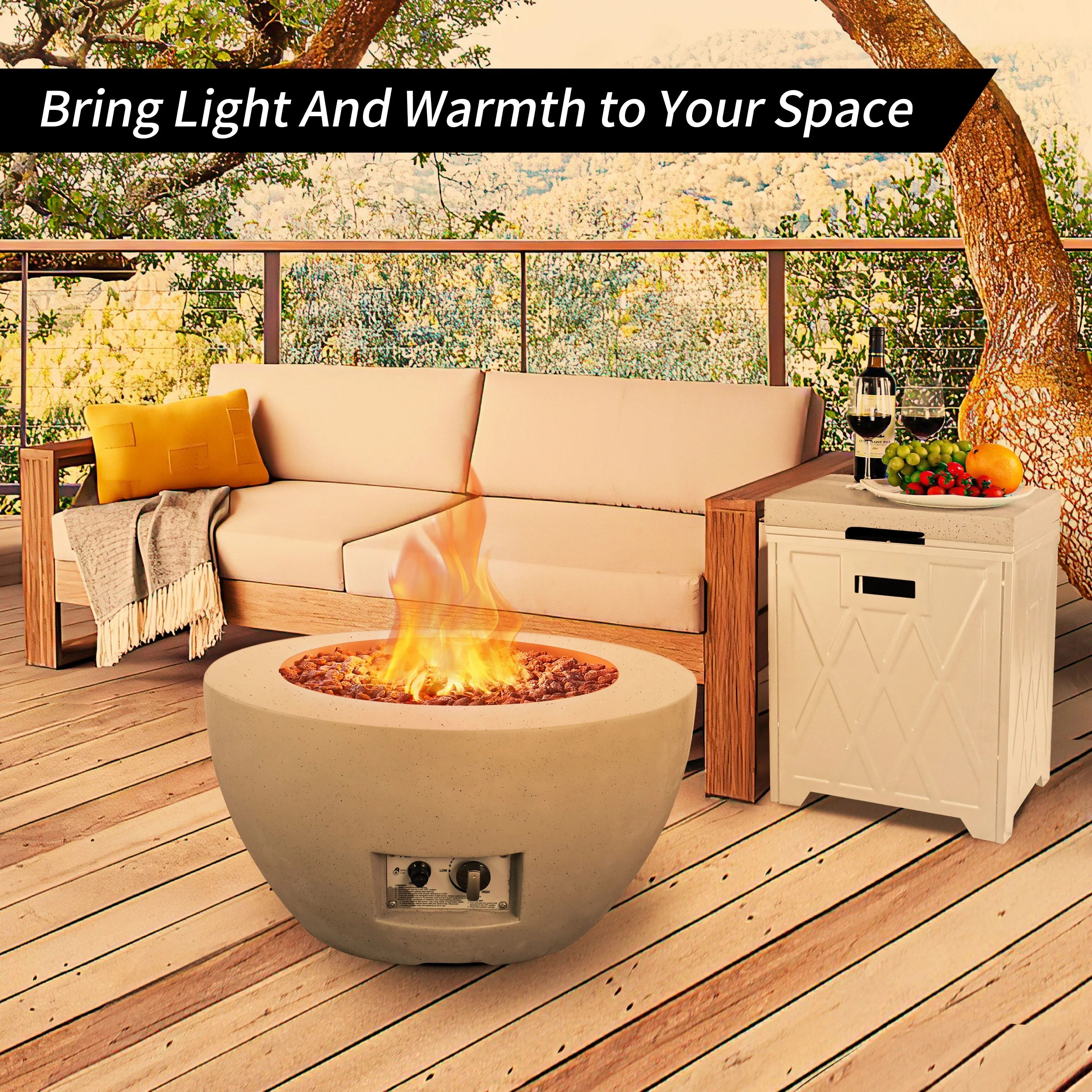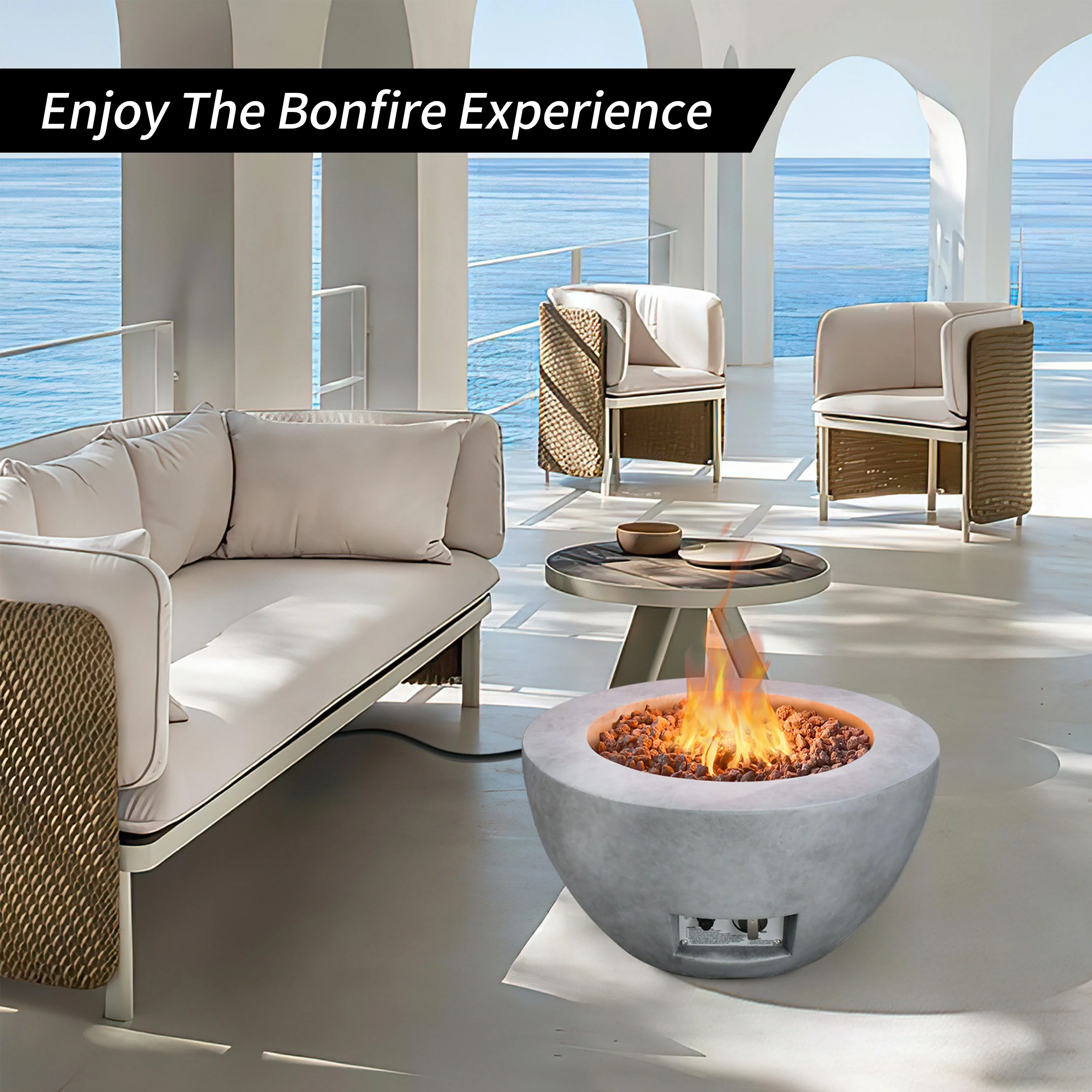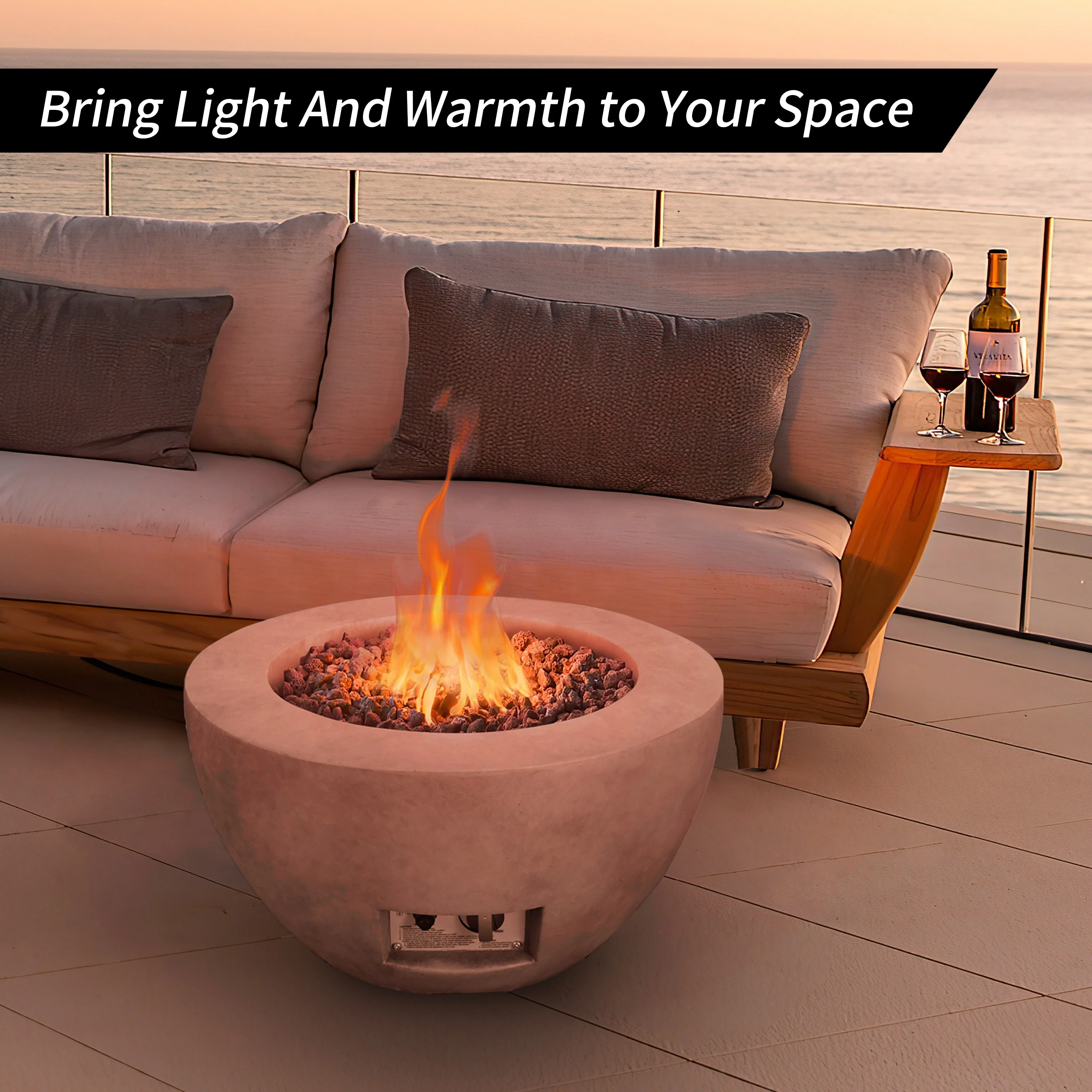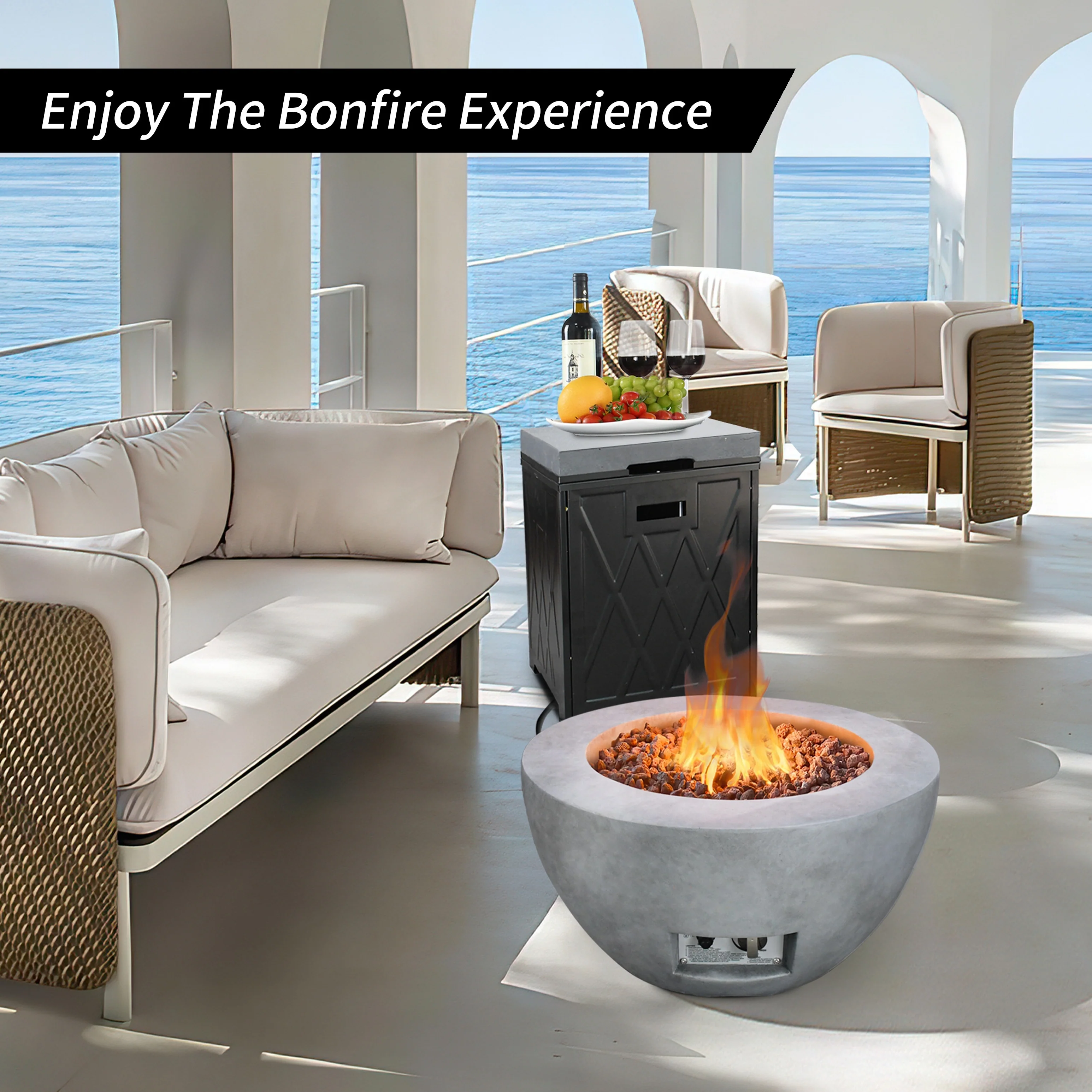 Kante 25-inch Round Concrete & Metal Outdoor Smokeless 50,000 BTU Propane Gas Fire Pit Bowl Table - 25" W x 25" L x 13.4" H