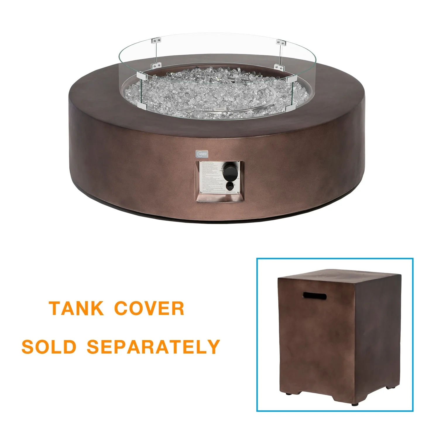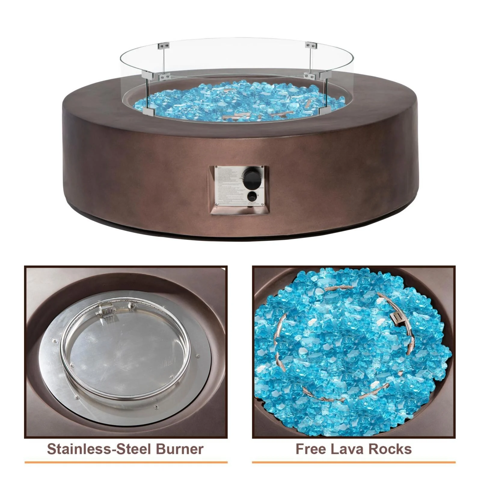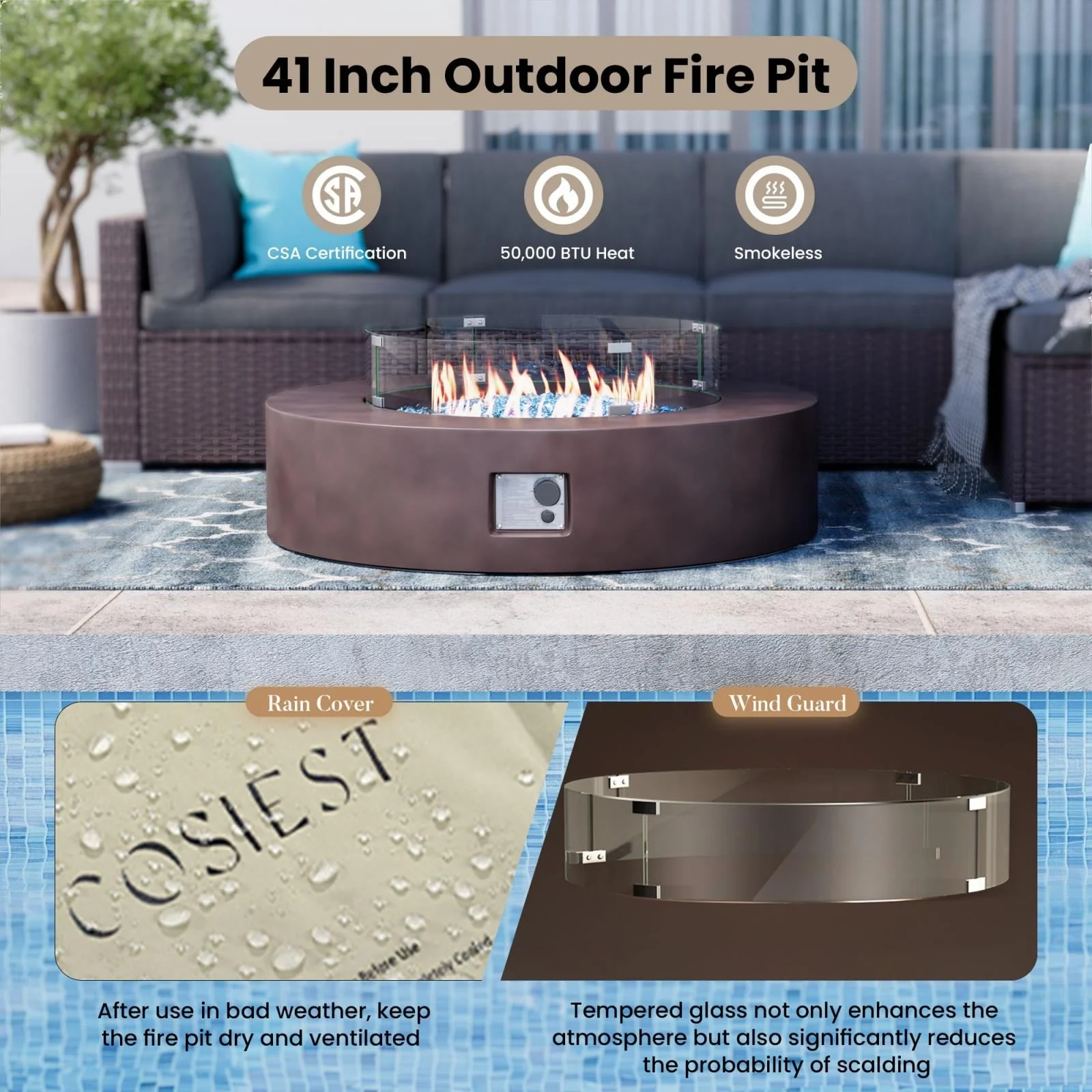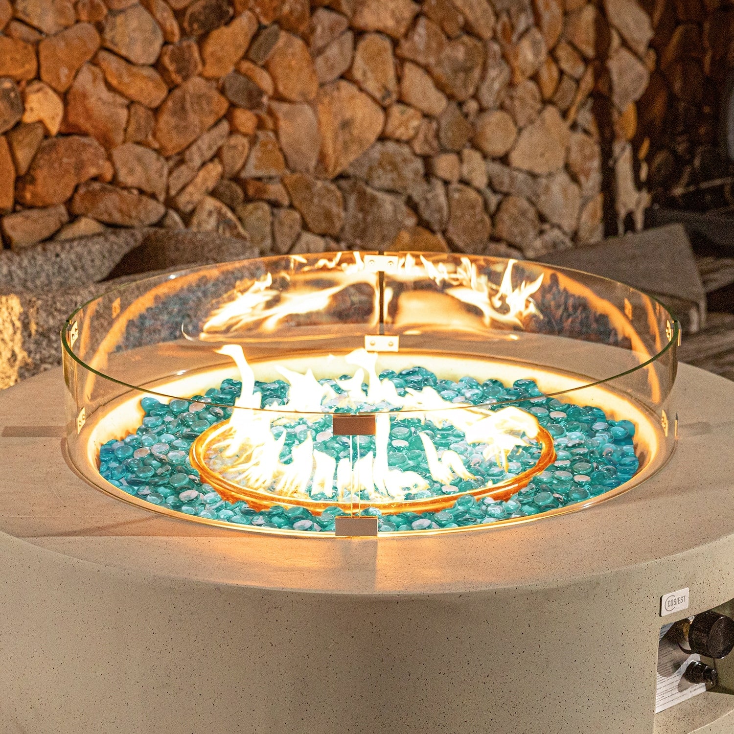 COSIEST Outdoor Round Propane Fire Pit w Wind Guard and Fire Glass