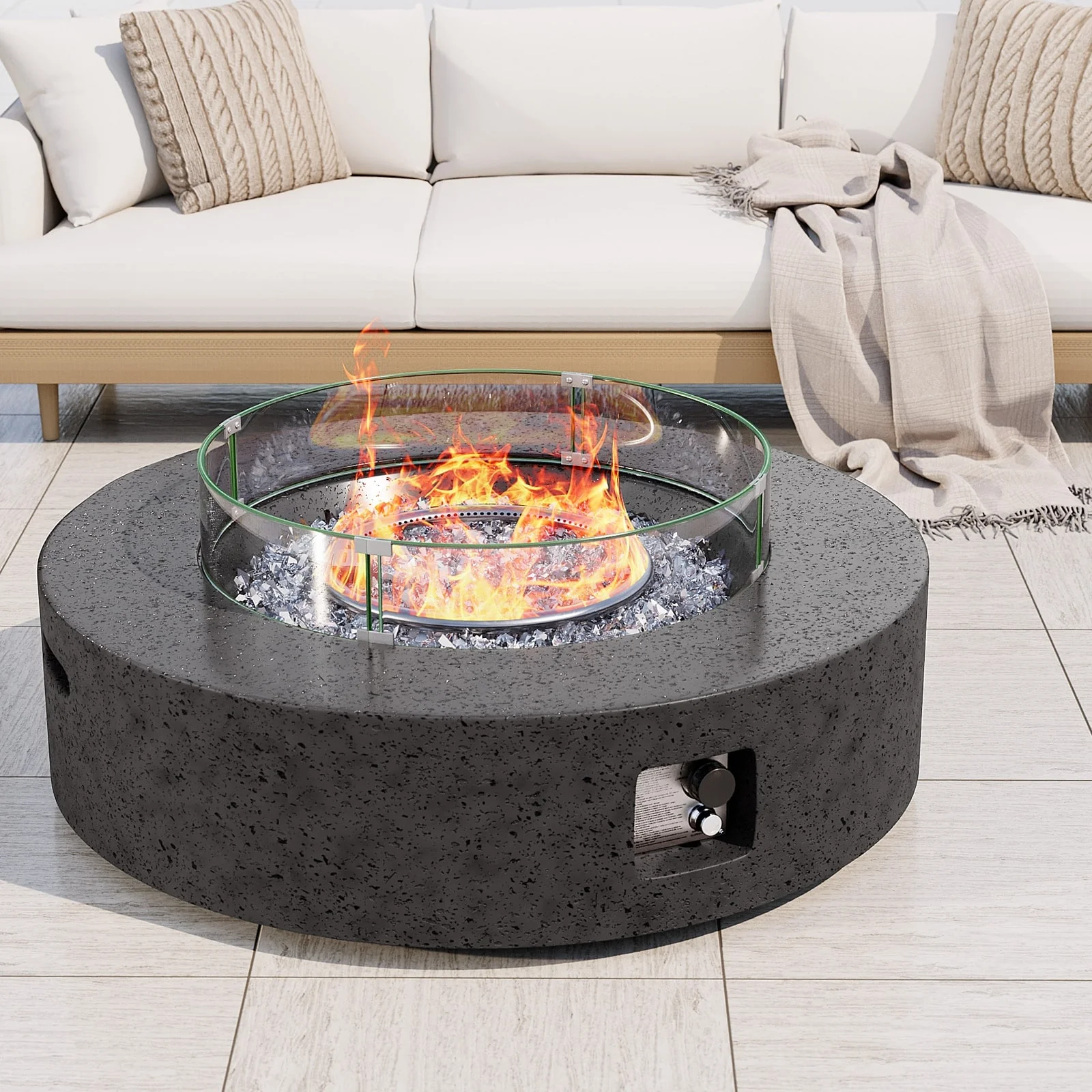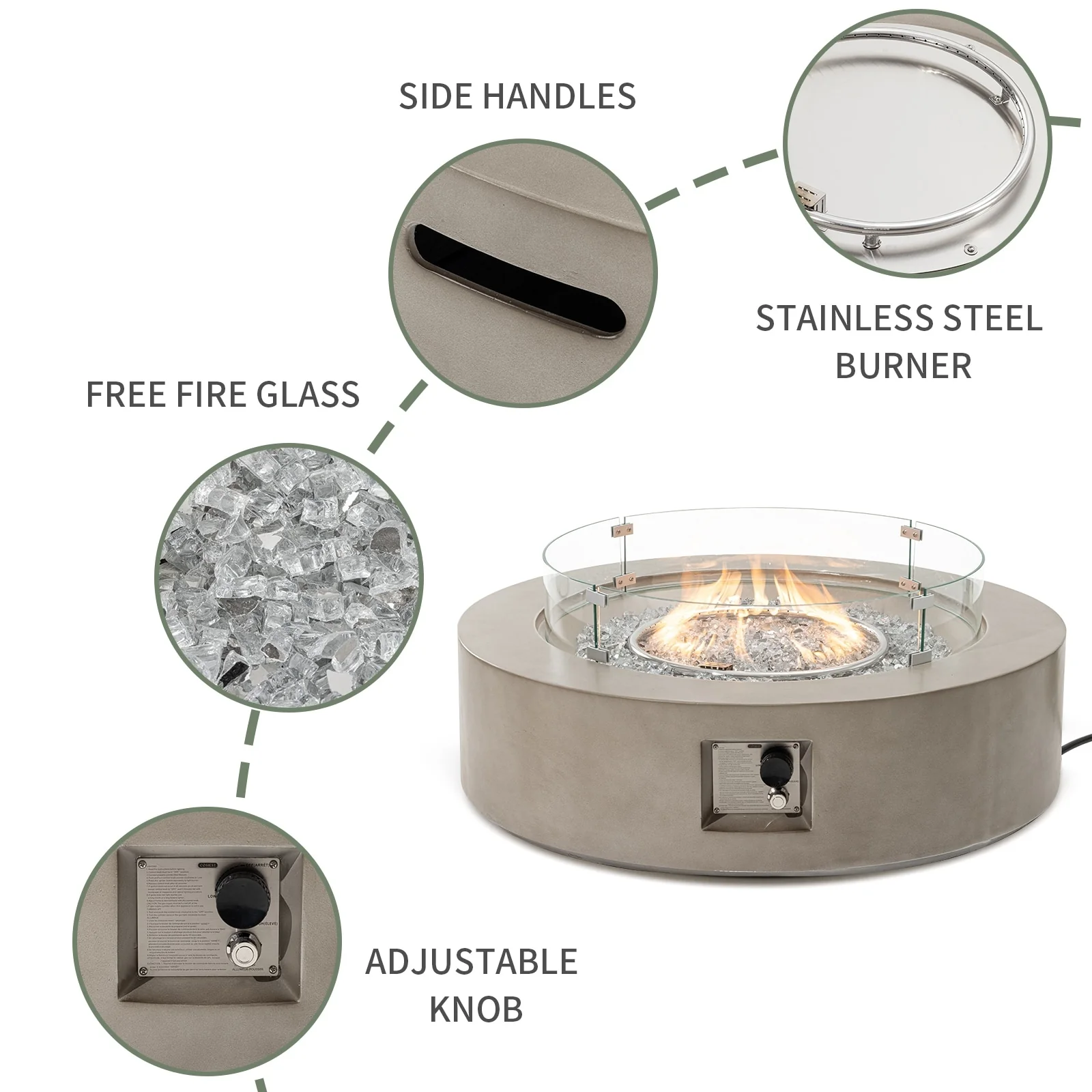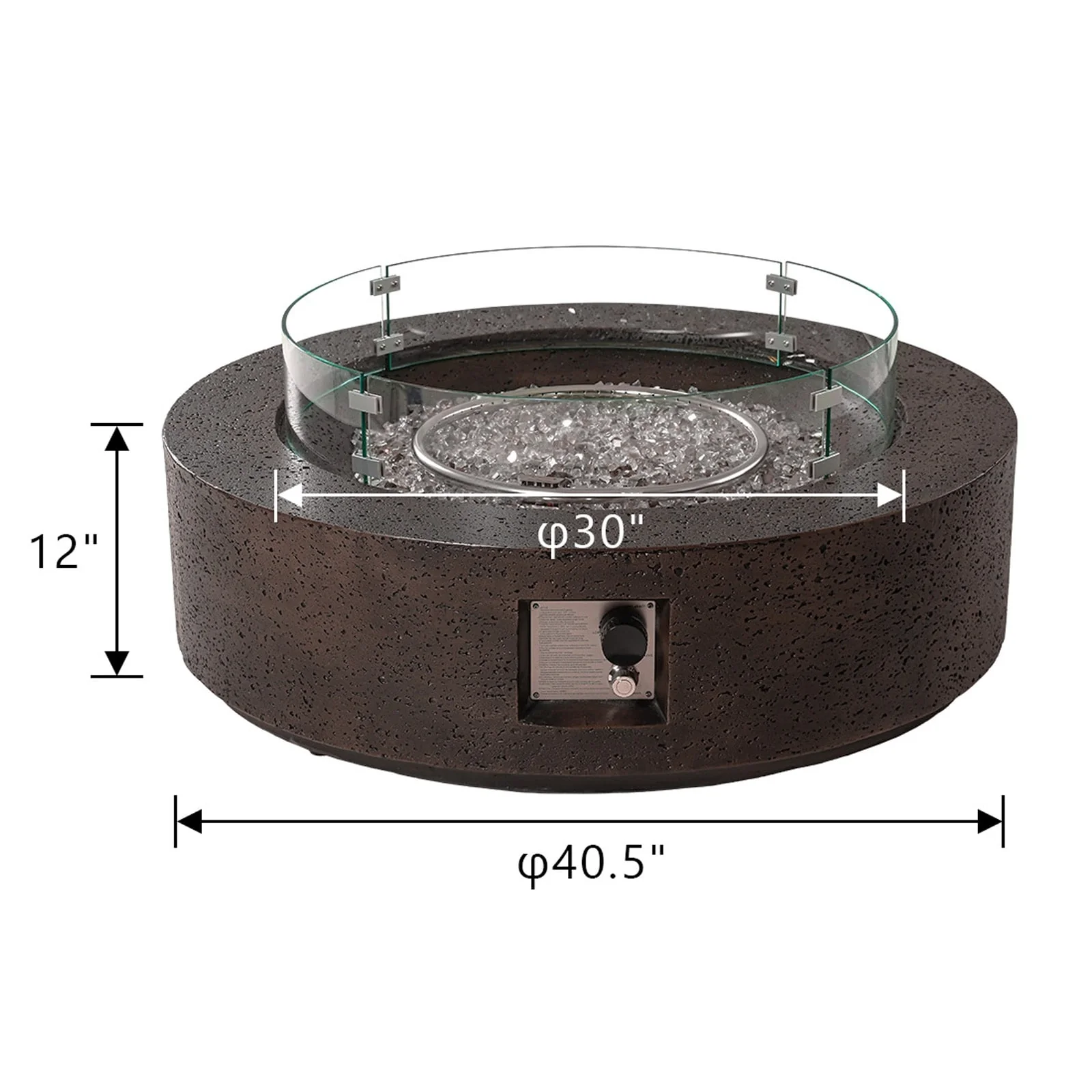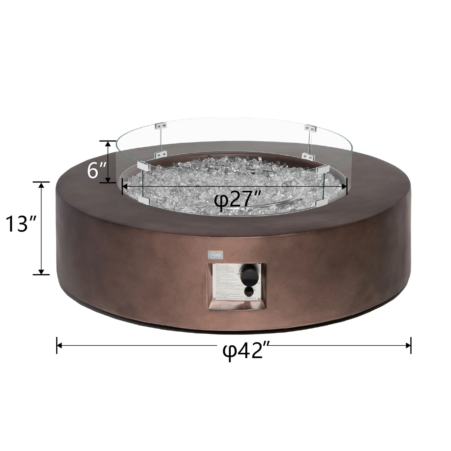 COSIEST Outdoor Round Propane Fire Pit w Wind Guard and Fire Glass
