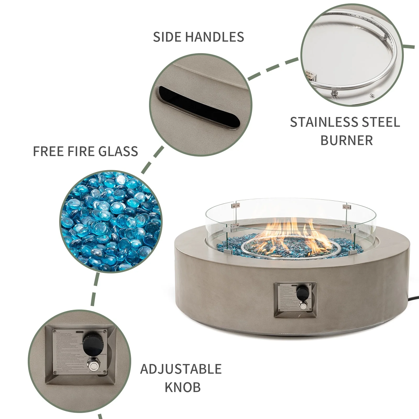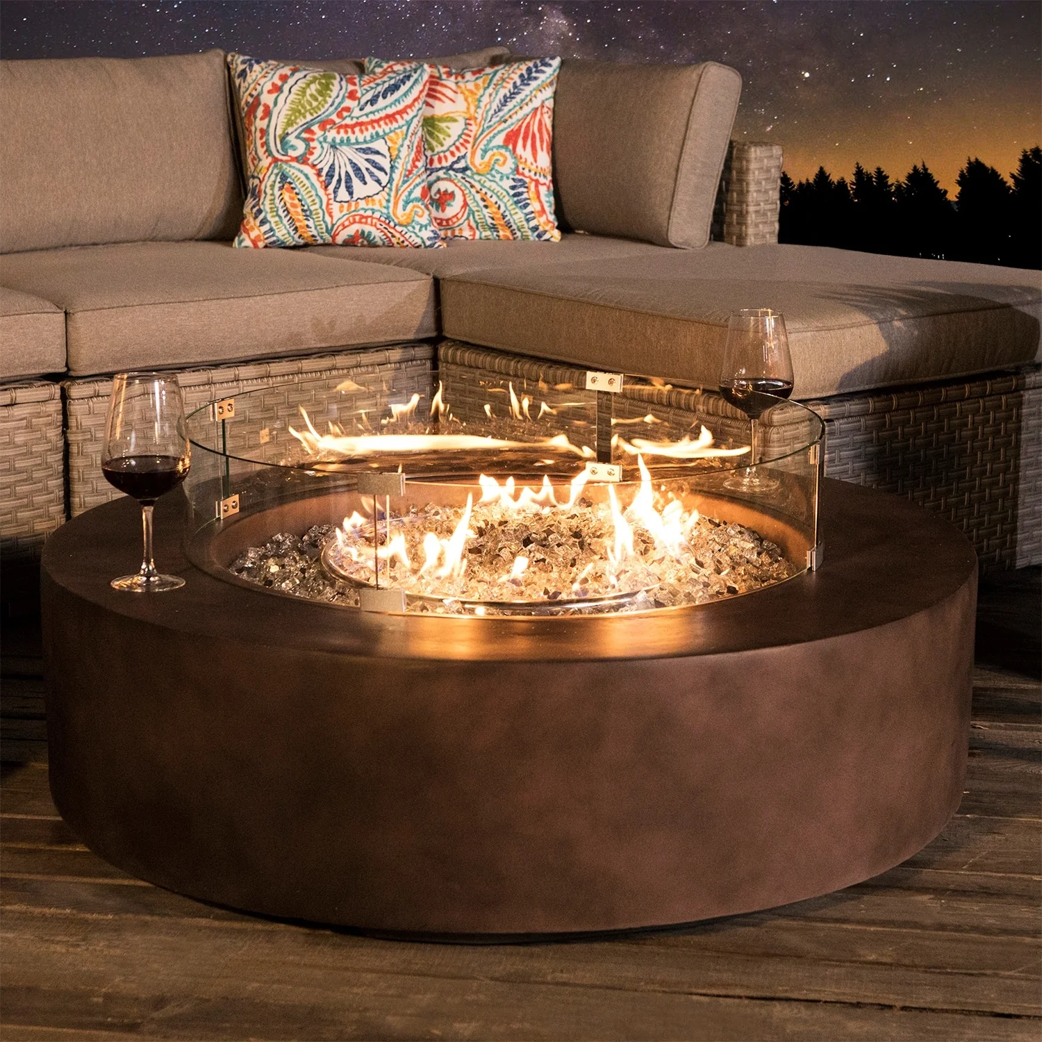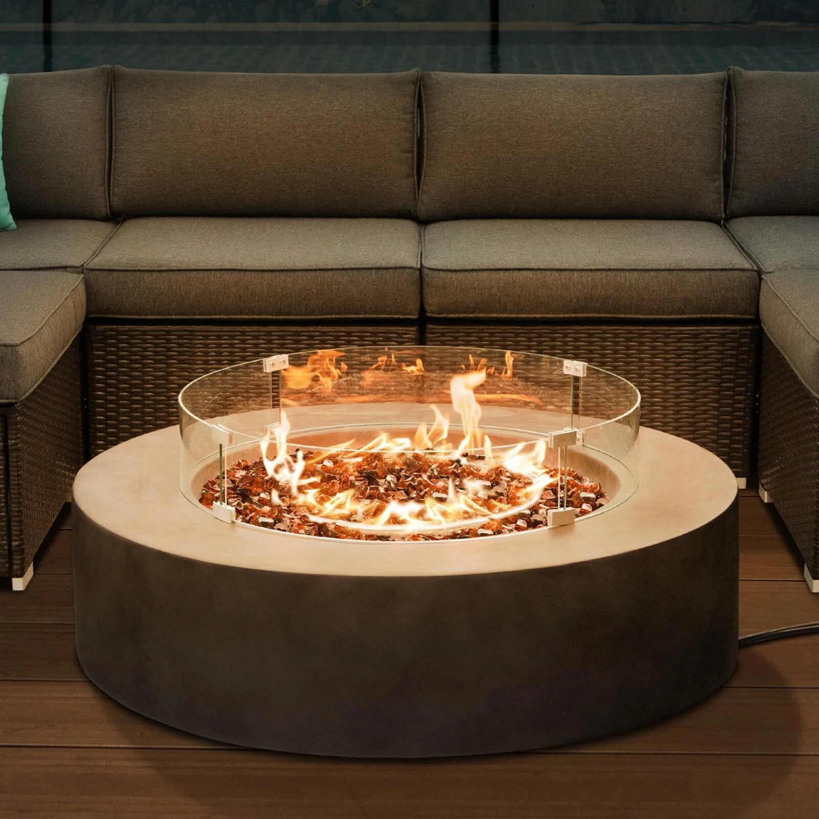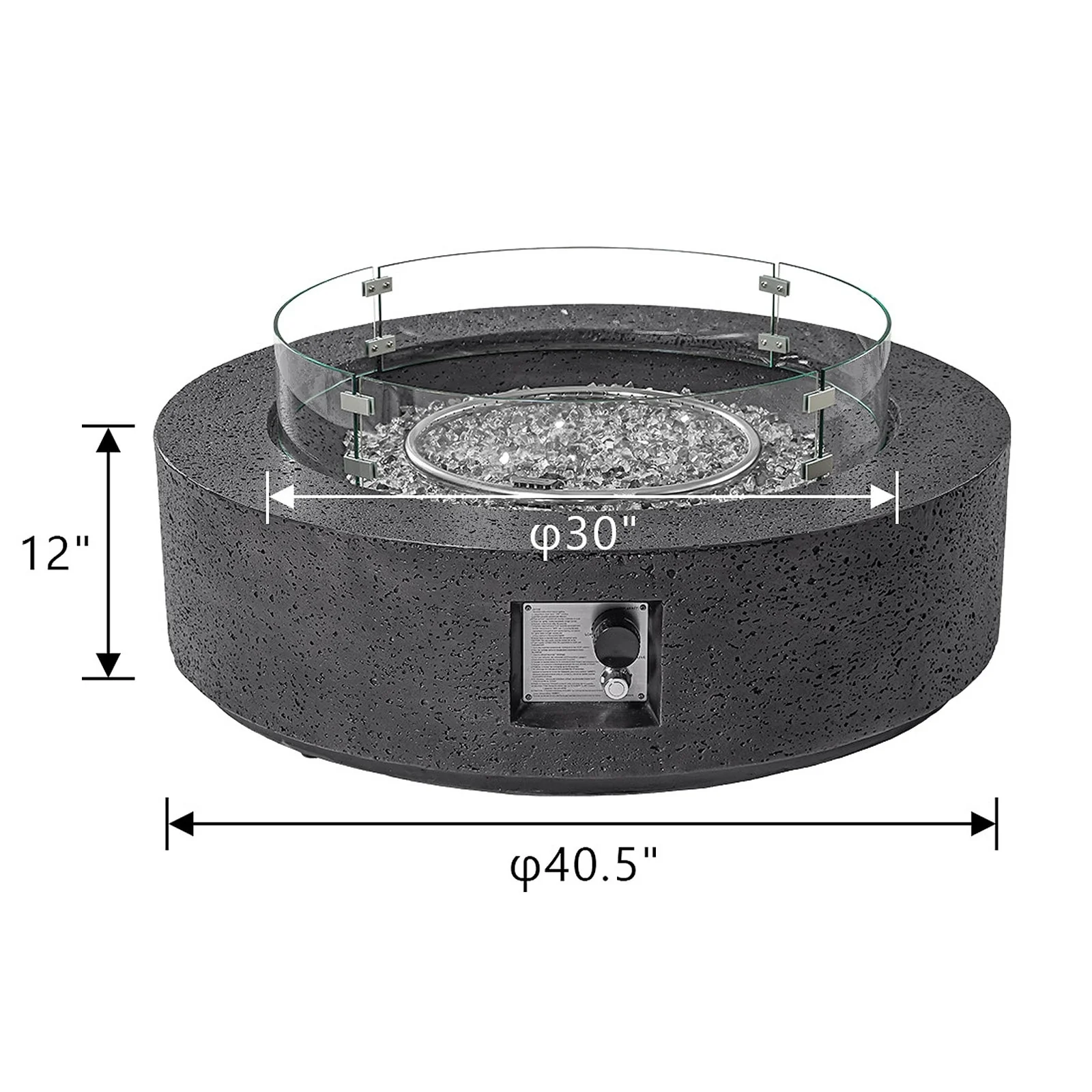 COSIEST Outdoor Round Propane Fire Pit w Wind Guard and Fire Glass