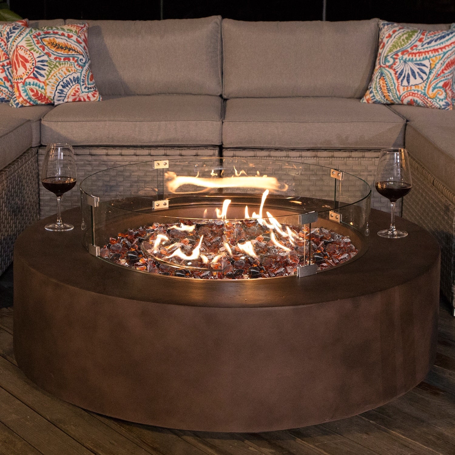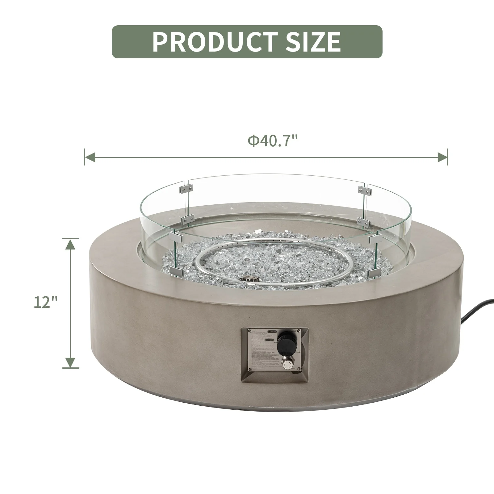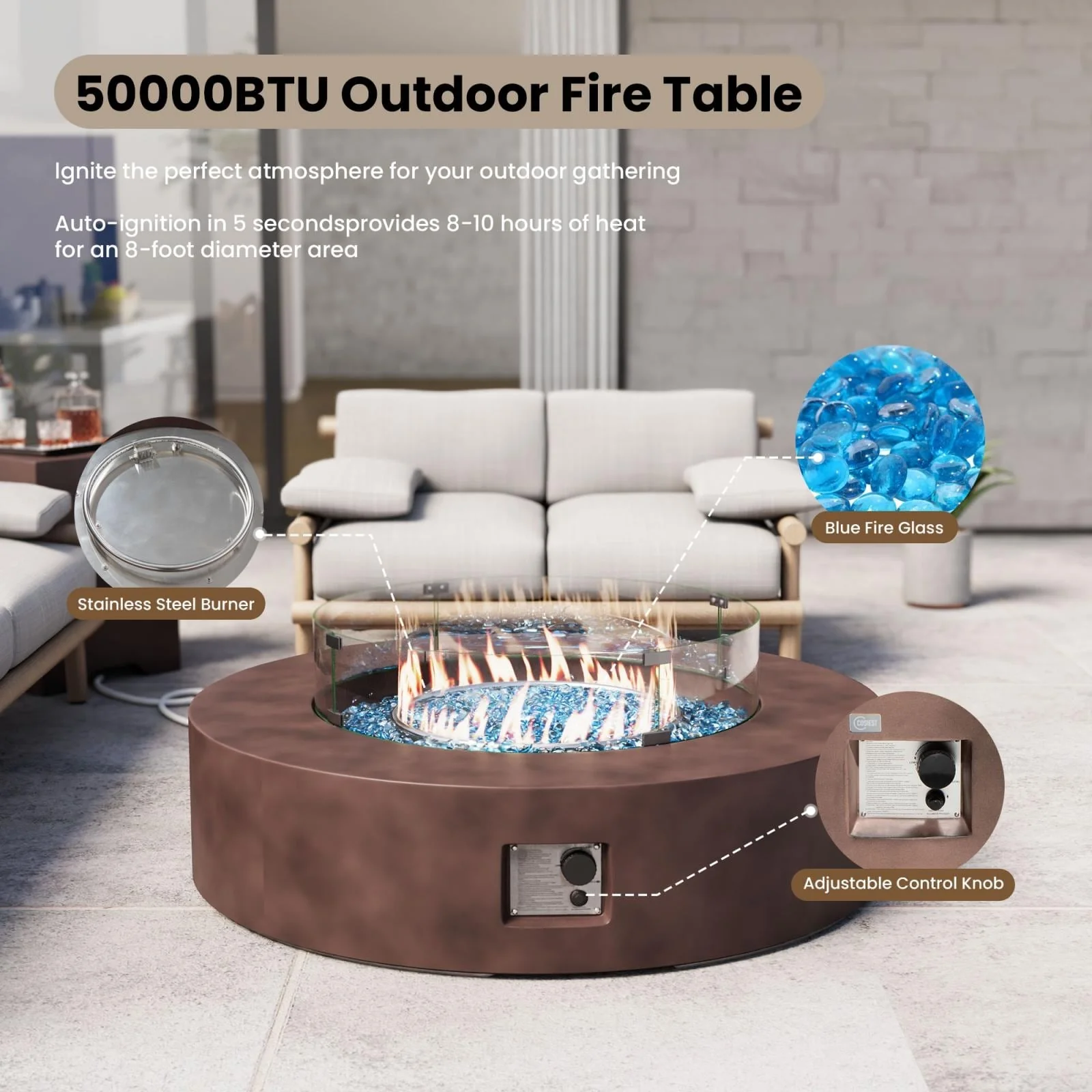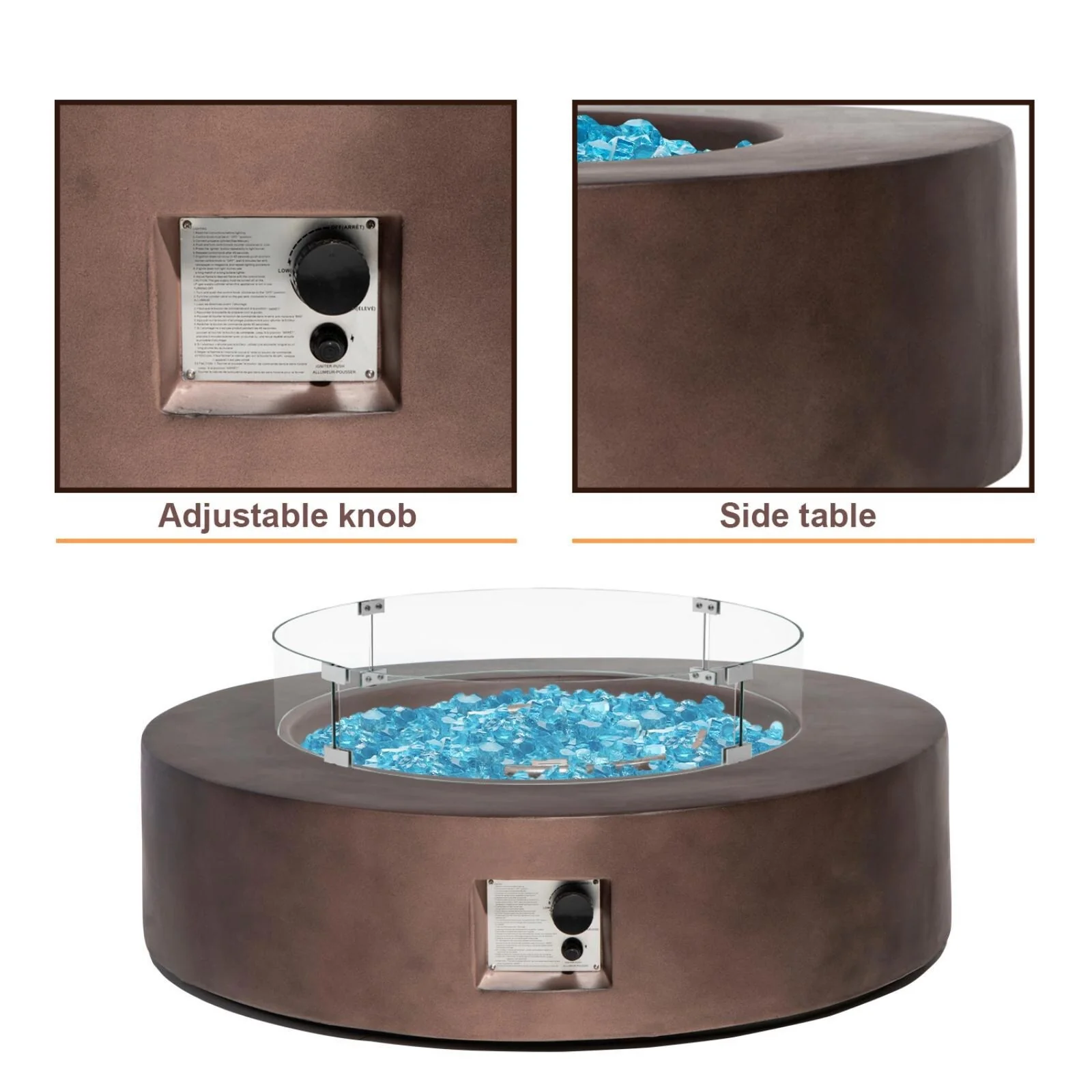 COSIEST Outdoor Round Propane Fire Pit w Wind Guard and Fire Glass