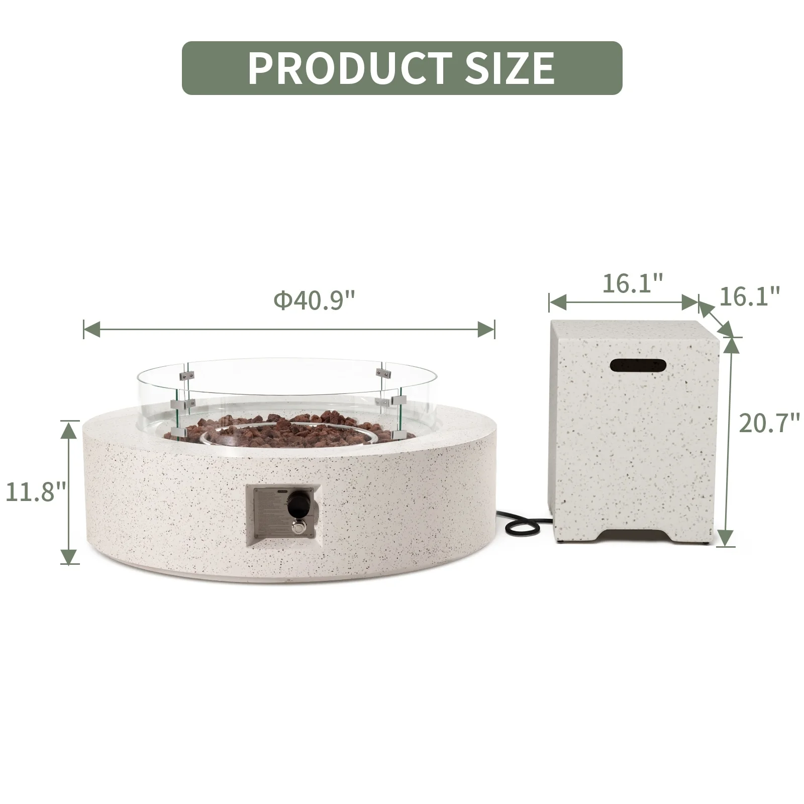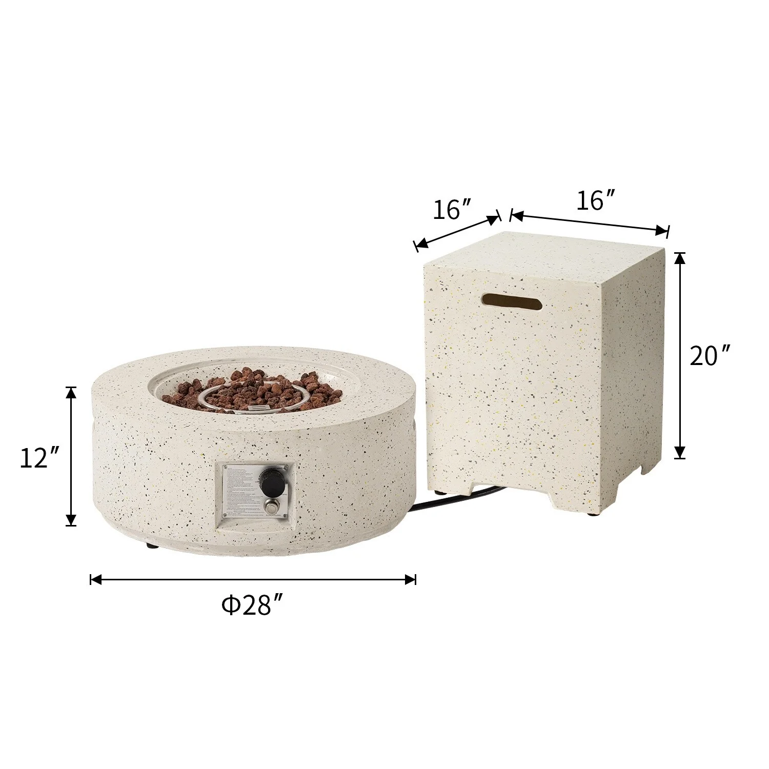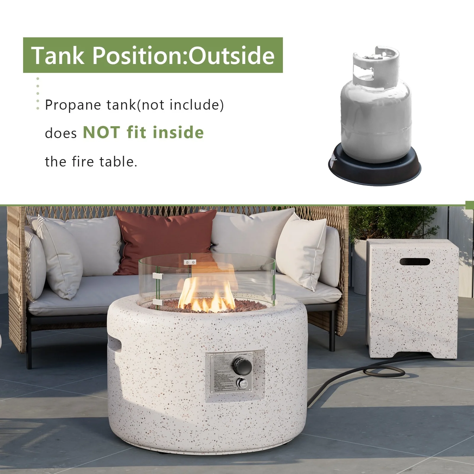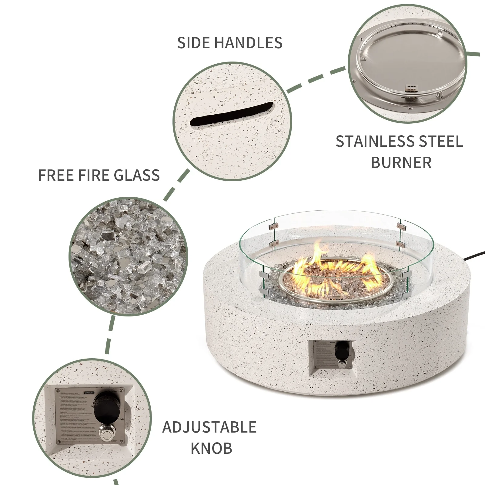 Round Terrazzo Outdoor Firepit with Propane Tank Cover & Wind Guard