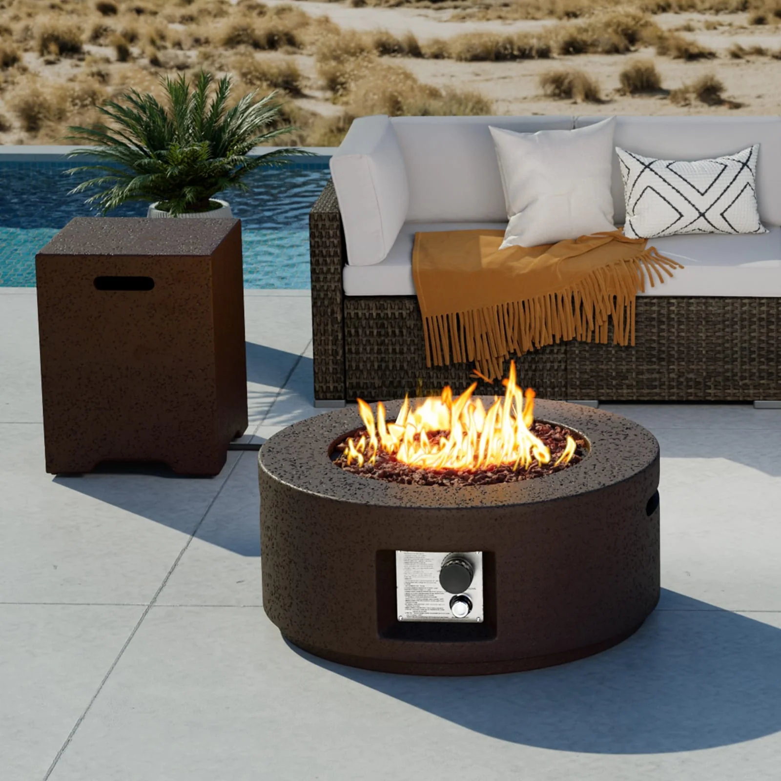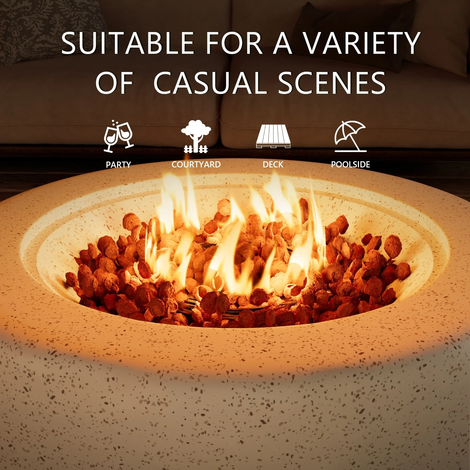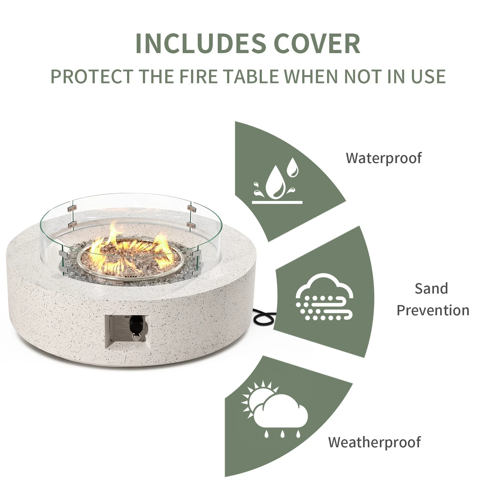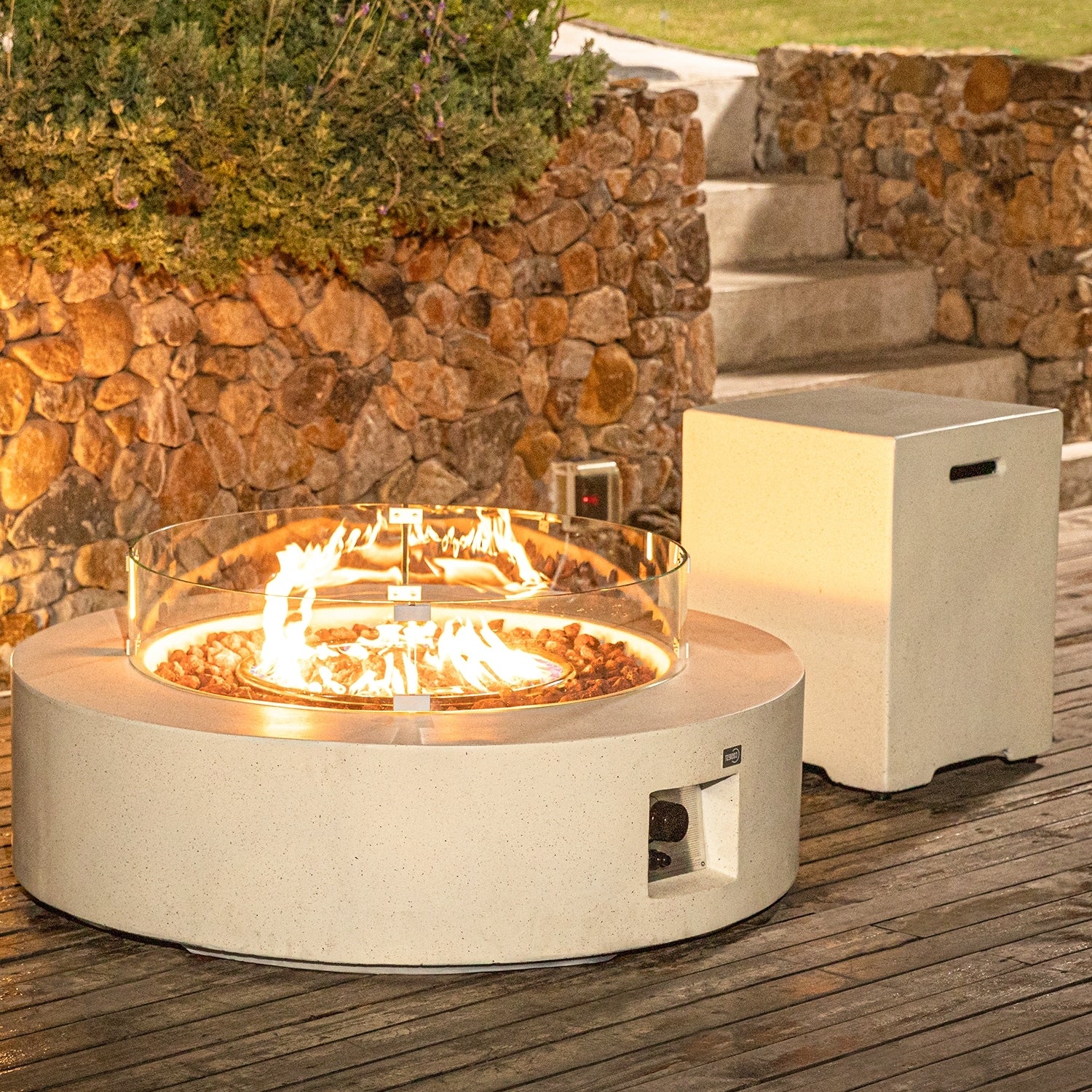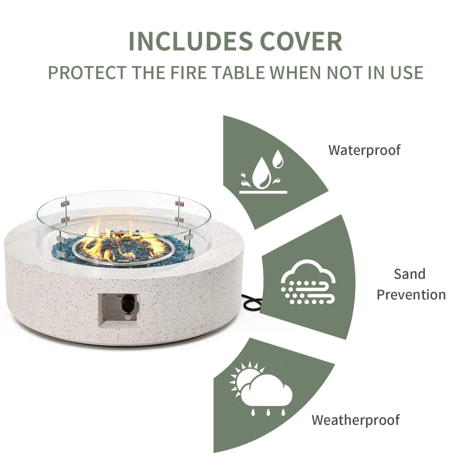 Round Terrazzo Outdoor Firepit with Propane Tank Cover & Wind Guard
