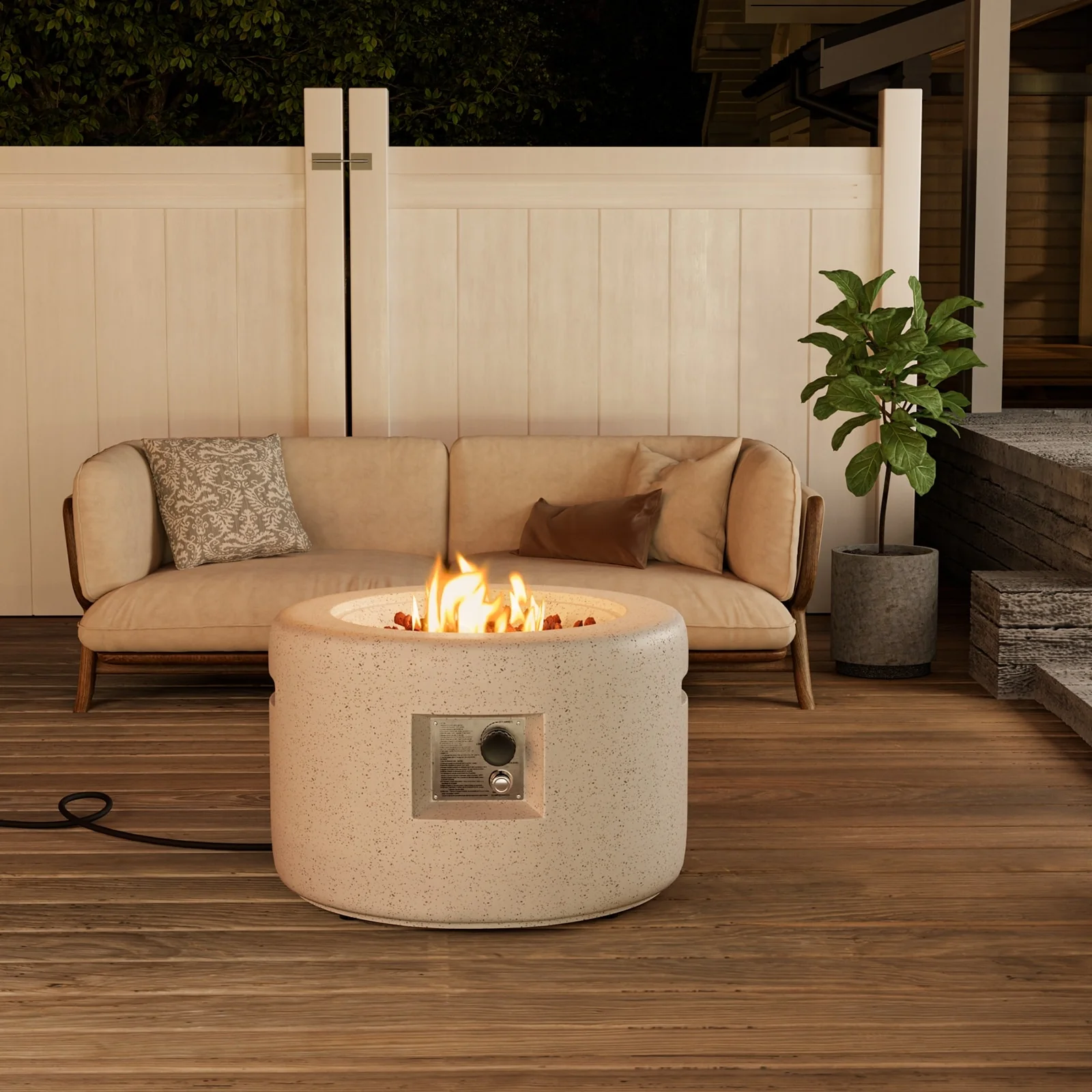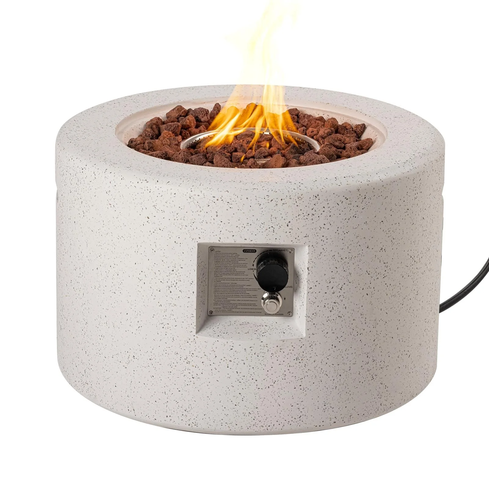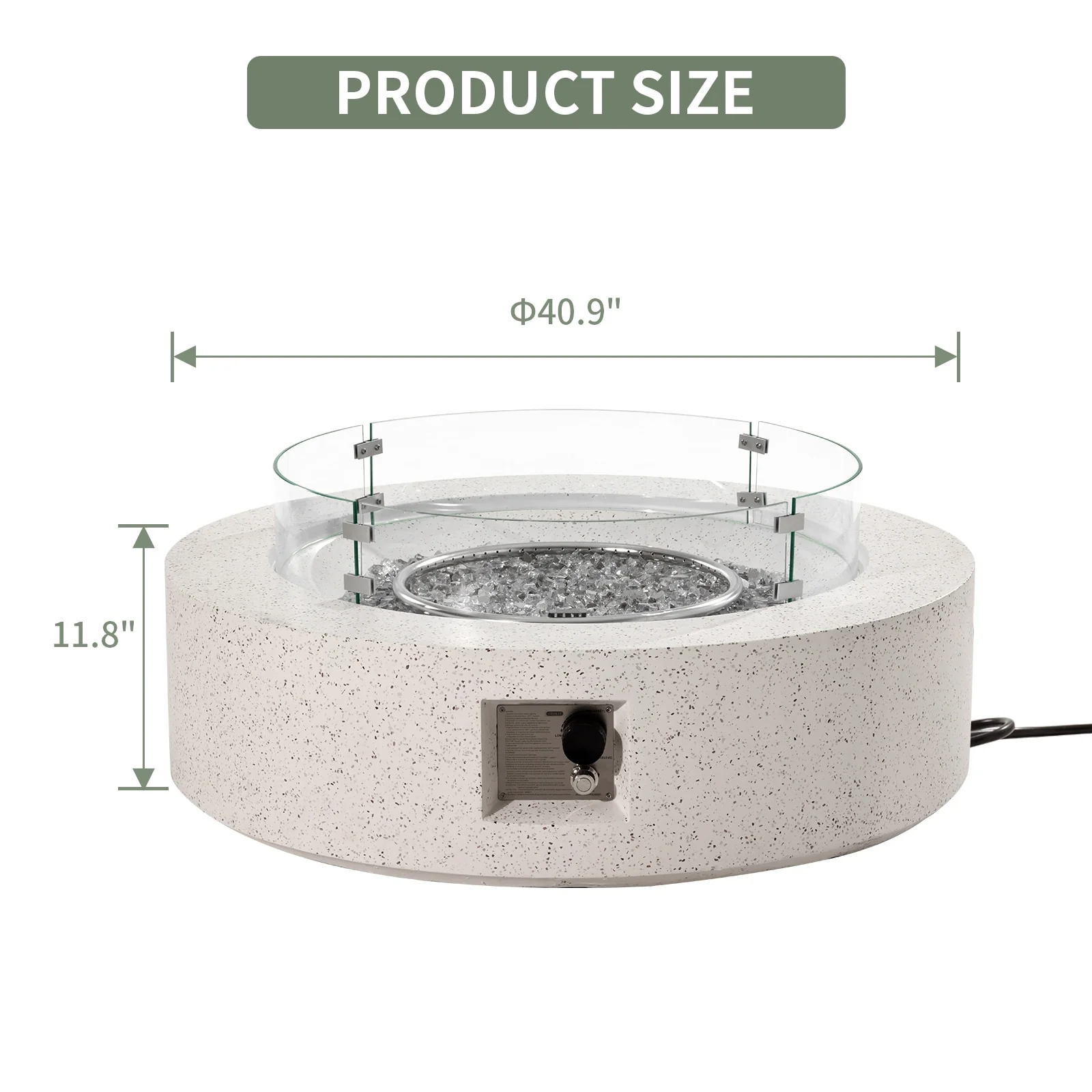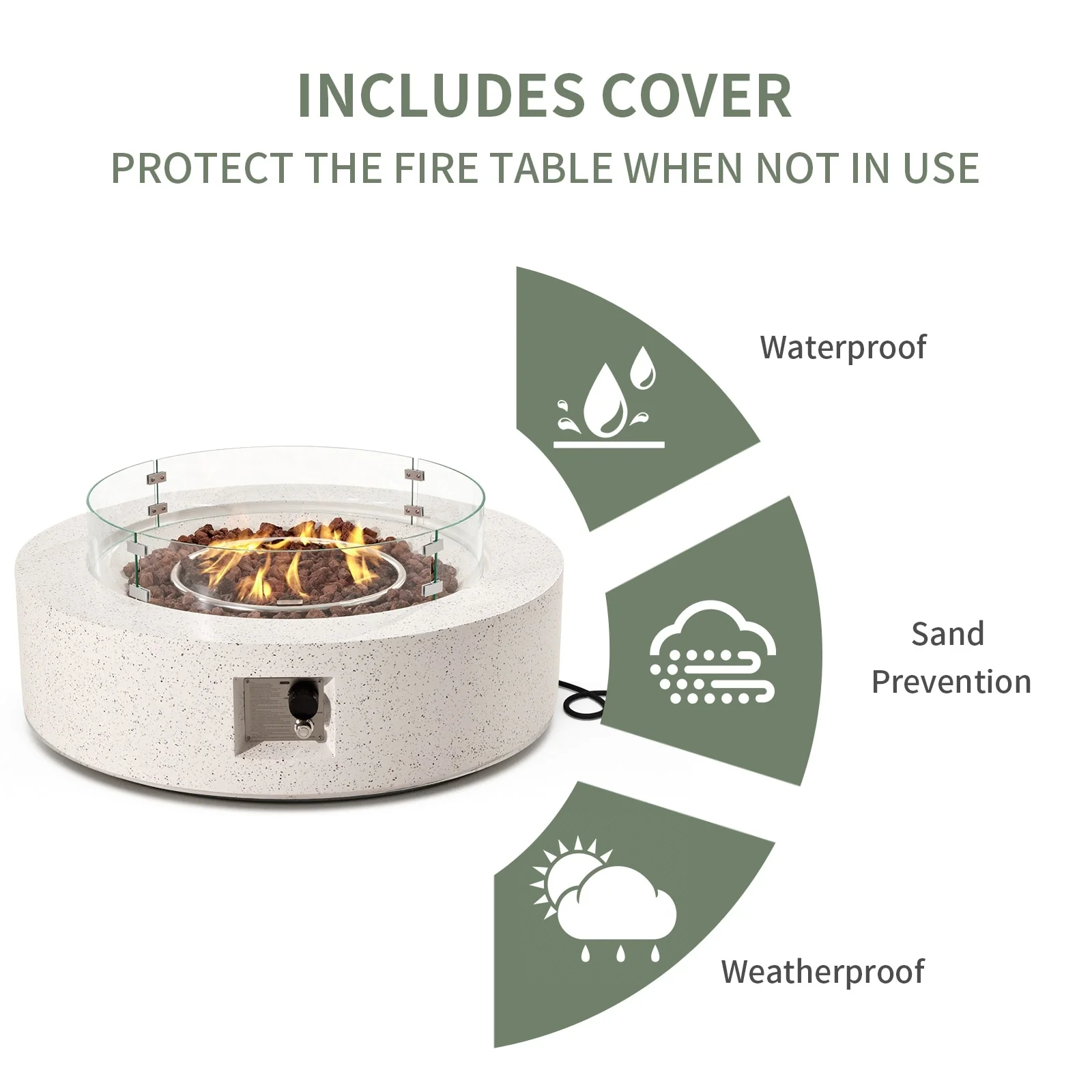 Round Terrazzo Outdoor Firepit with Propane Tank Cover & Wind Guard