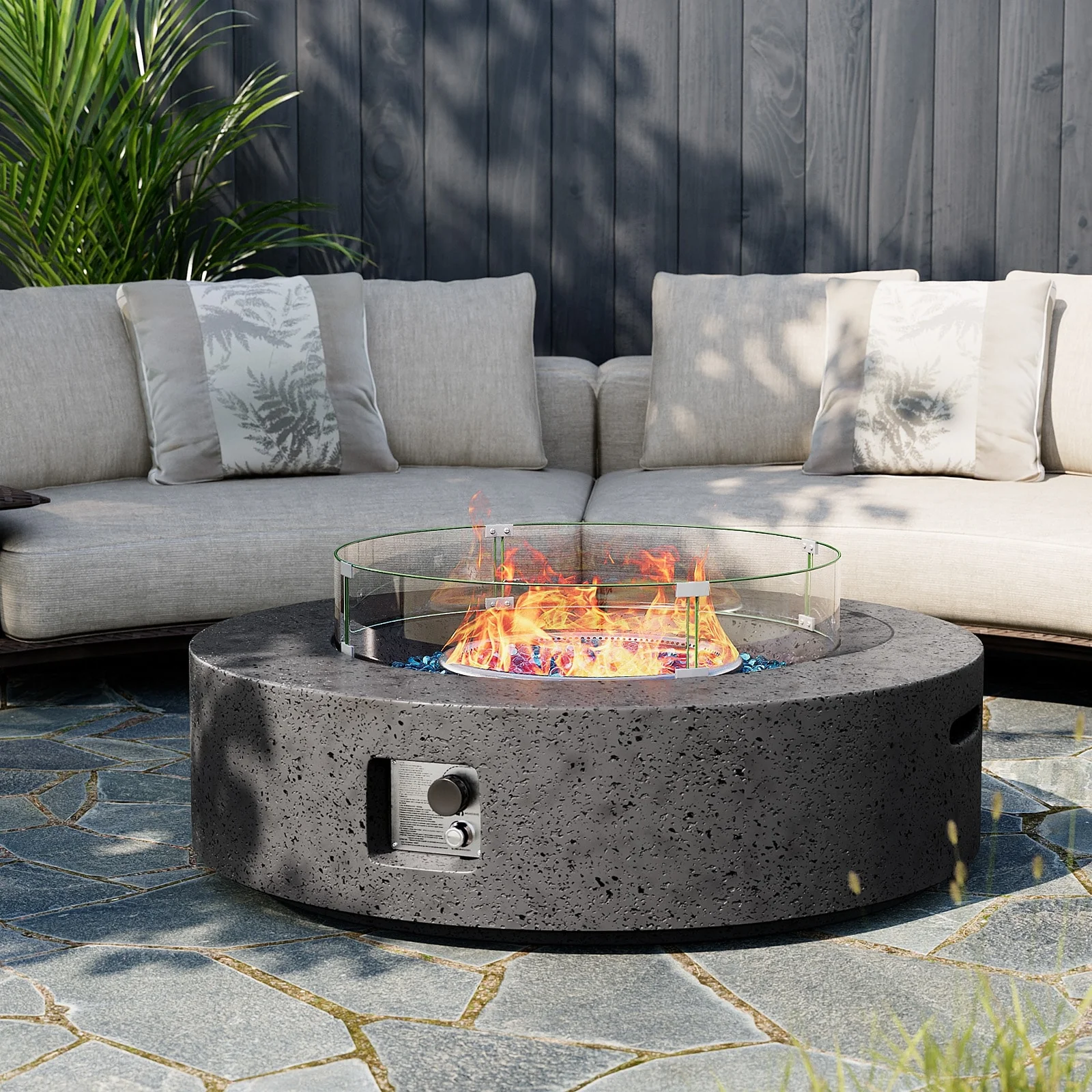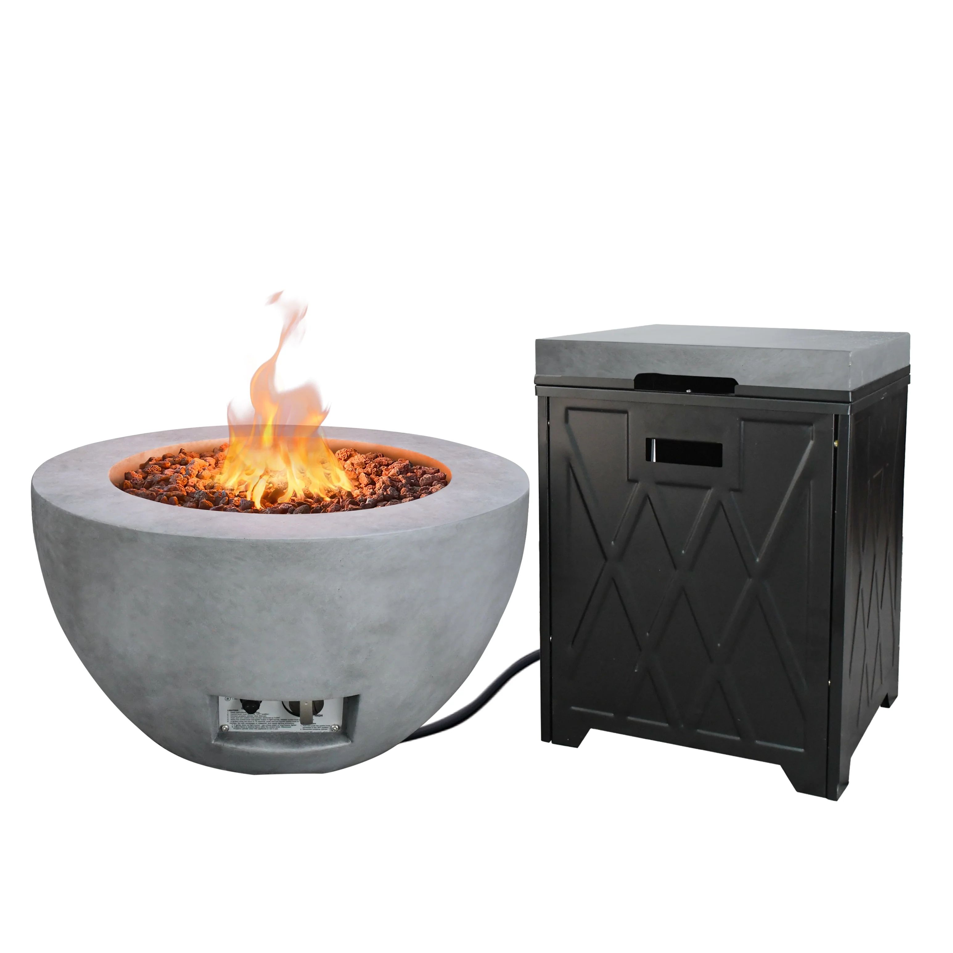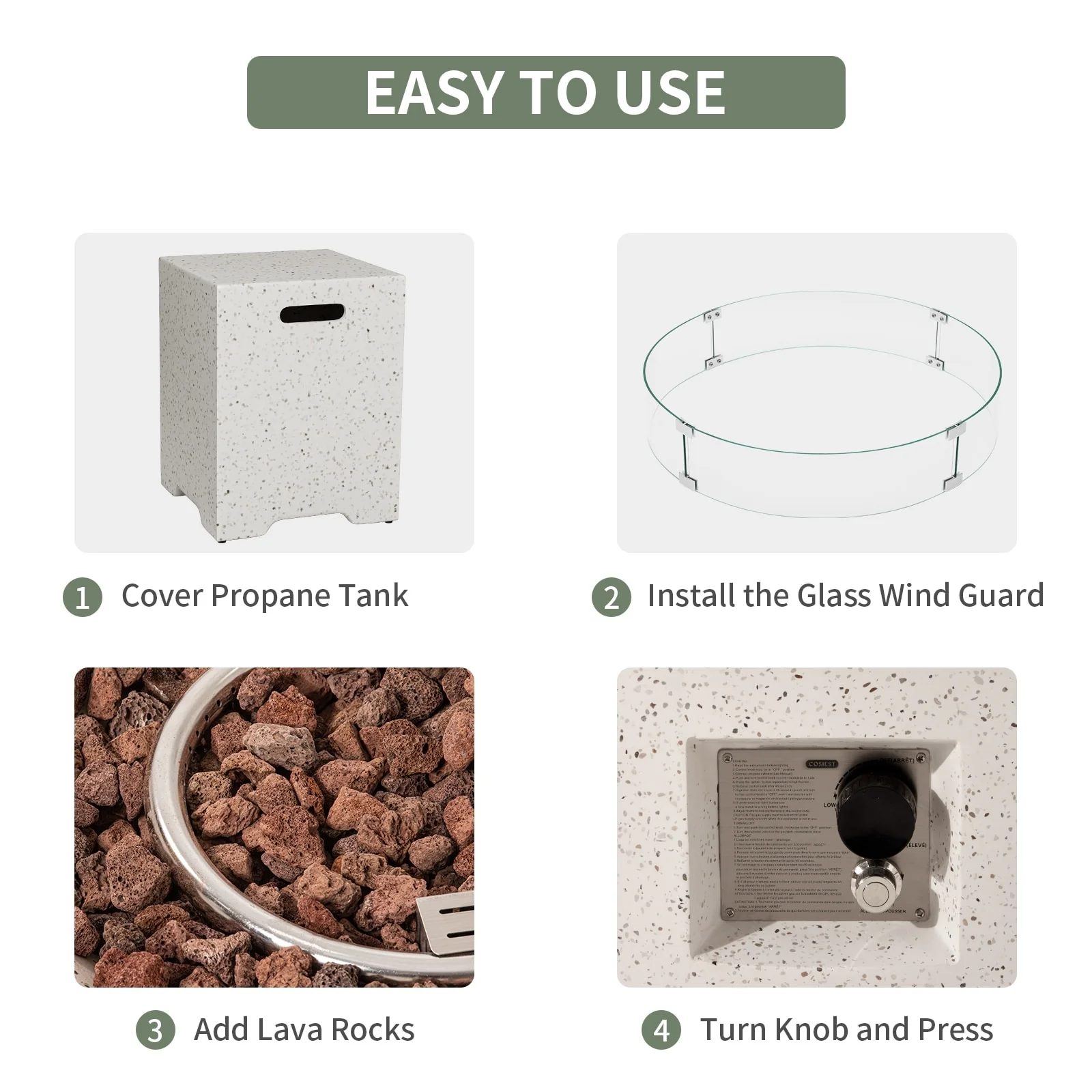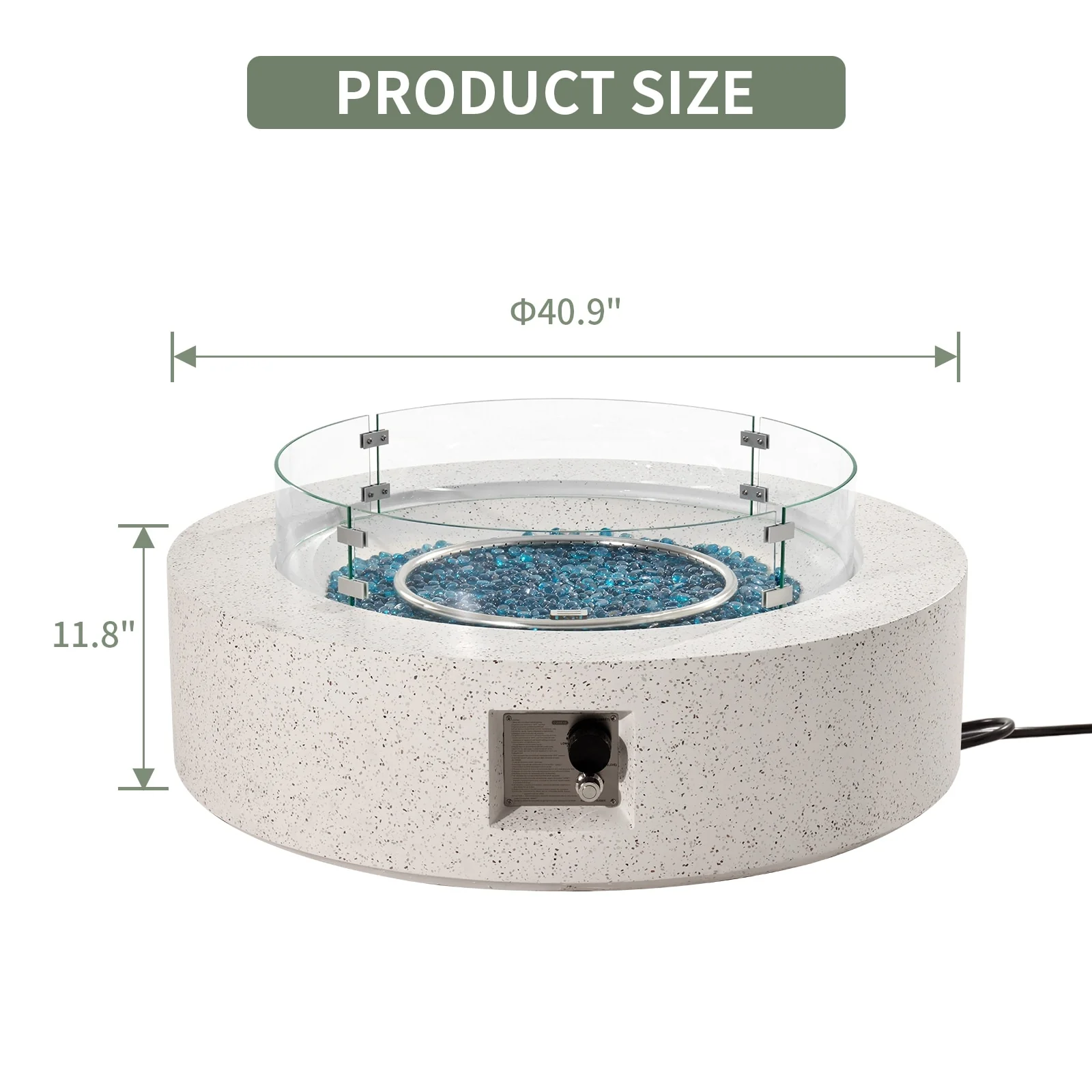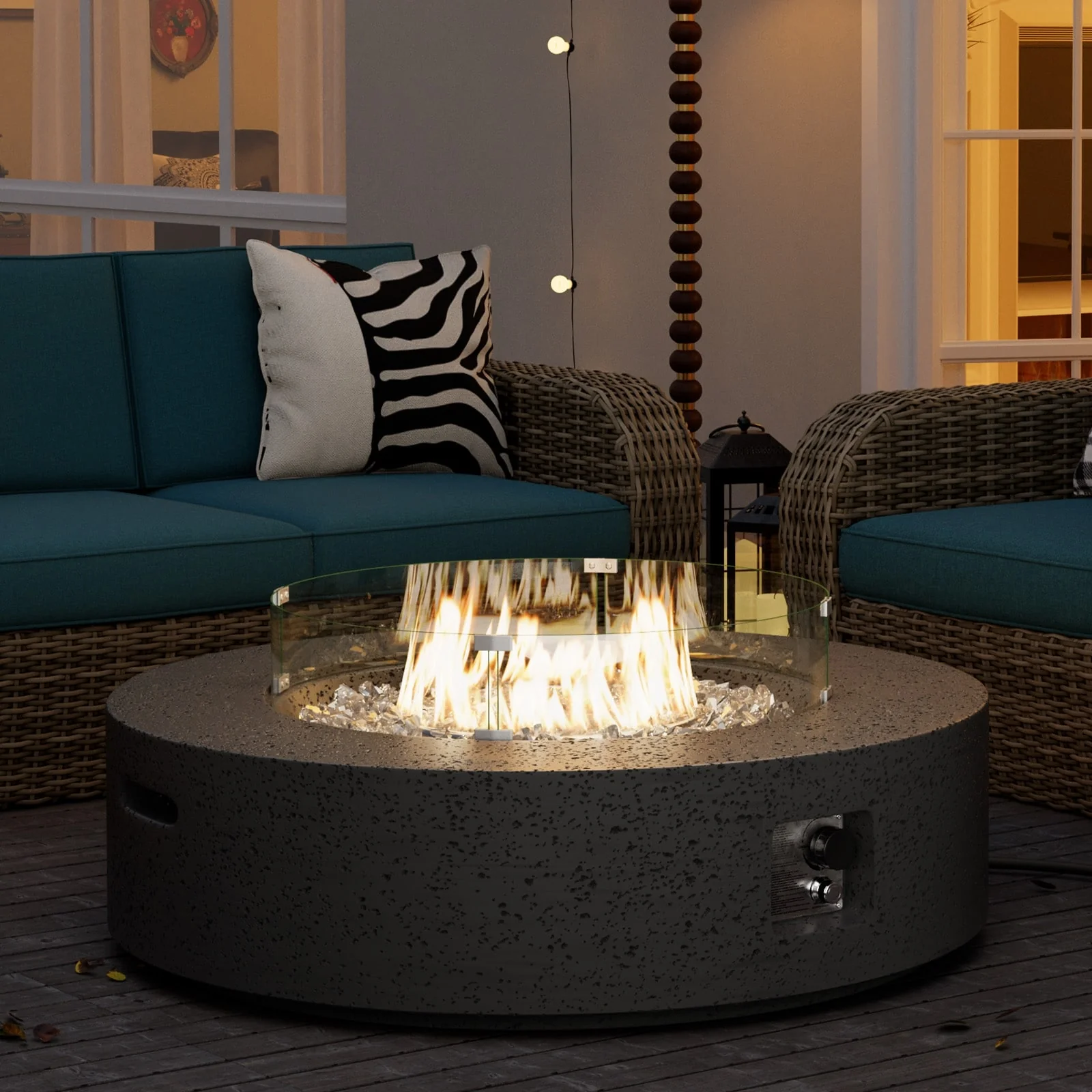 Round Terrazzo Outdoor Firepit with Propane Tank Cover & Wind Guard