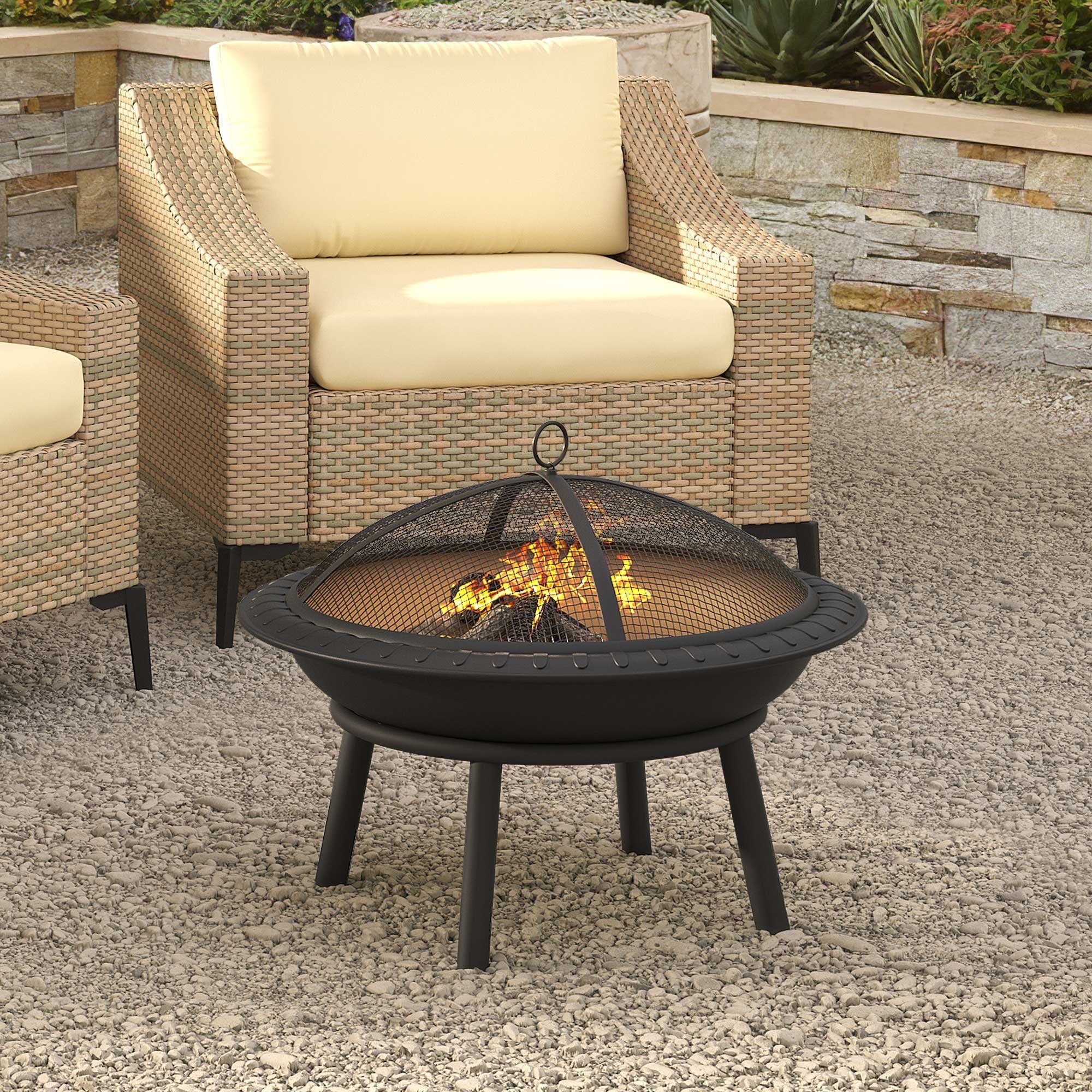 Lava Star 26" Round Wood Burning Fire Pit with Grill and Metal Lid