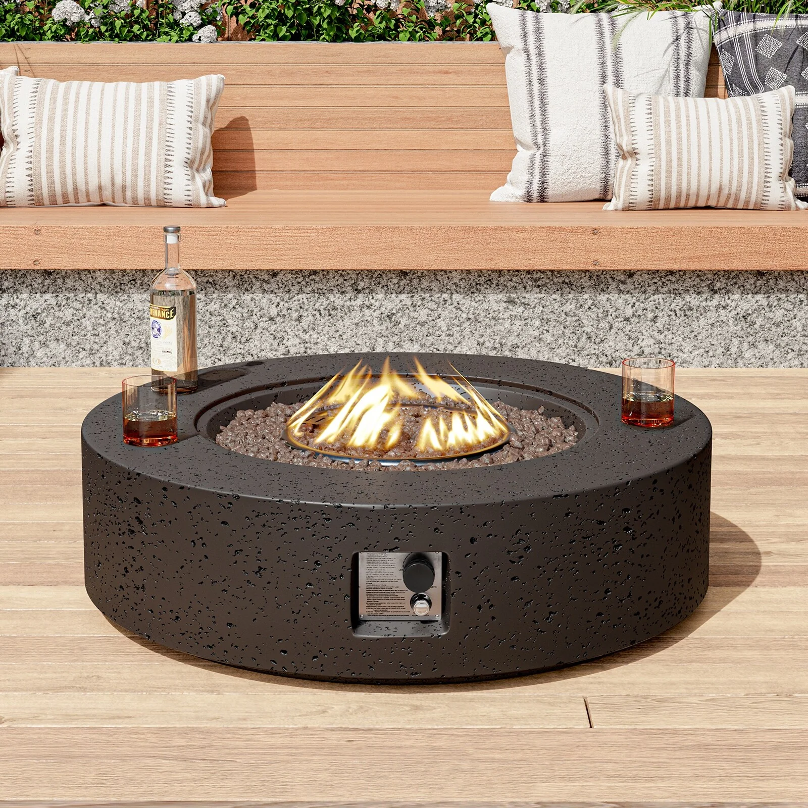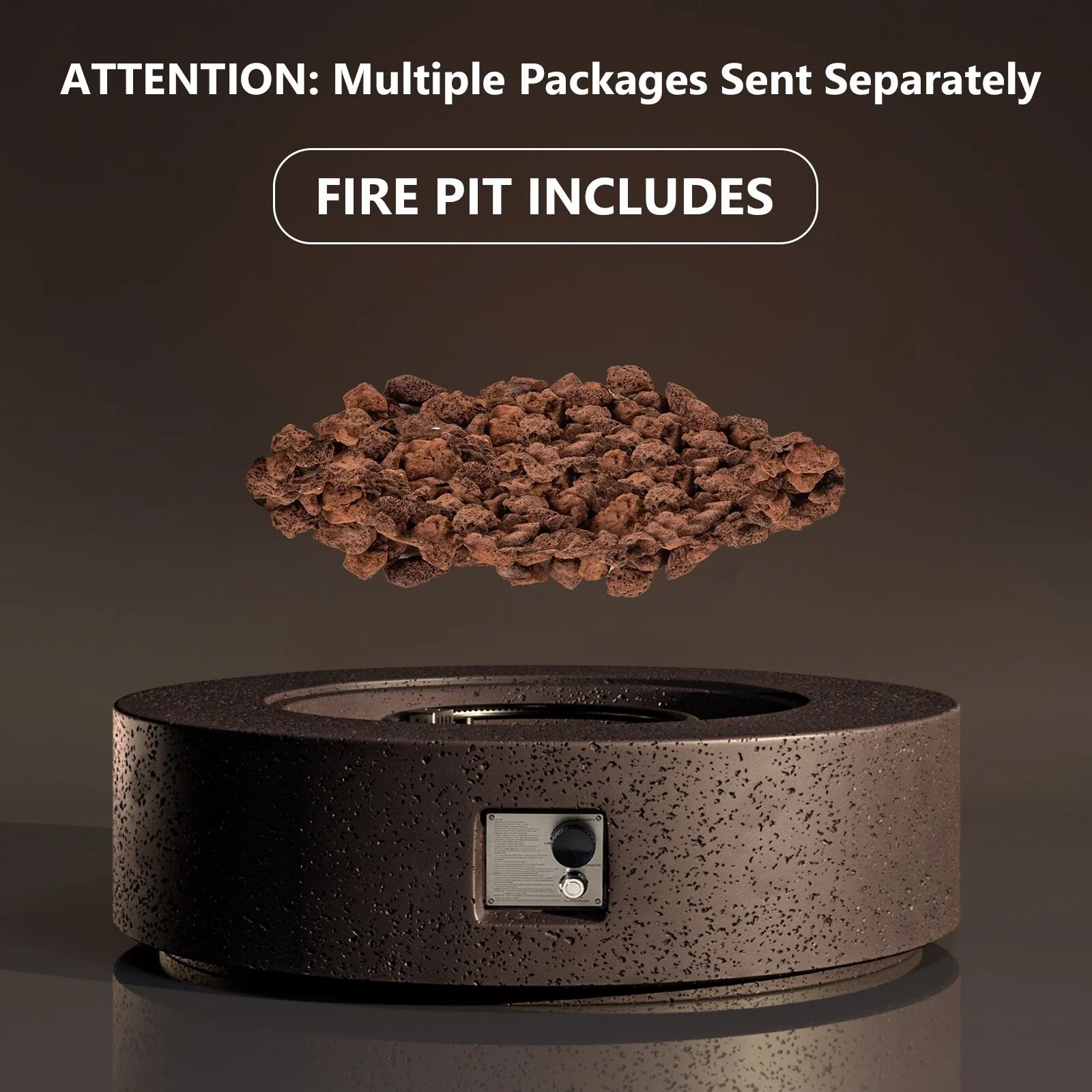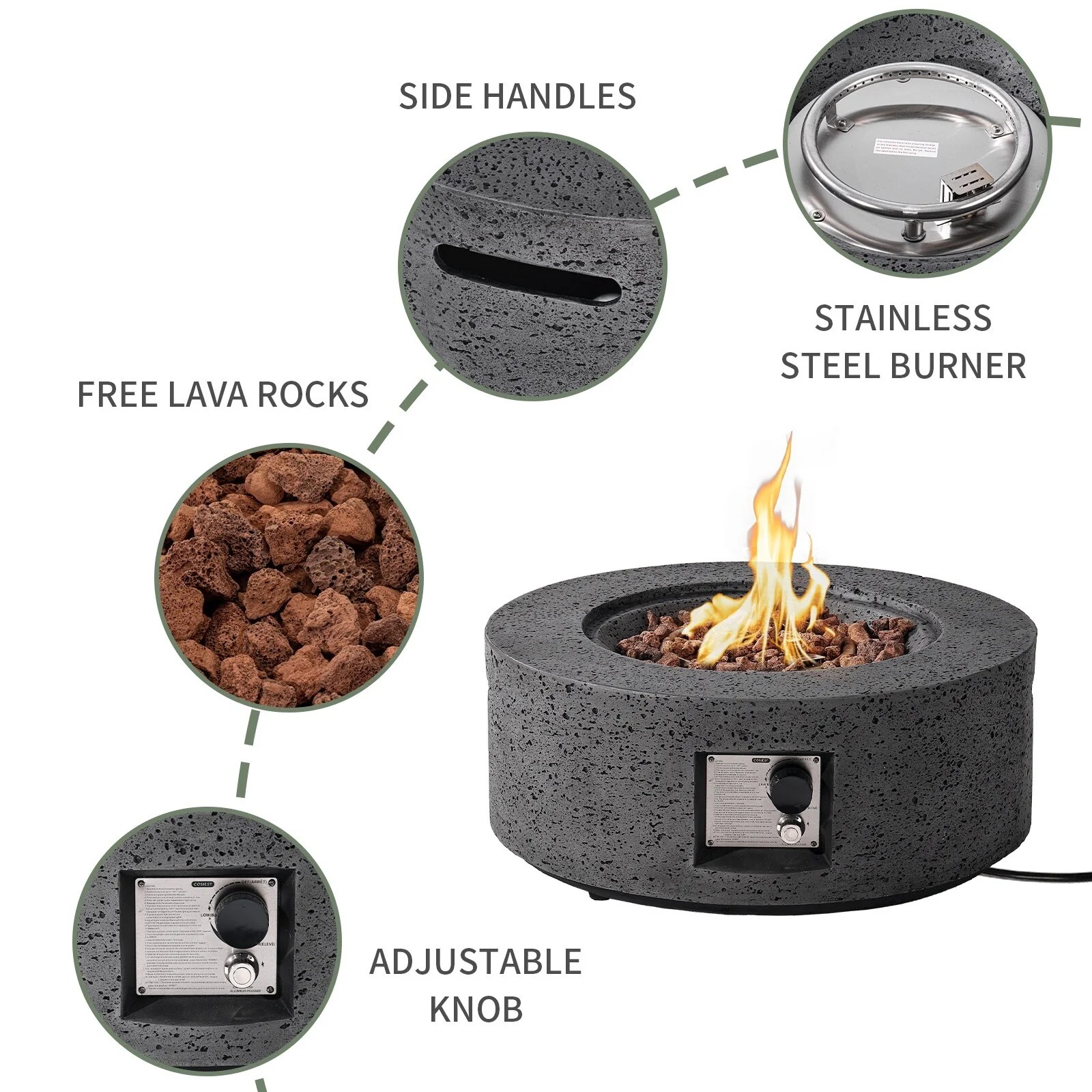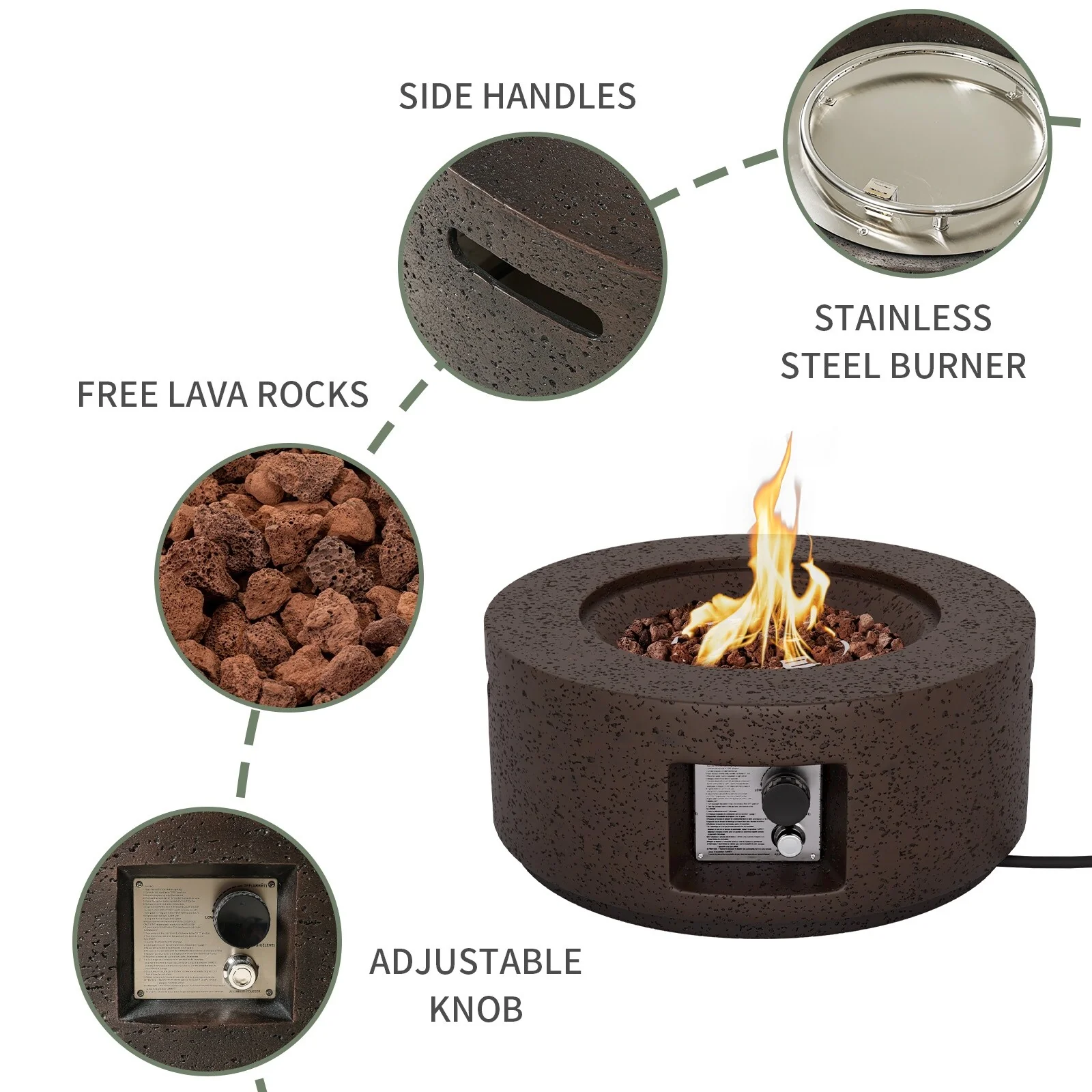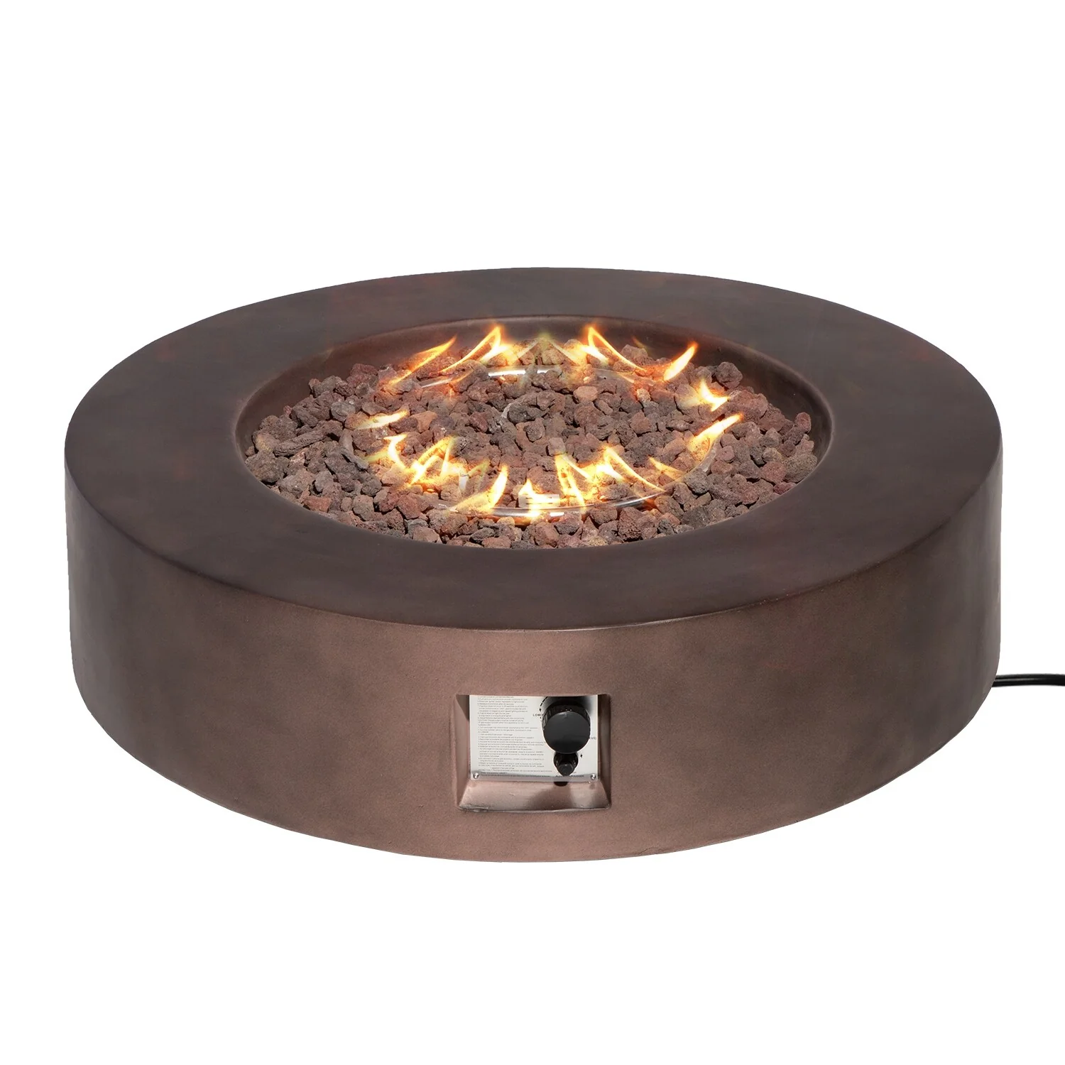 Fire & Flare 35"W Round 50K BTU Outdoor Propane Fire Pit Table with Lava Rocks