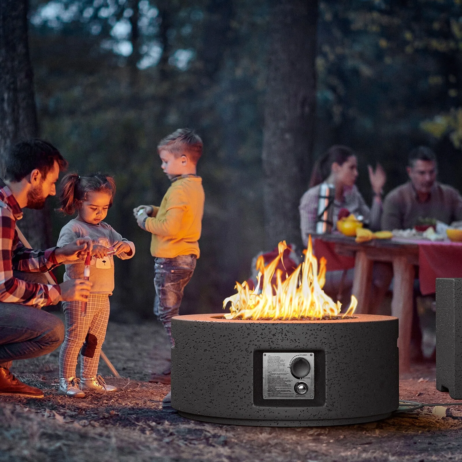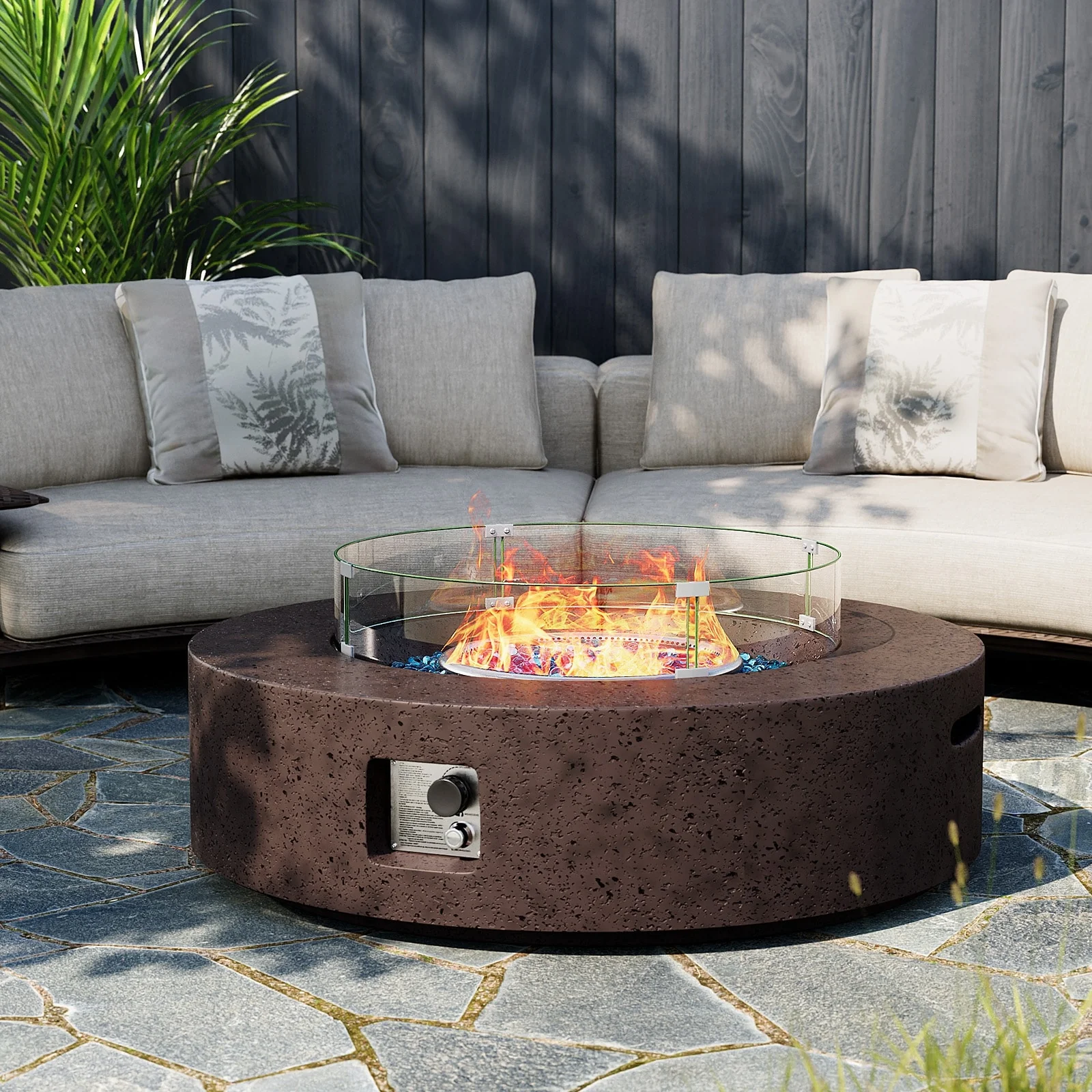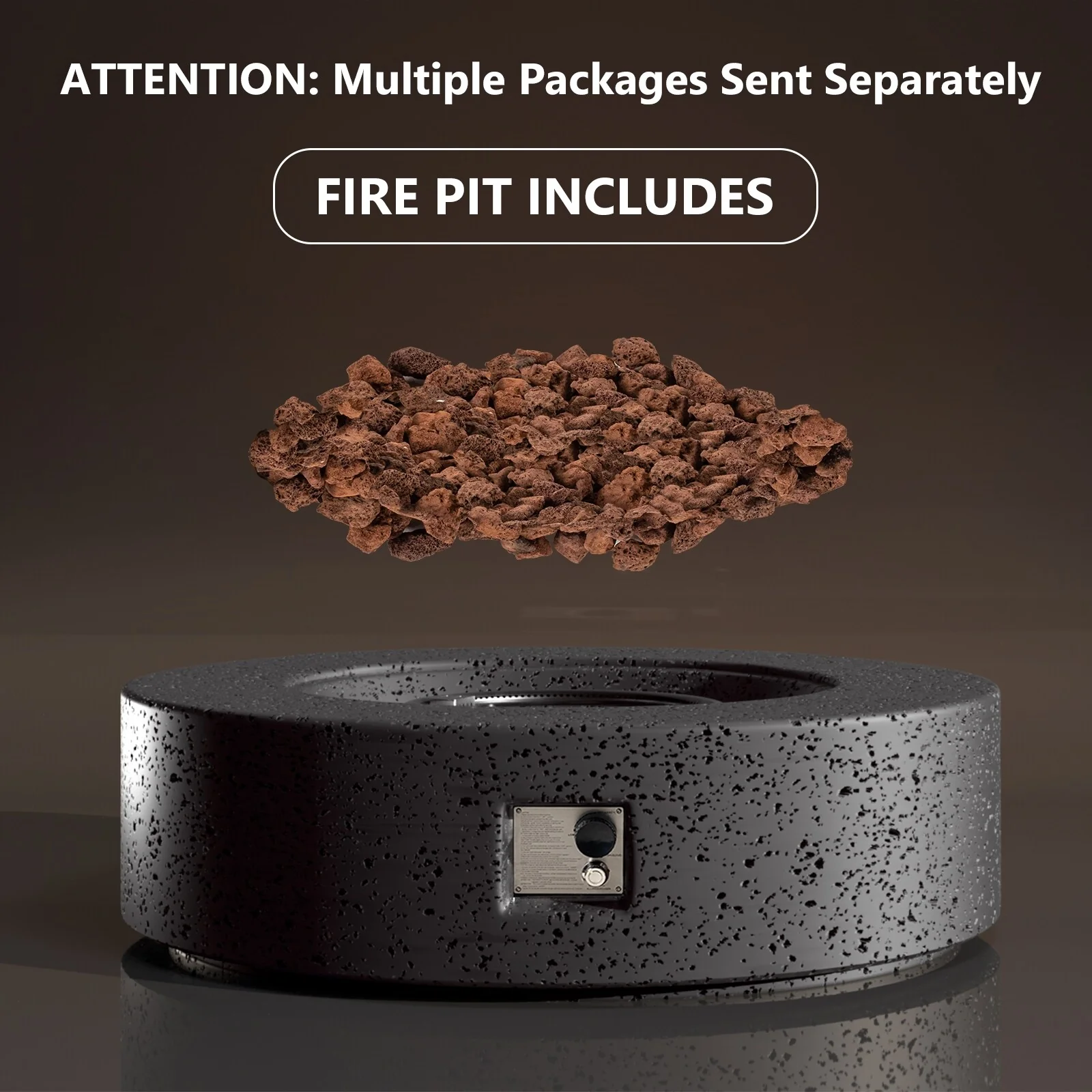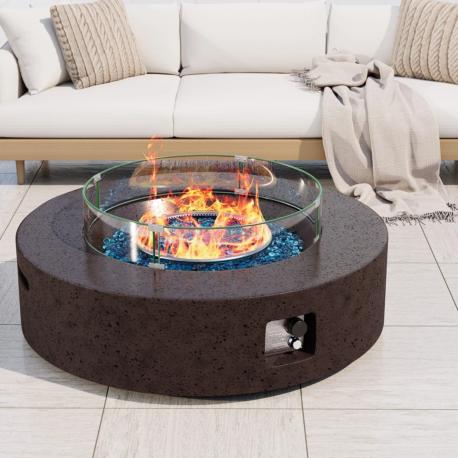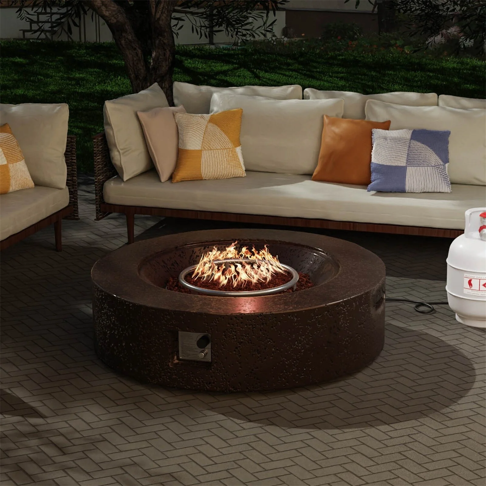 Fire & Flare 35"W Round 50K BTU Outdoor Propane Fire Pit Table with Lava Rocks