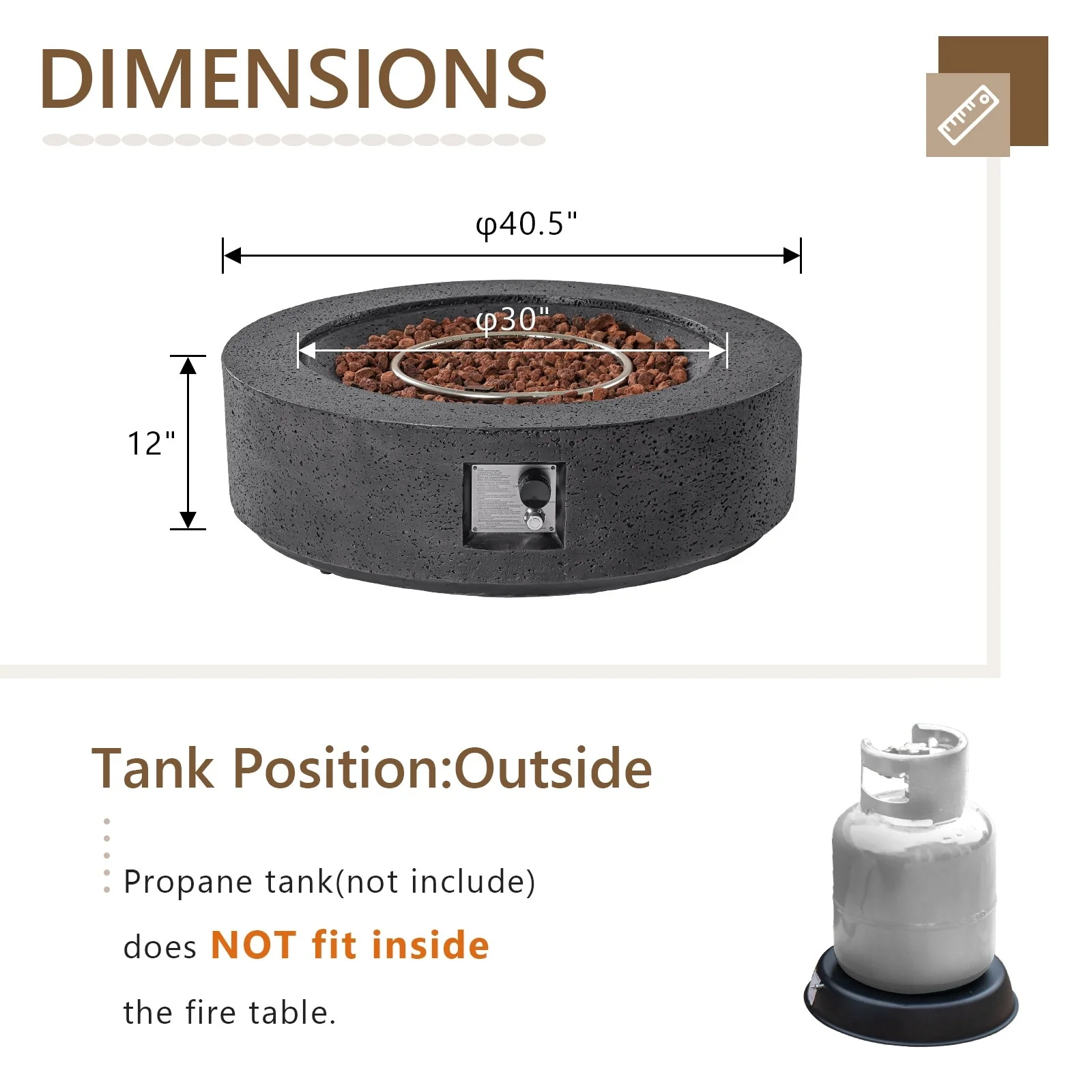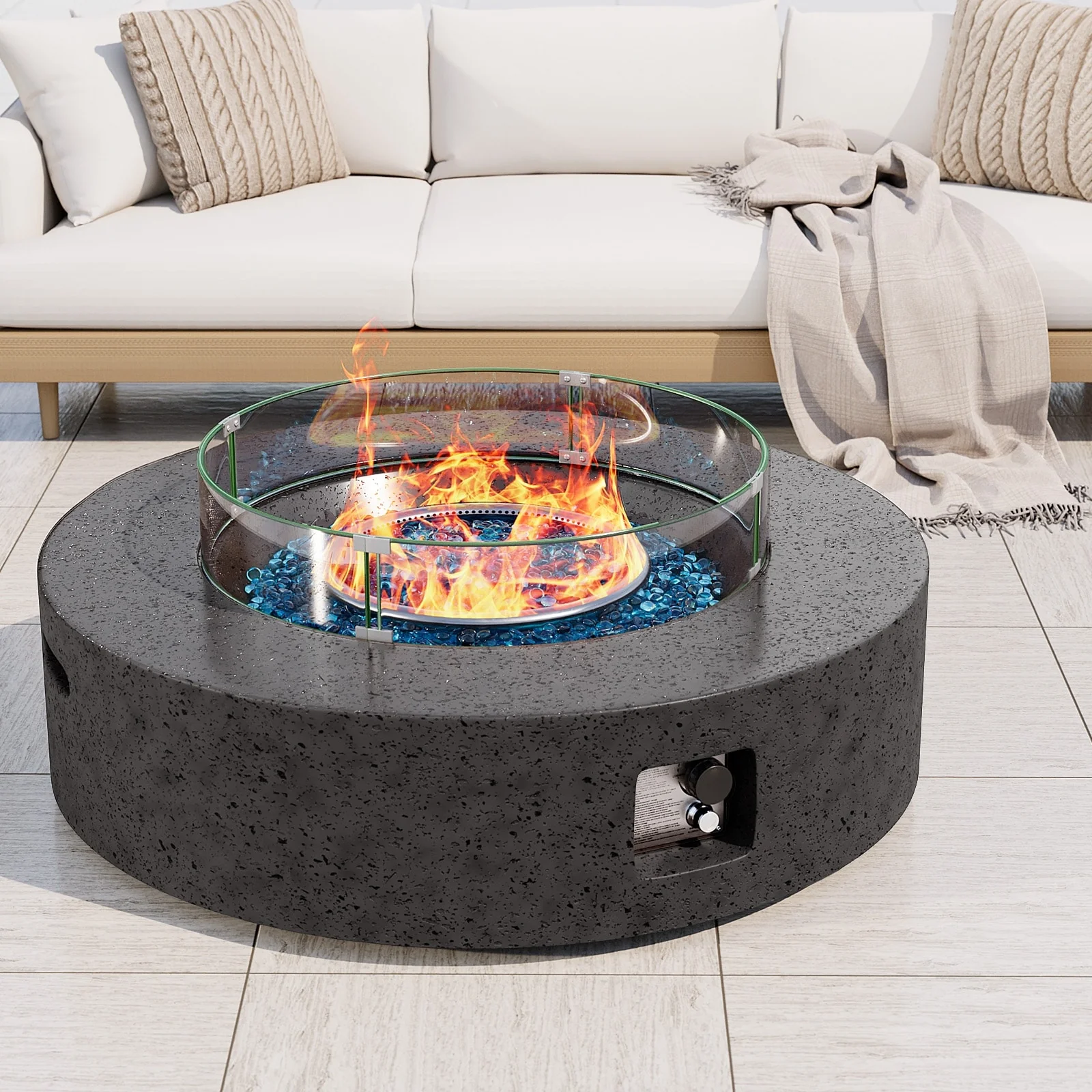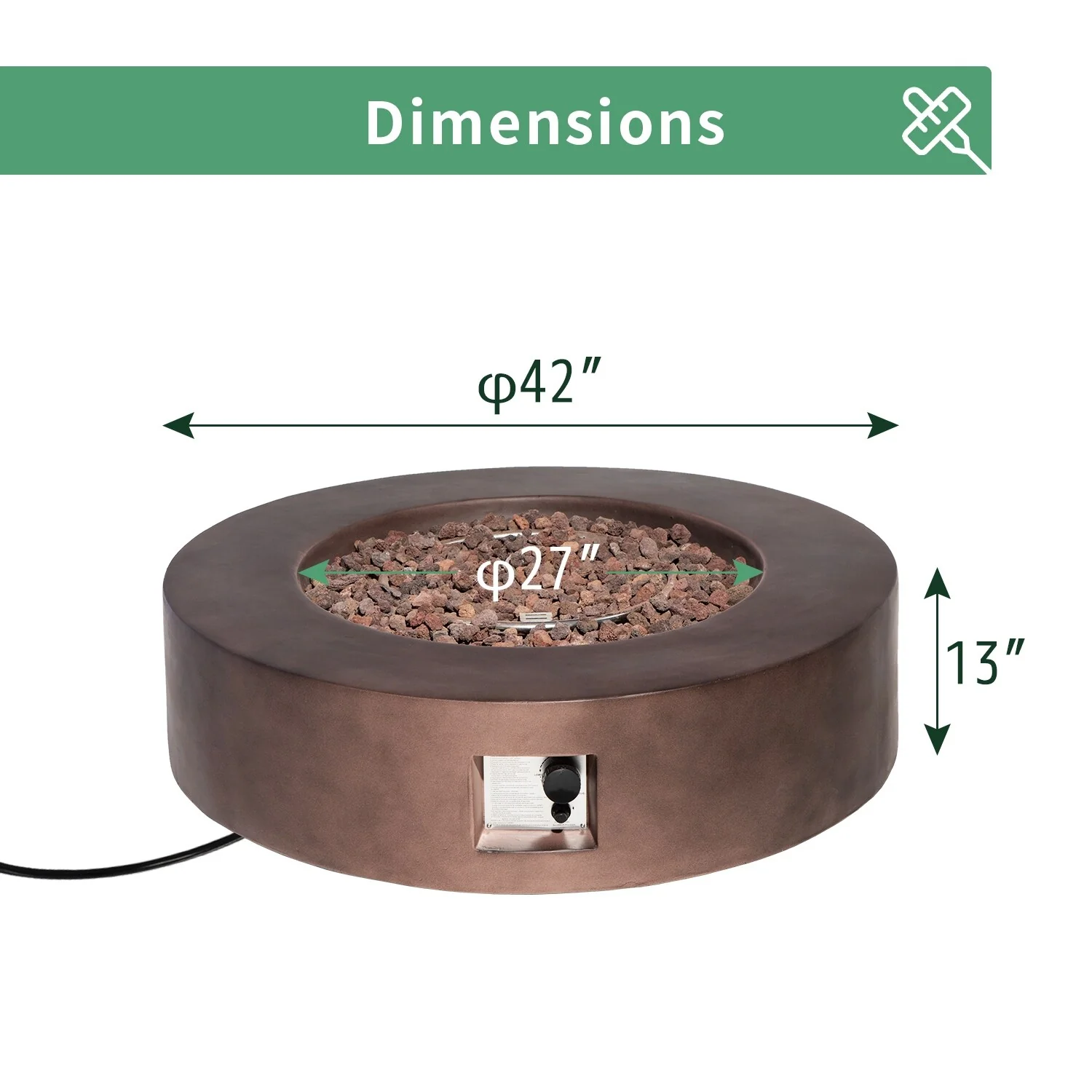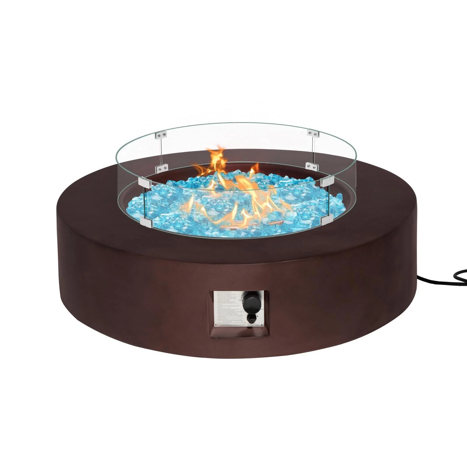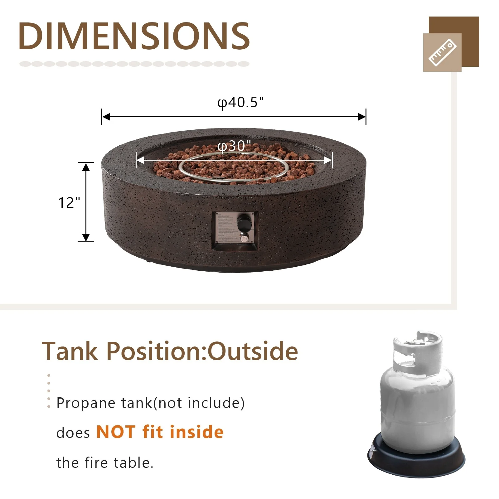 Fire & Flare 35"W Round 50K BTU Outdoor Propane Fire Pit Table with Lava Rocks