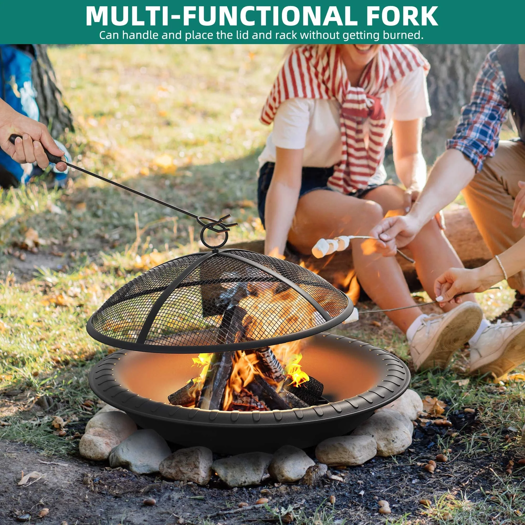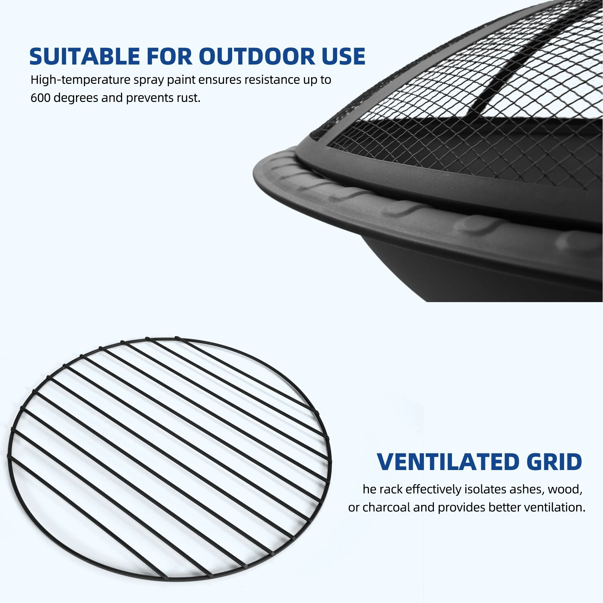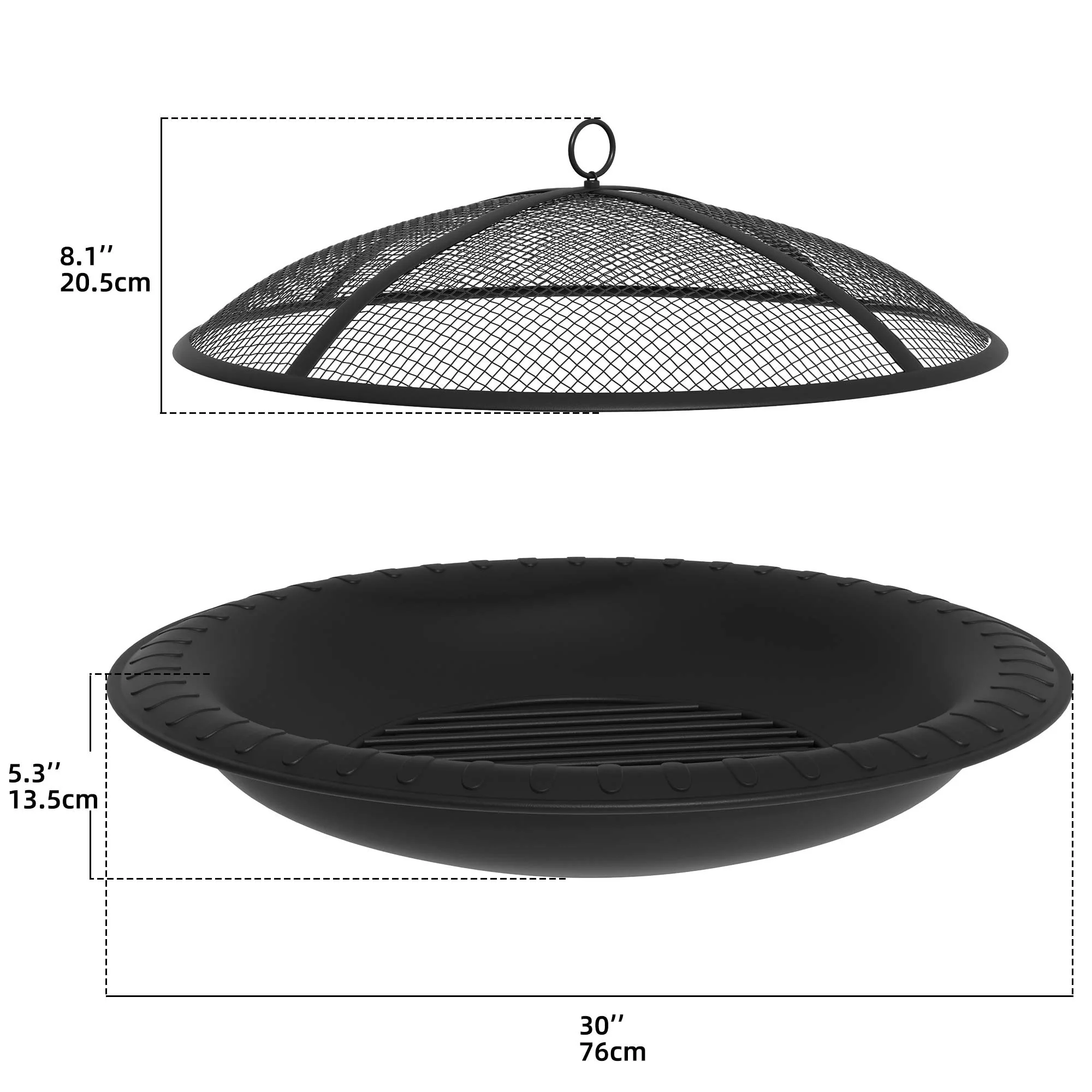Moasis 23"/25"/30" Wood-Burning Fire Pit Bowl with Spark Screen and Poker