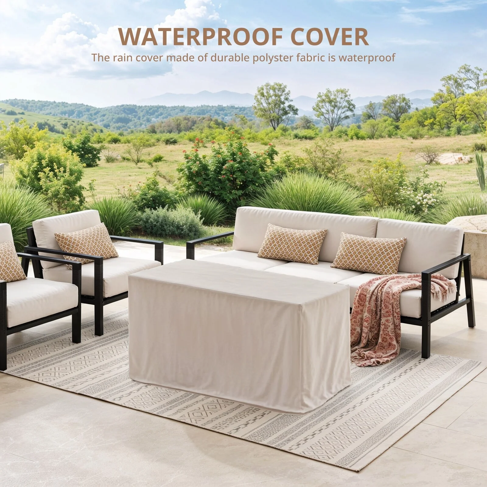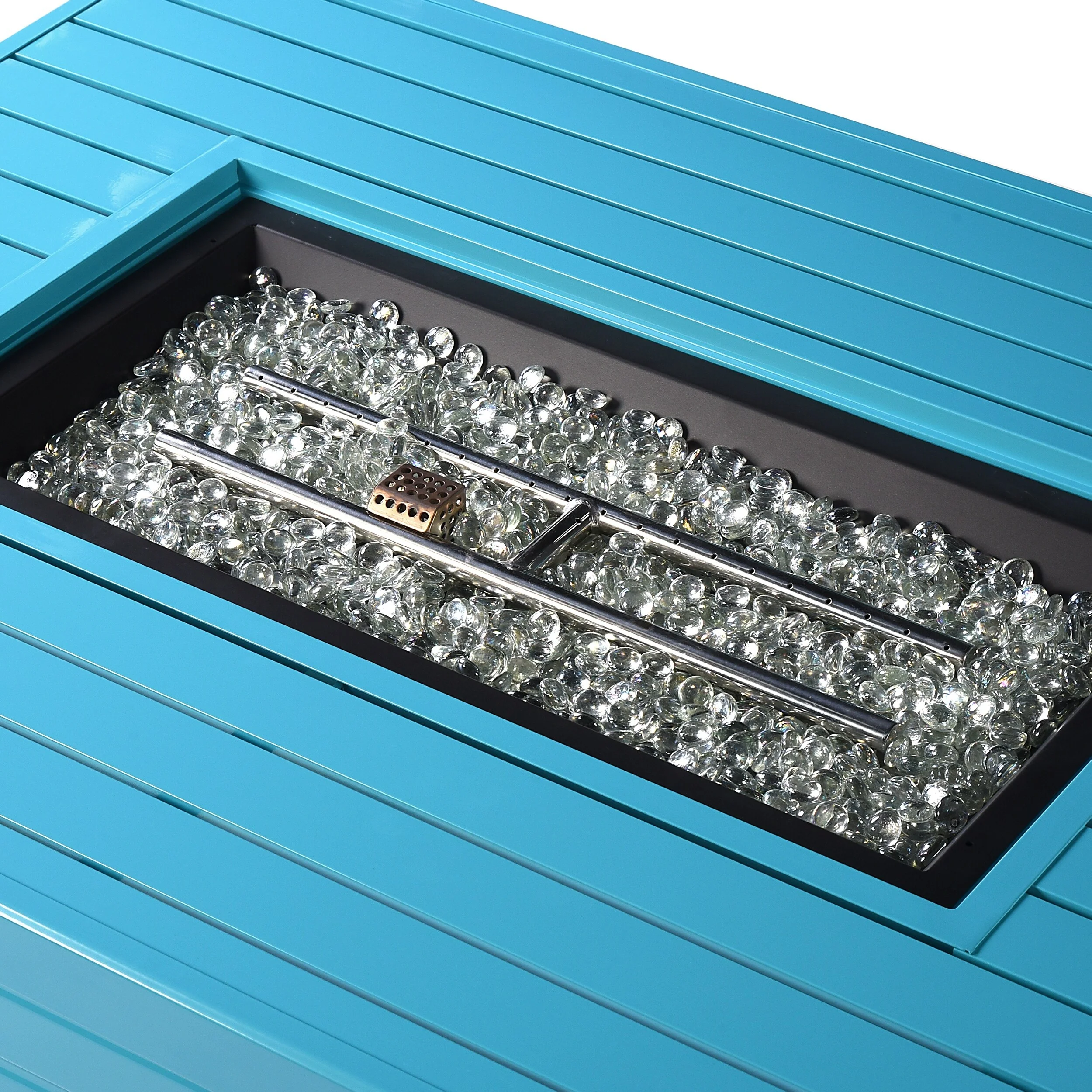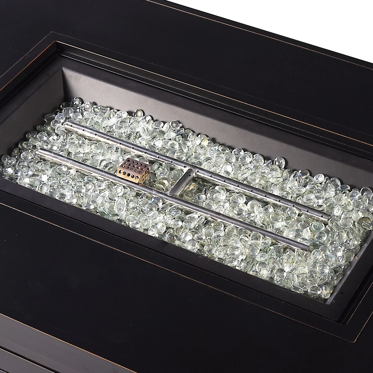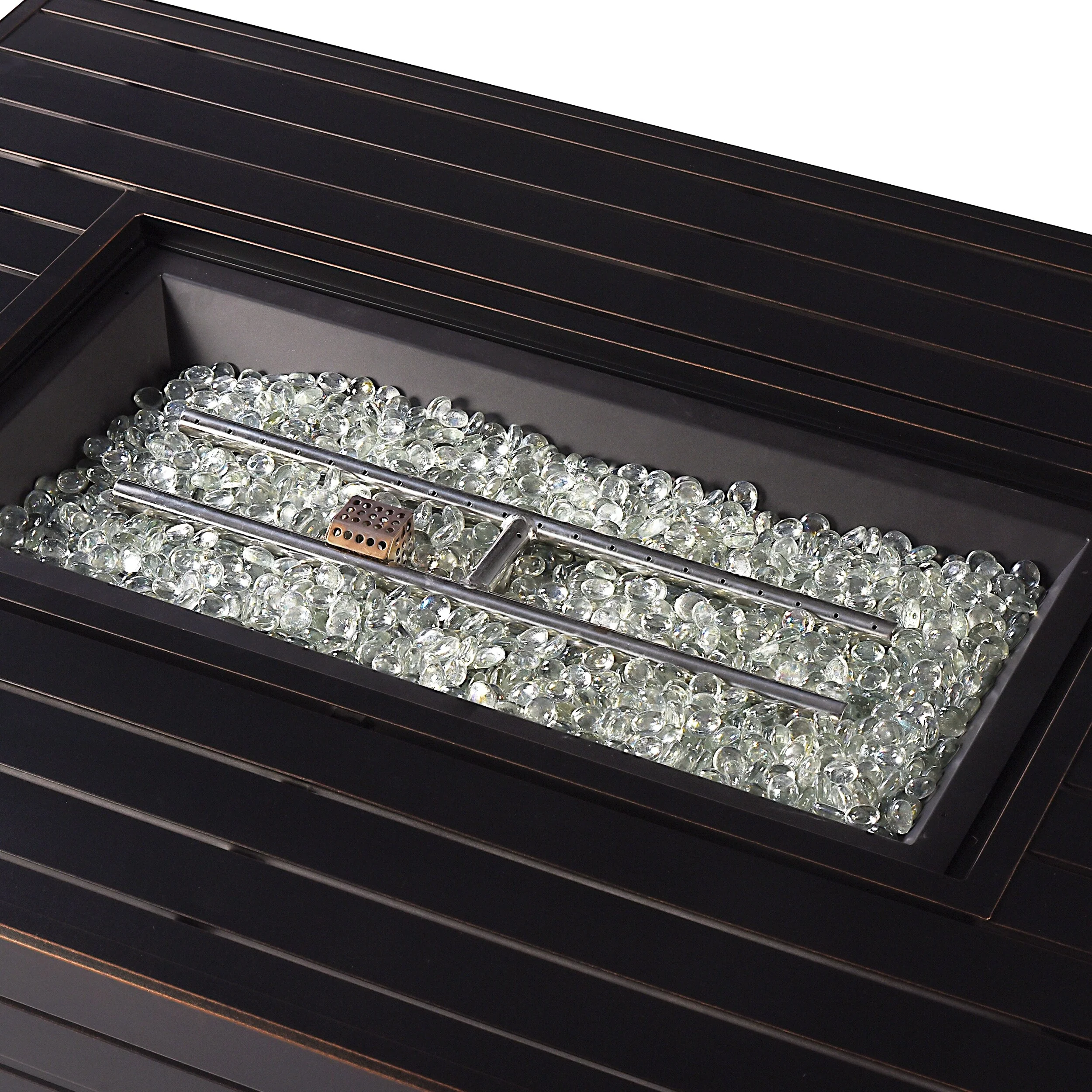 Rectangular 48 in. x 36 in. Aluminum Propane Fire Pit Table, Glass Beads, Two Covers, Lid, 57,000 BTUs - N/A