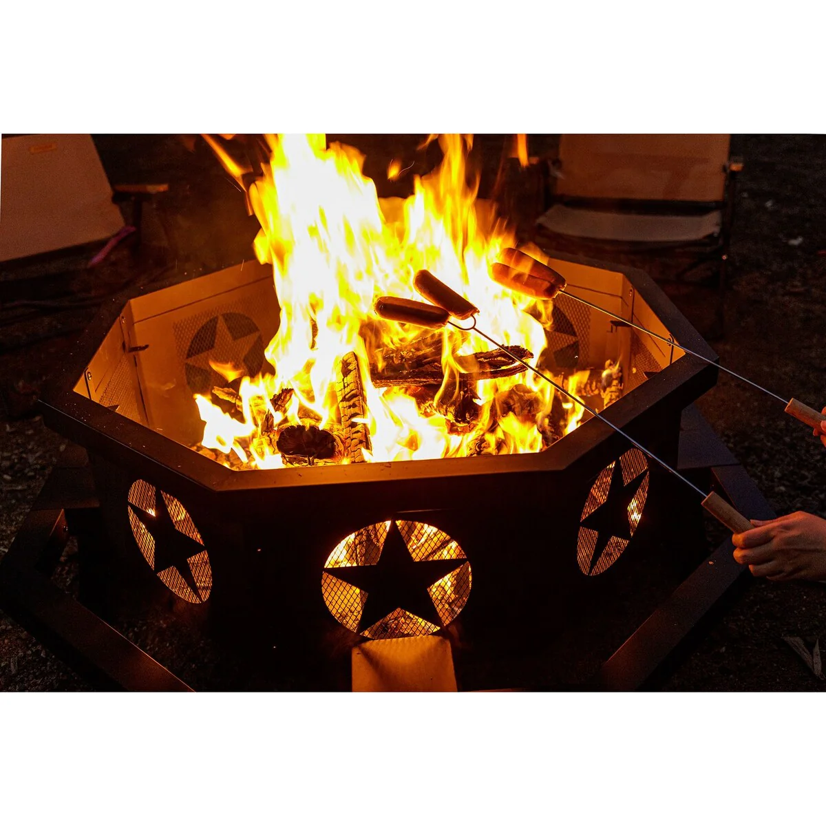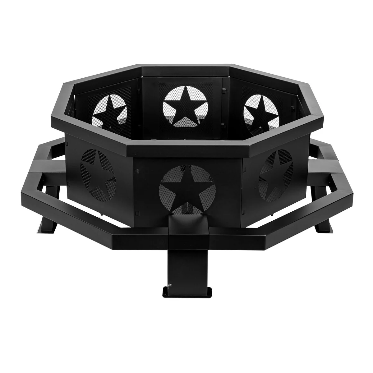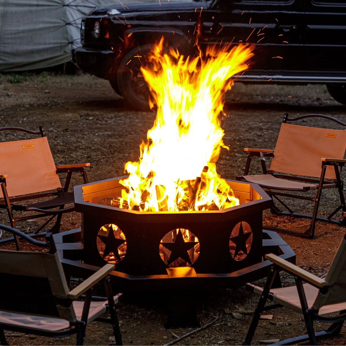 Lava Star 42 Inch Octagon Wood Burning Fire Pit, Metal Firepit Black