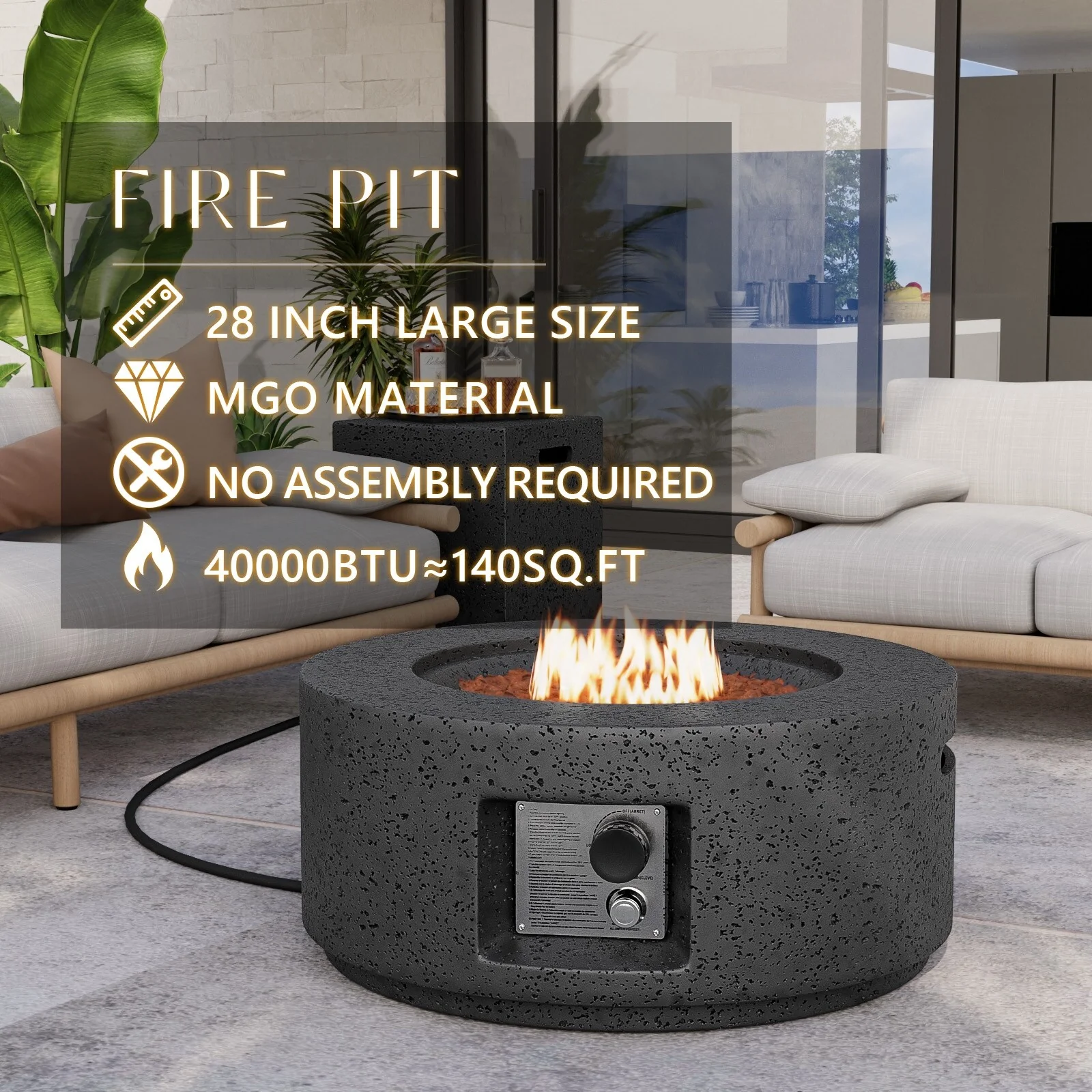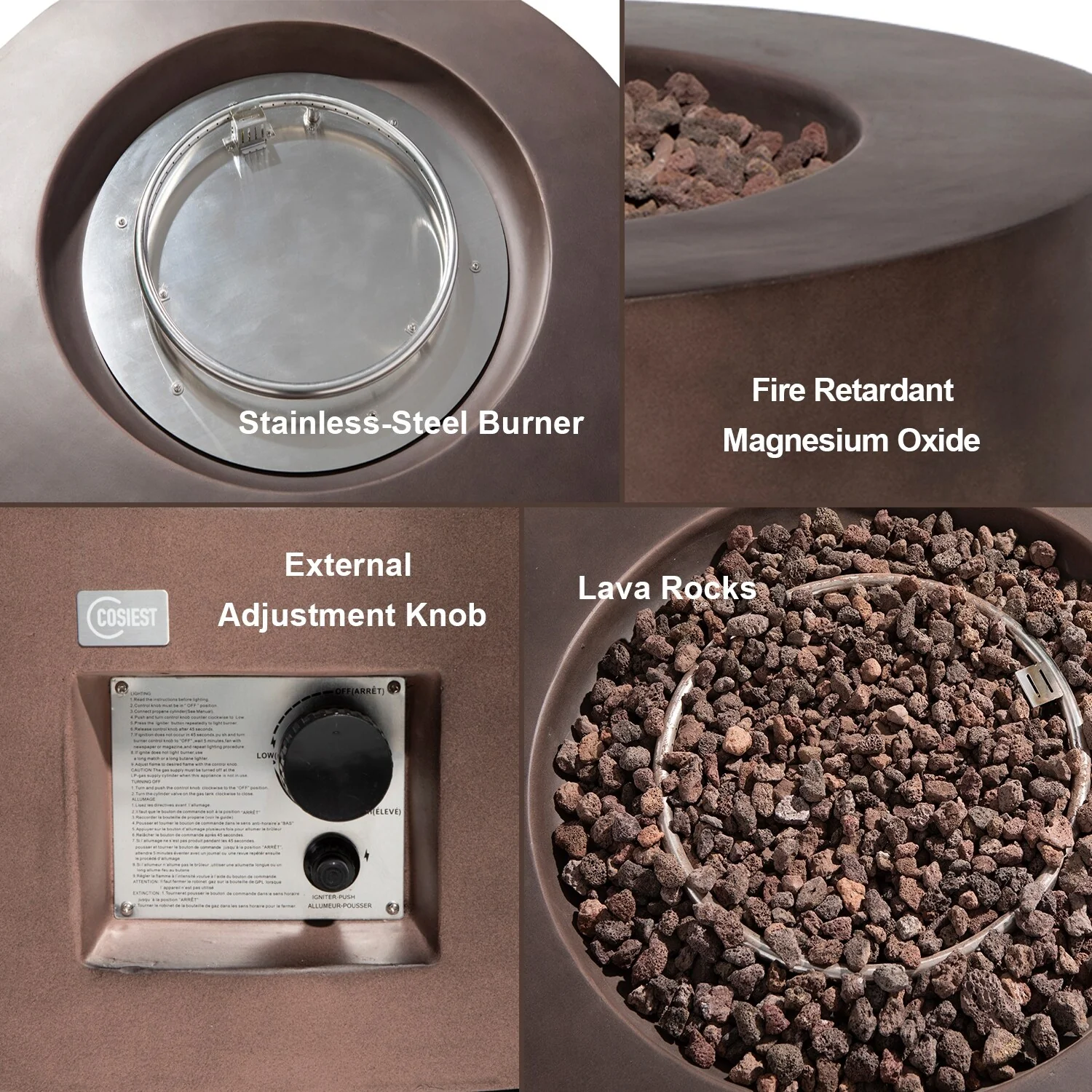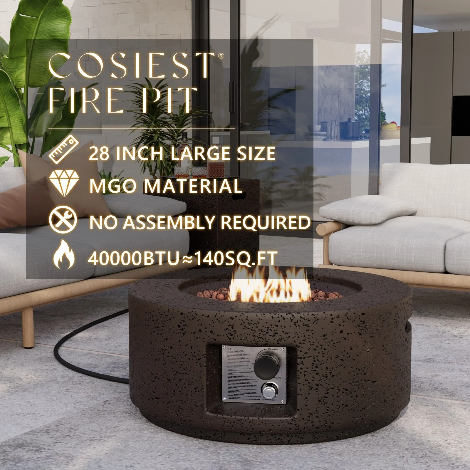 COSIEST Outdoor Patio Round Propane Firepit, 40000BTU - 28" W x 28" D x 12" H