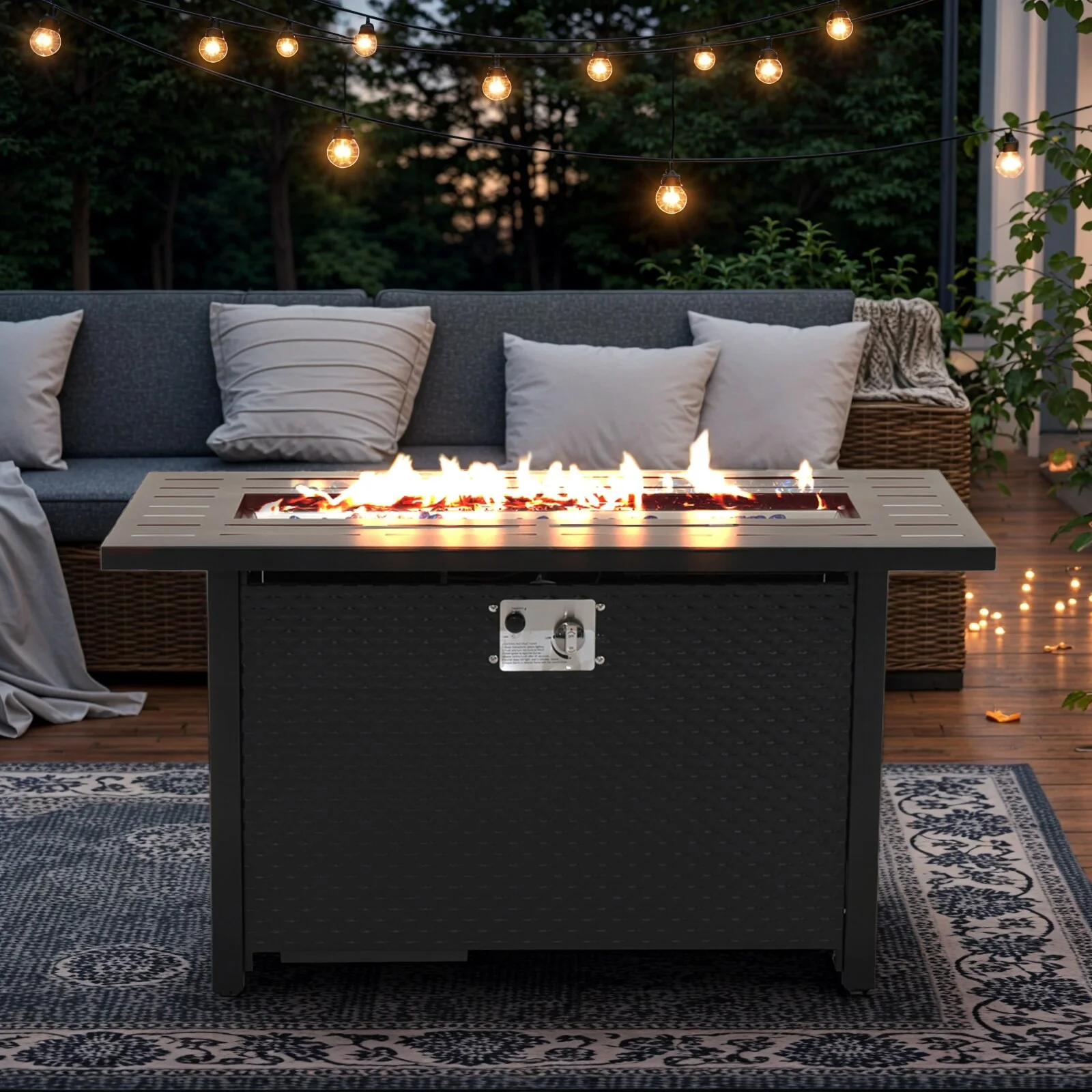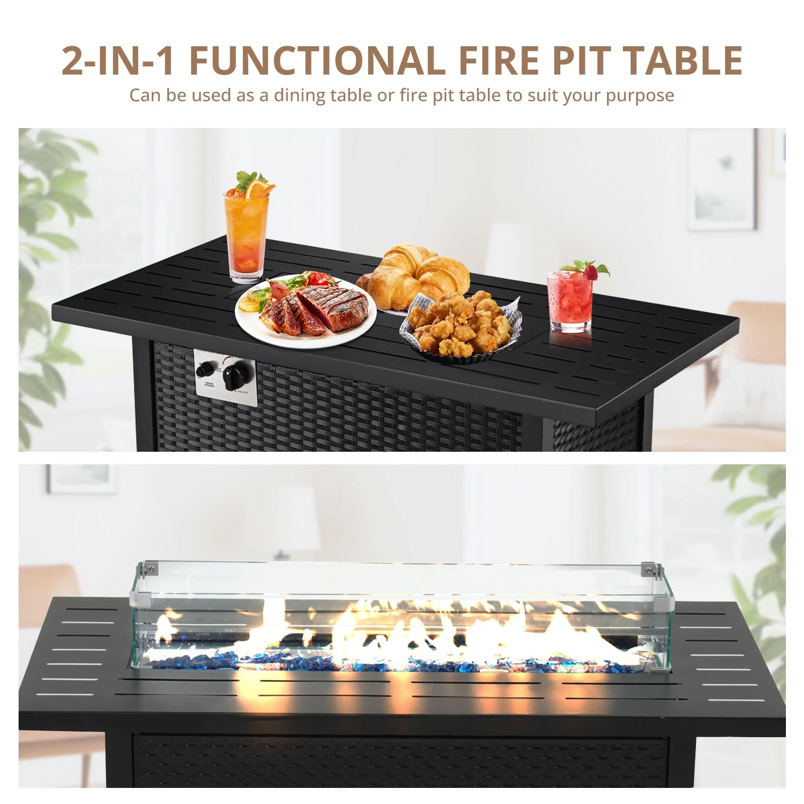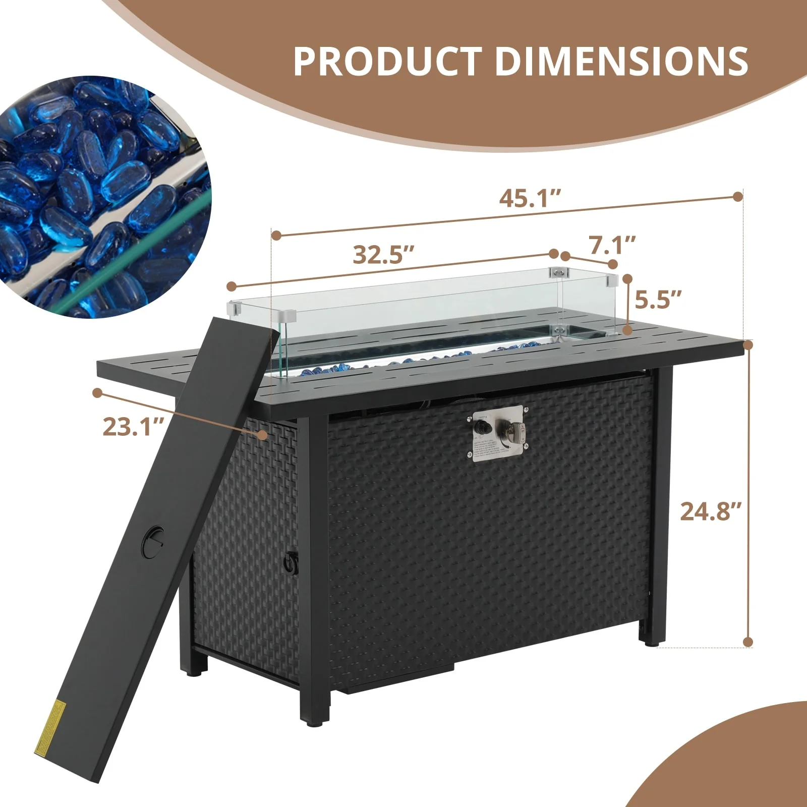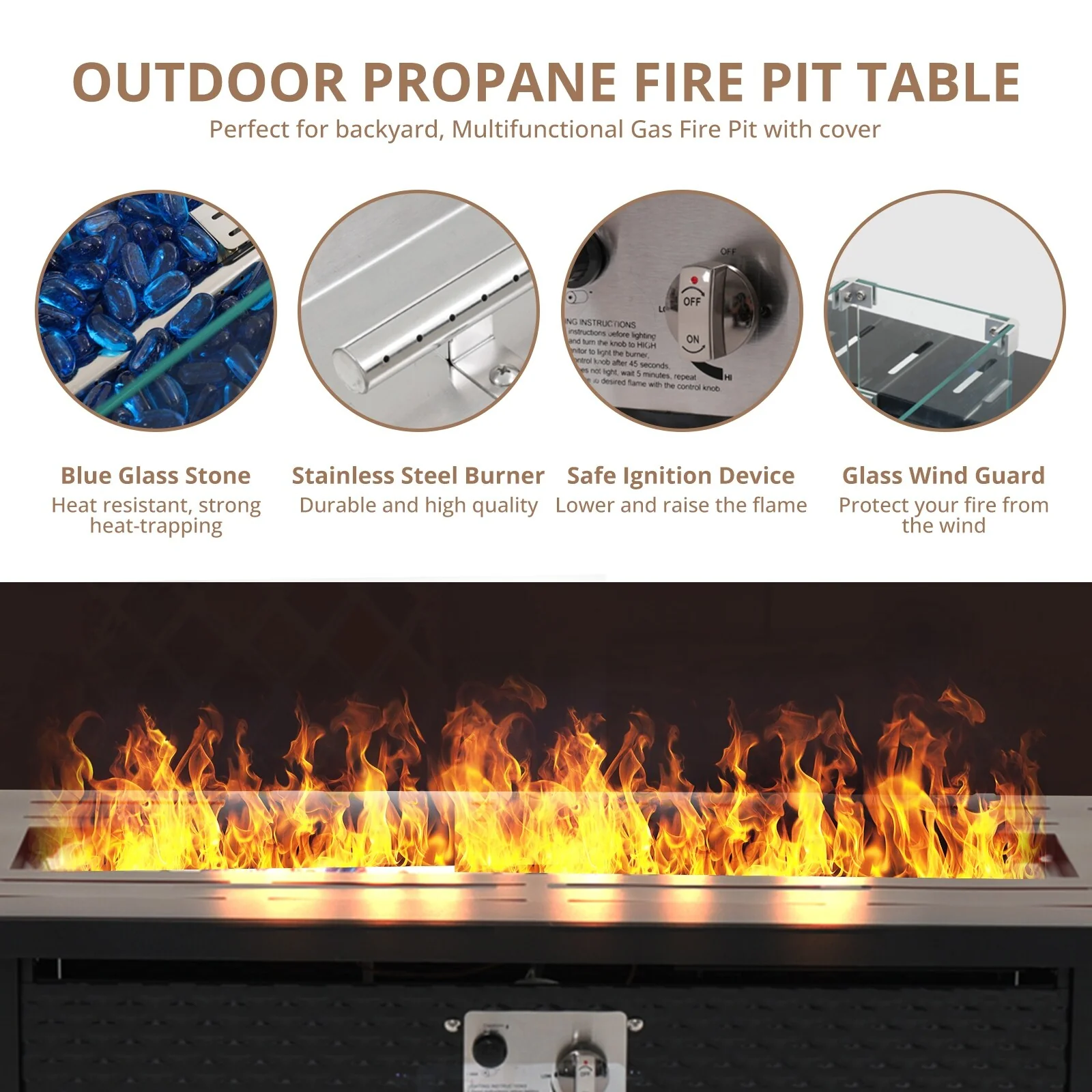 Outdoor 50000 BTU Rectangular 45�� Propane Fire Pit Table with Glass Wind Guard for Patio, Deck, Backyard, Black - 45 in