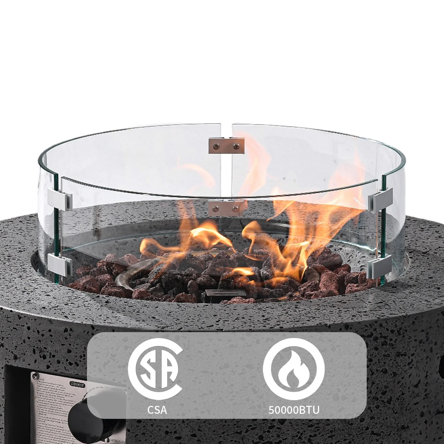 COSIEST 16" Outdoor Column Propane Fire Pit with Glass Wind Guard