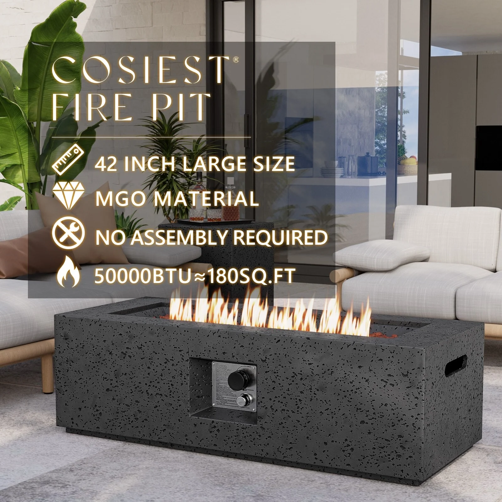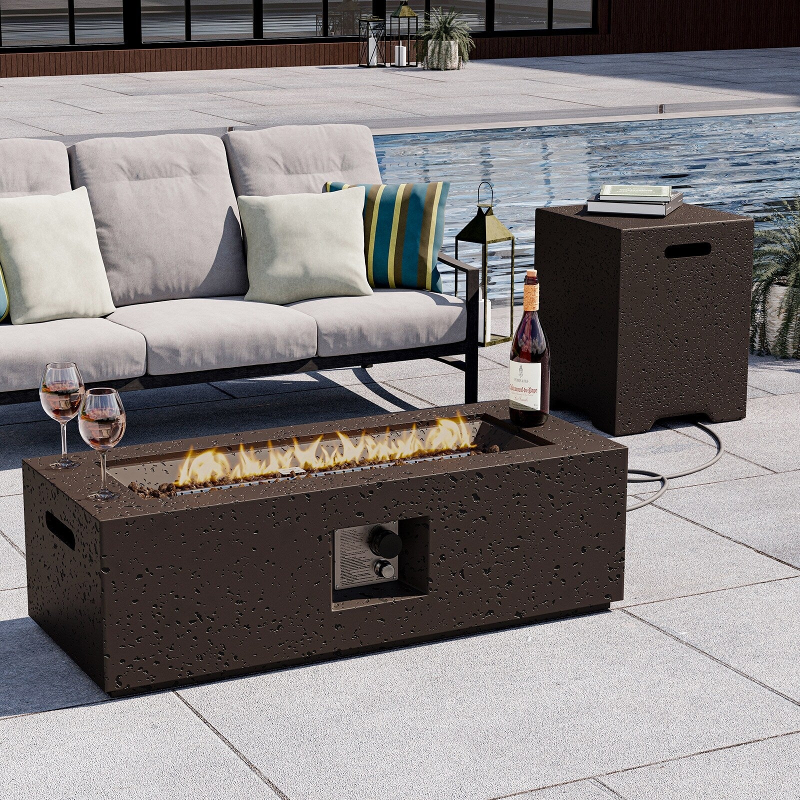 COSIEST Outdoor Patio Rectangle Fire Pit with Tank Cover Table - 42" W x 17" L x 13" H