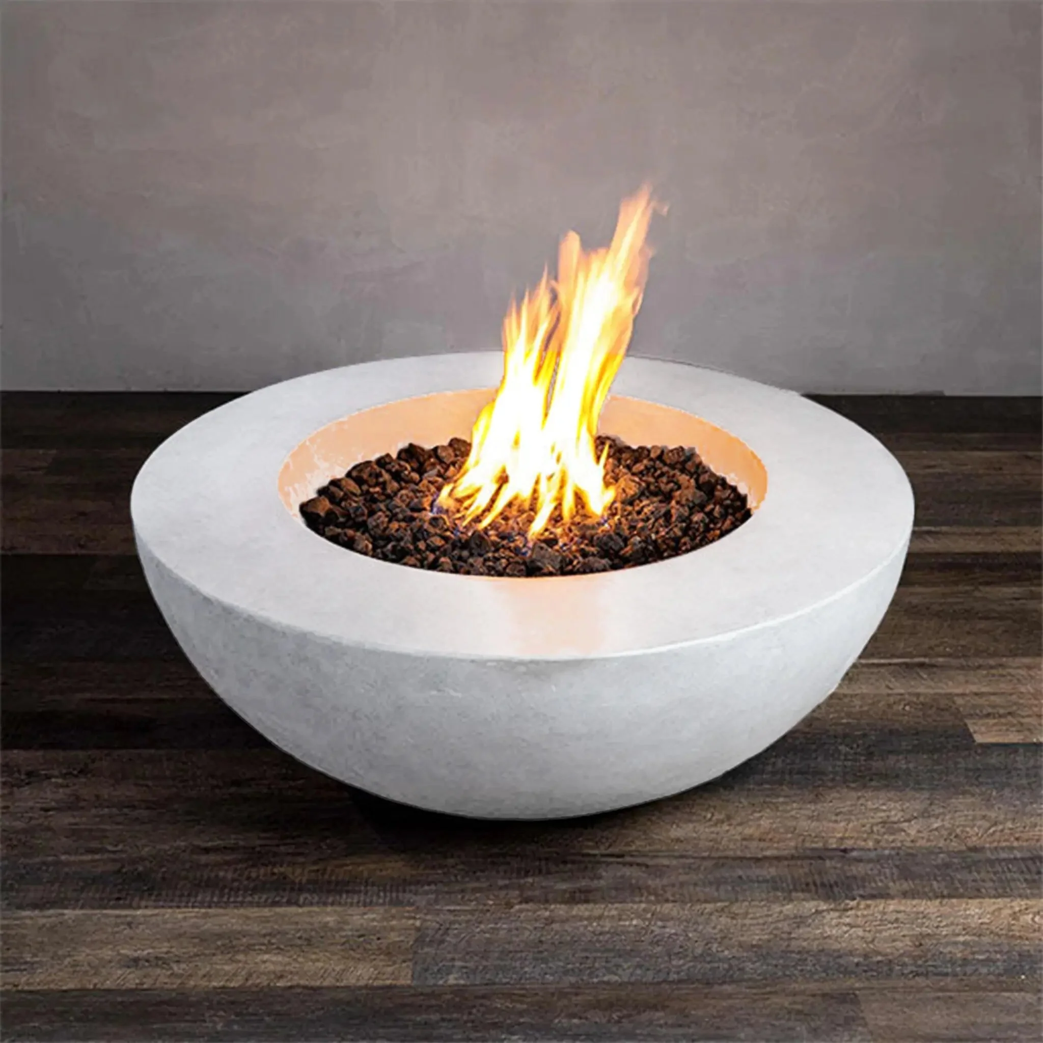 Kante 25 Inch Wide Round Concrete and Metal Outdoor Eco-Friendly Smokeless 50,000 BTU Propane Gas Fire Pit Bowl Table