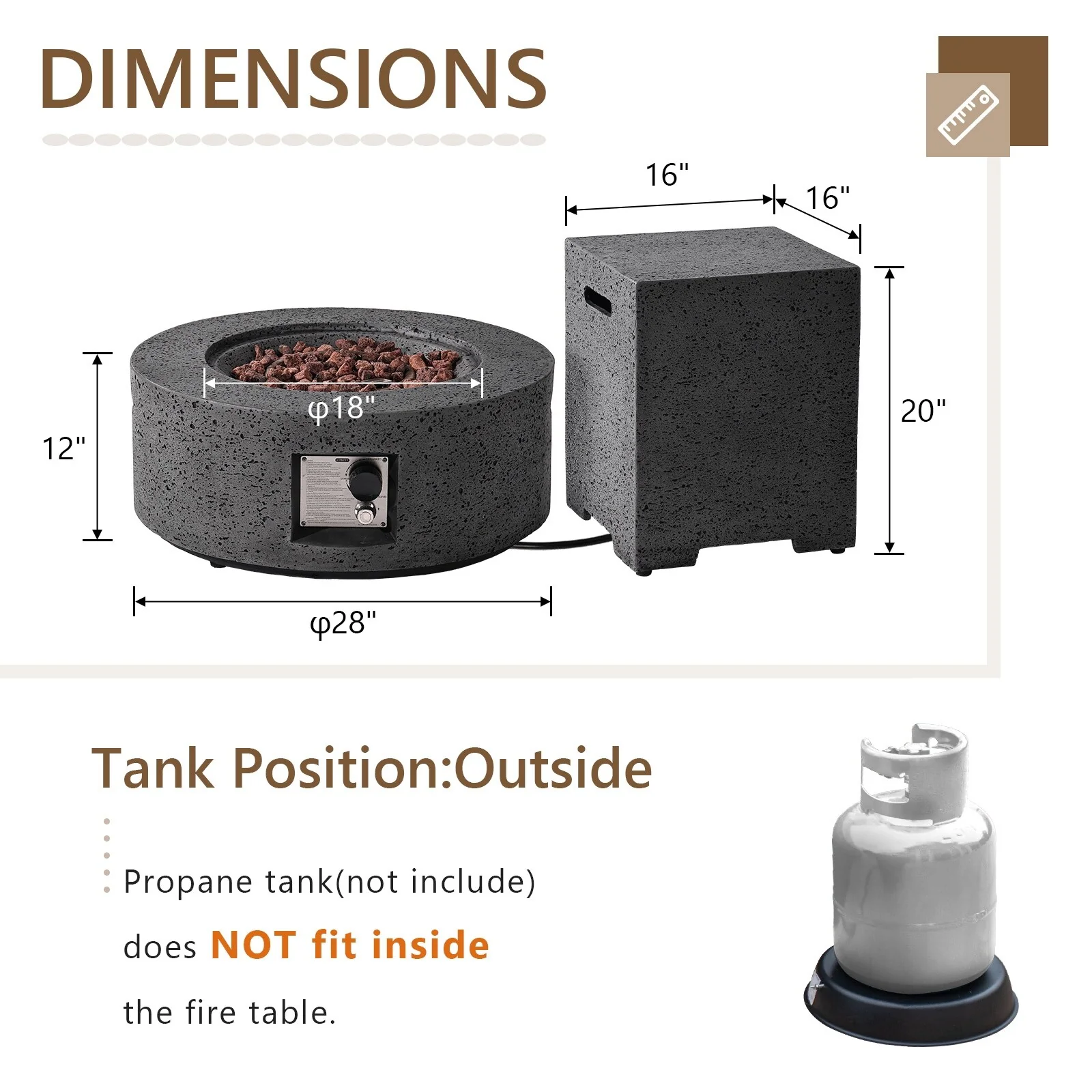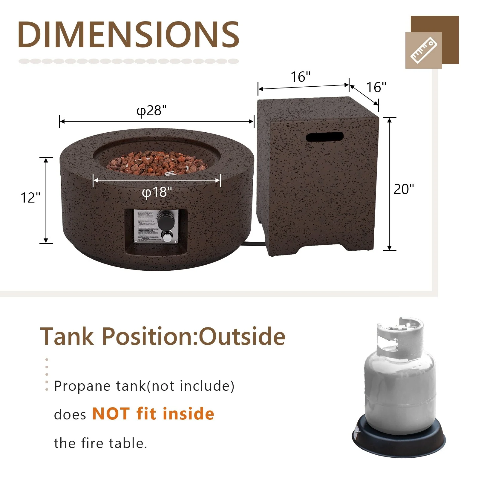 COSIEST 2-Piece Outdoor Round Firepit with Tank Cover Table - 28" W x 28" L x 12" H