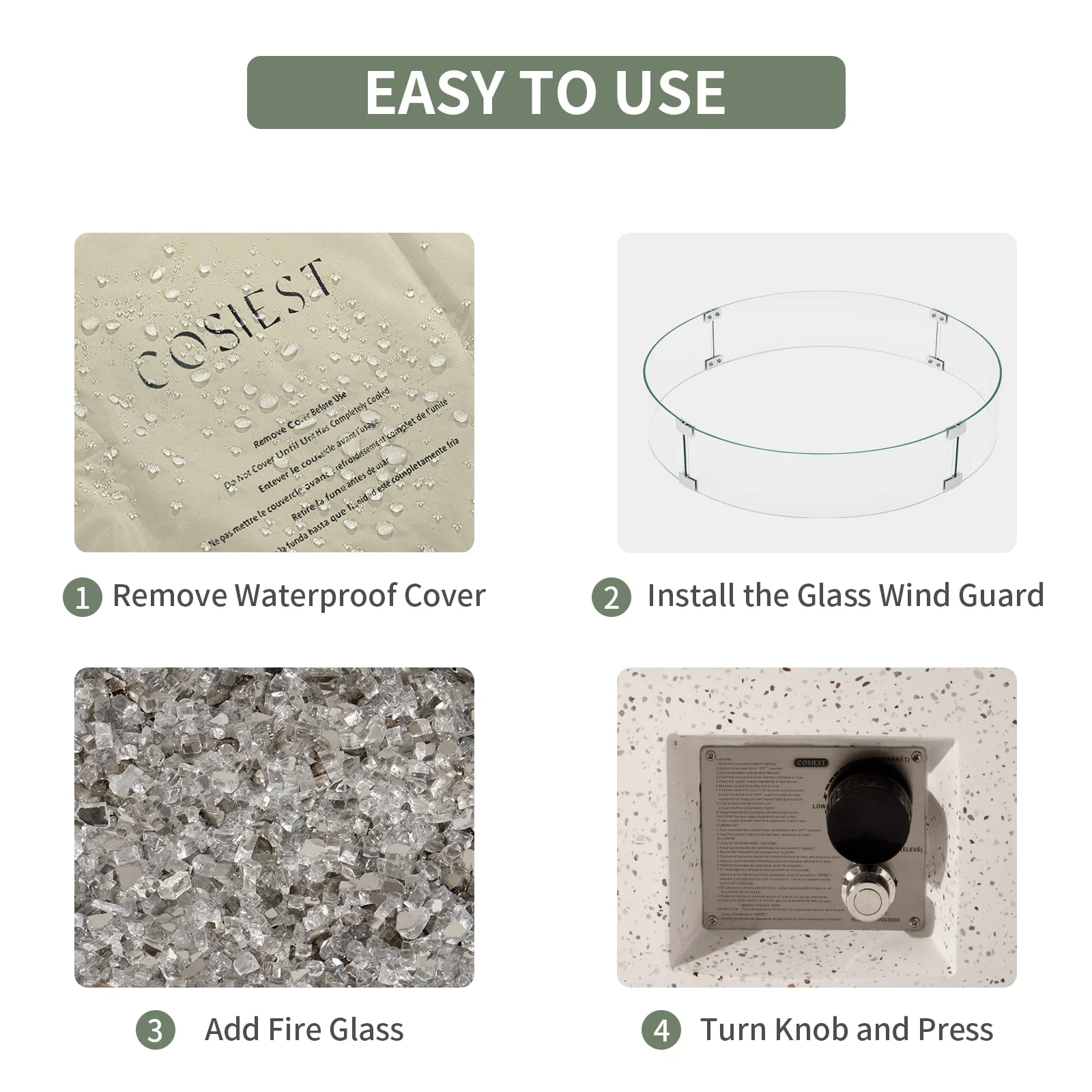 COSIEST Outdoor White Terrazzo Propane Fire Pit Table