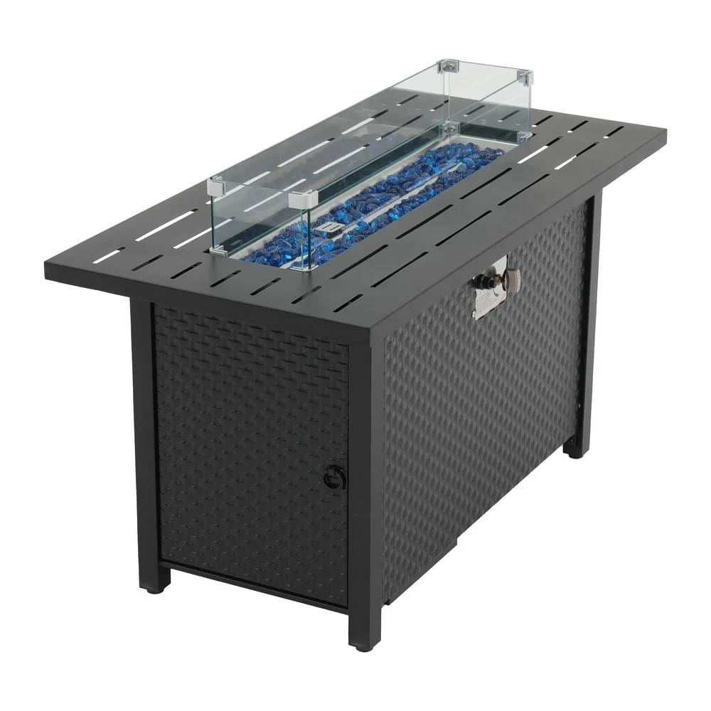 44 inch Outdoor Rectangular Rattan Fire Pit Table With Wind Guard