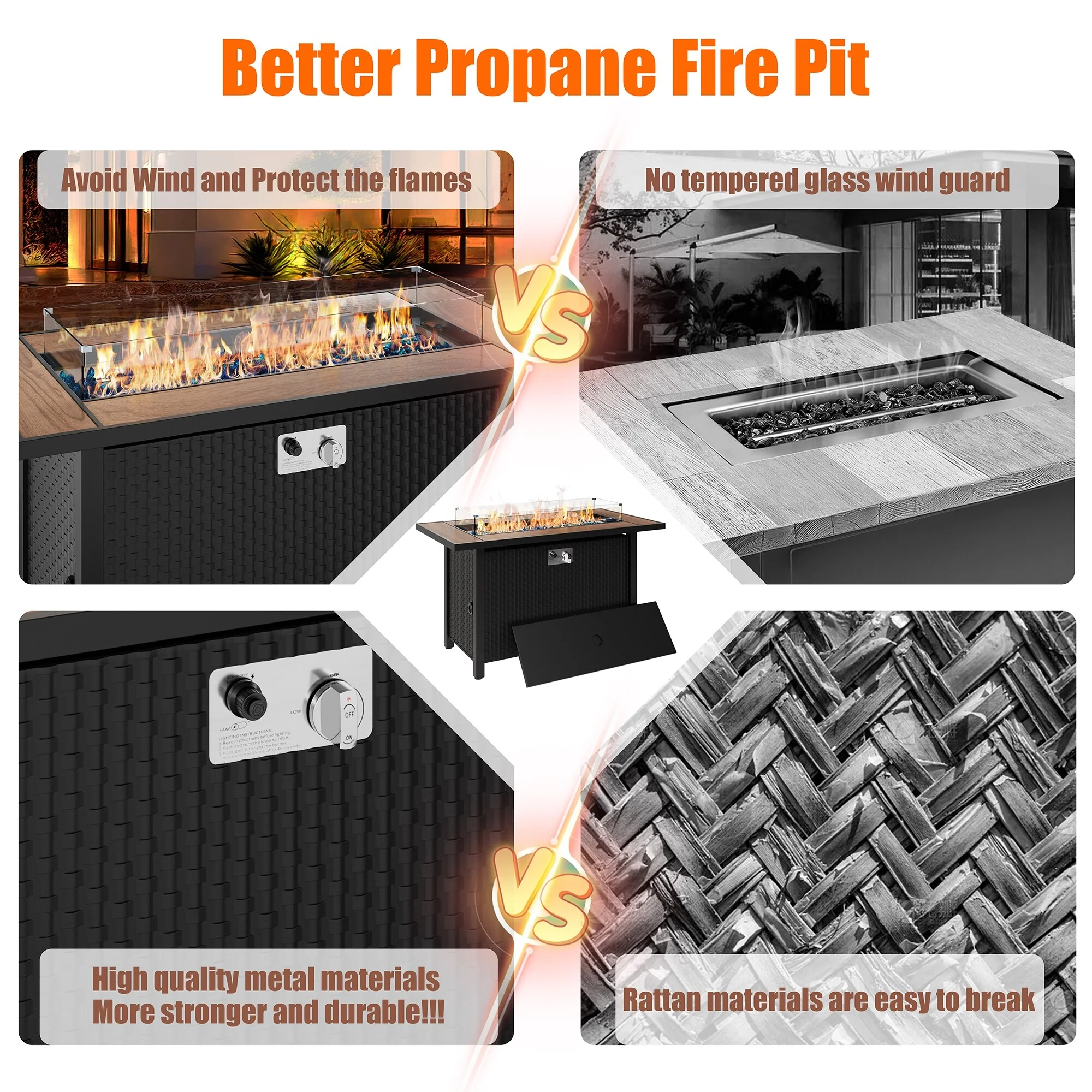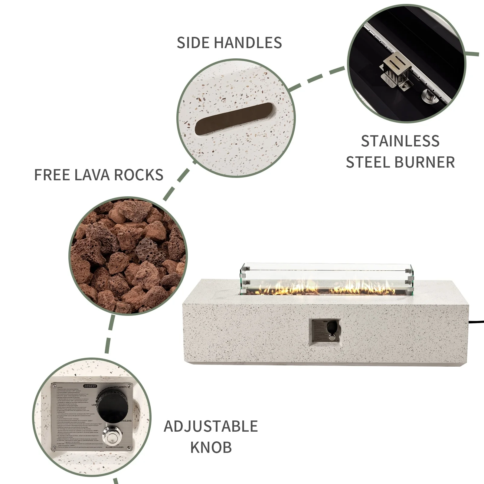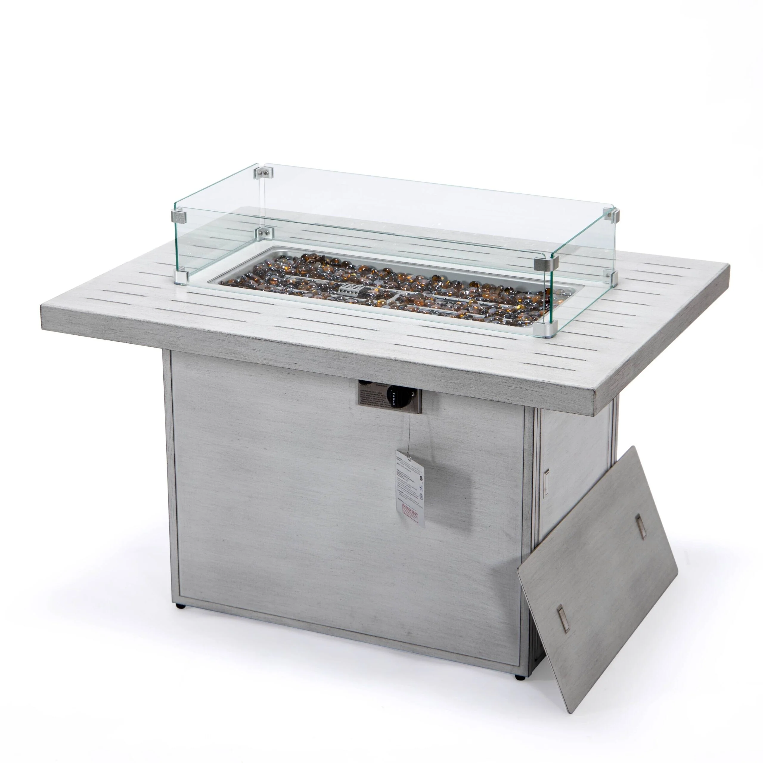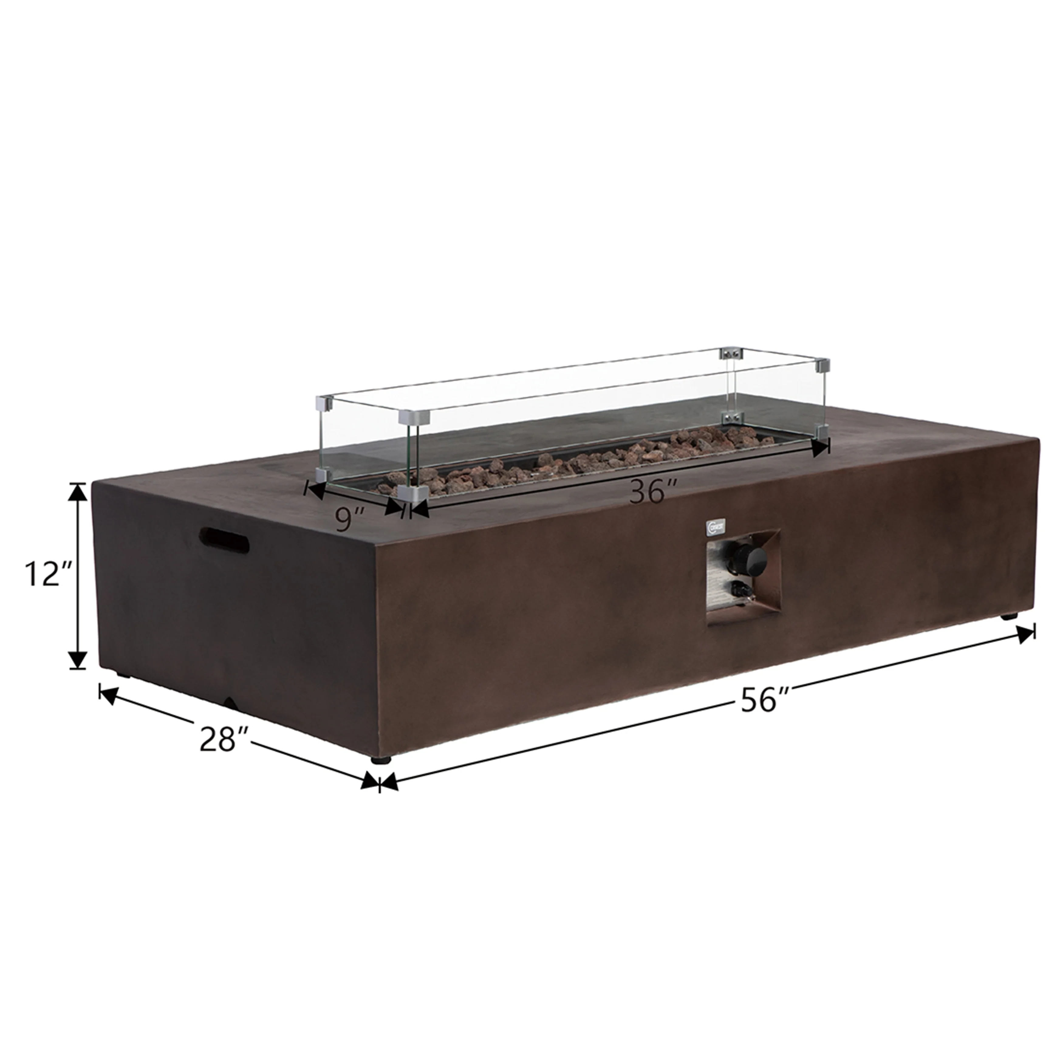 COSIEST Outdoor Rectangular Propane Fire Pit with Wind Guard, Tank Cover Table