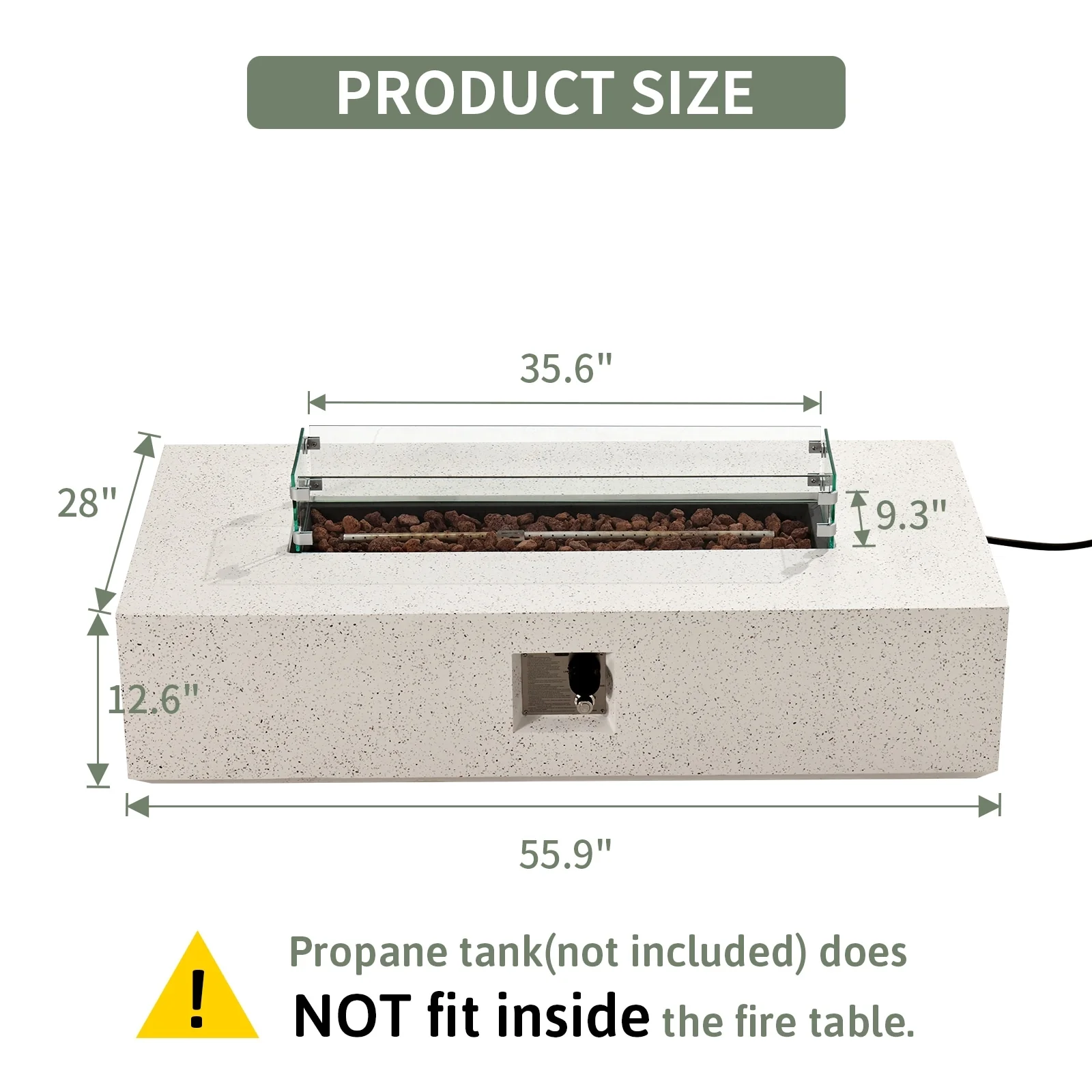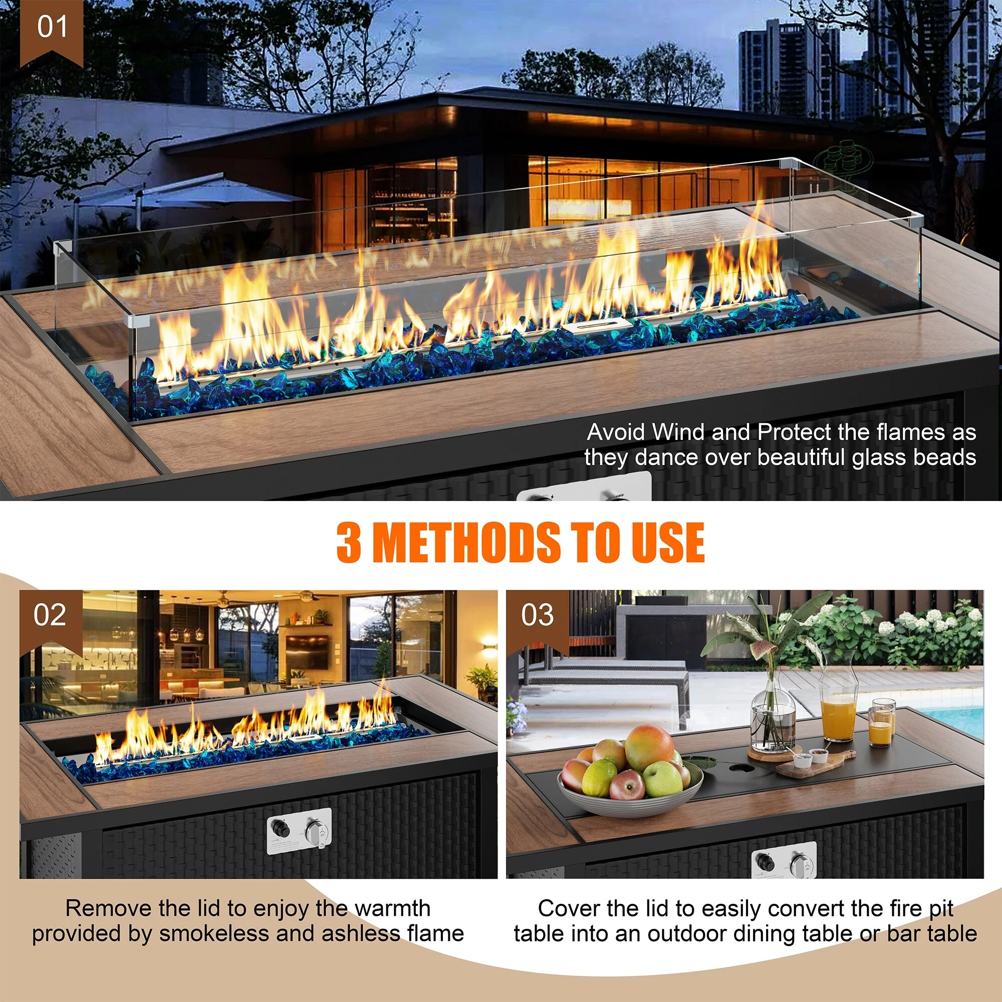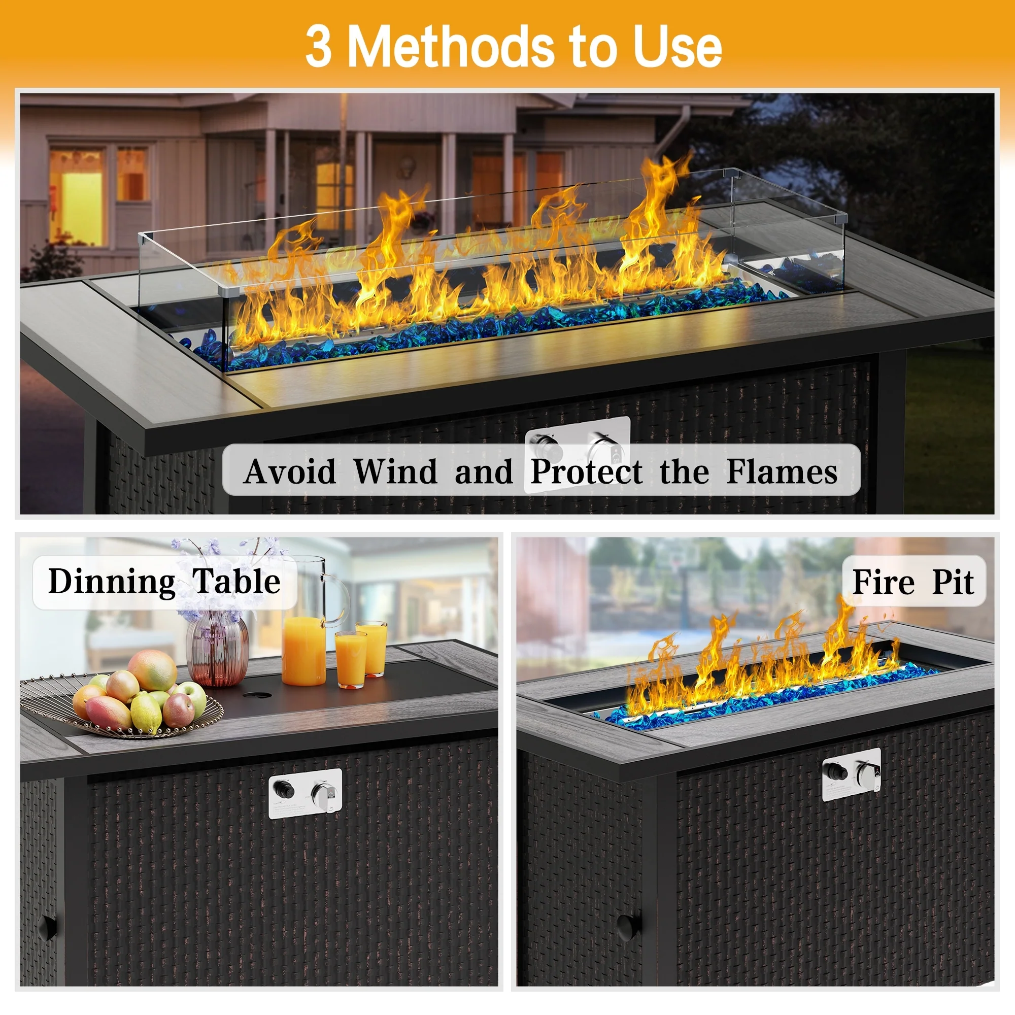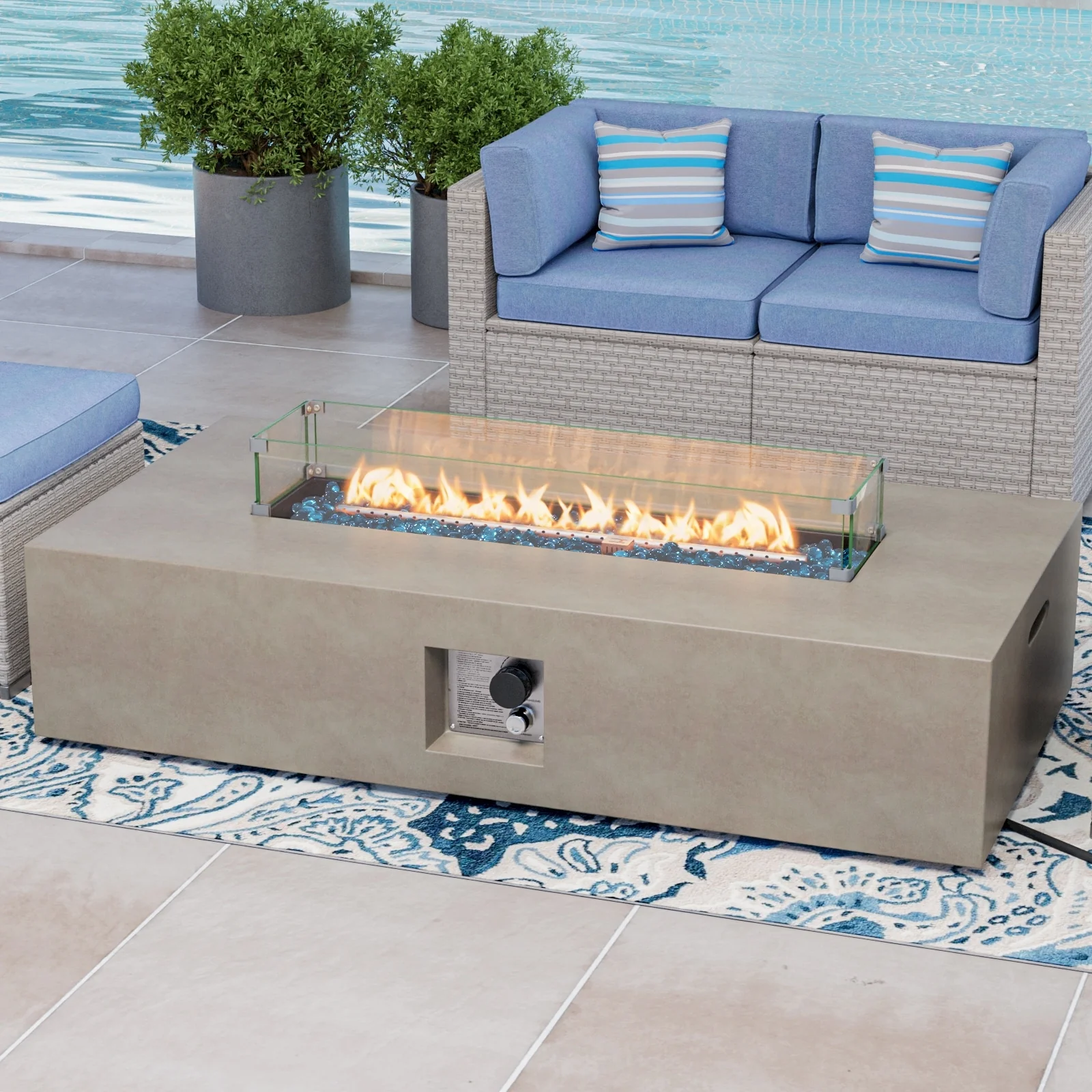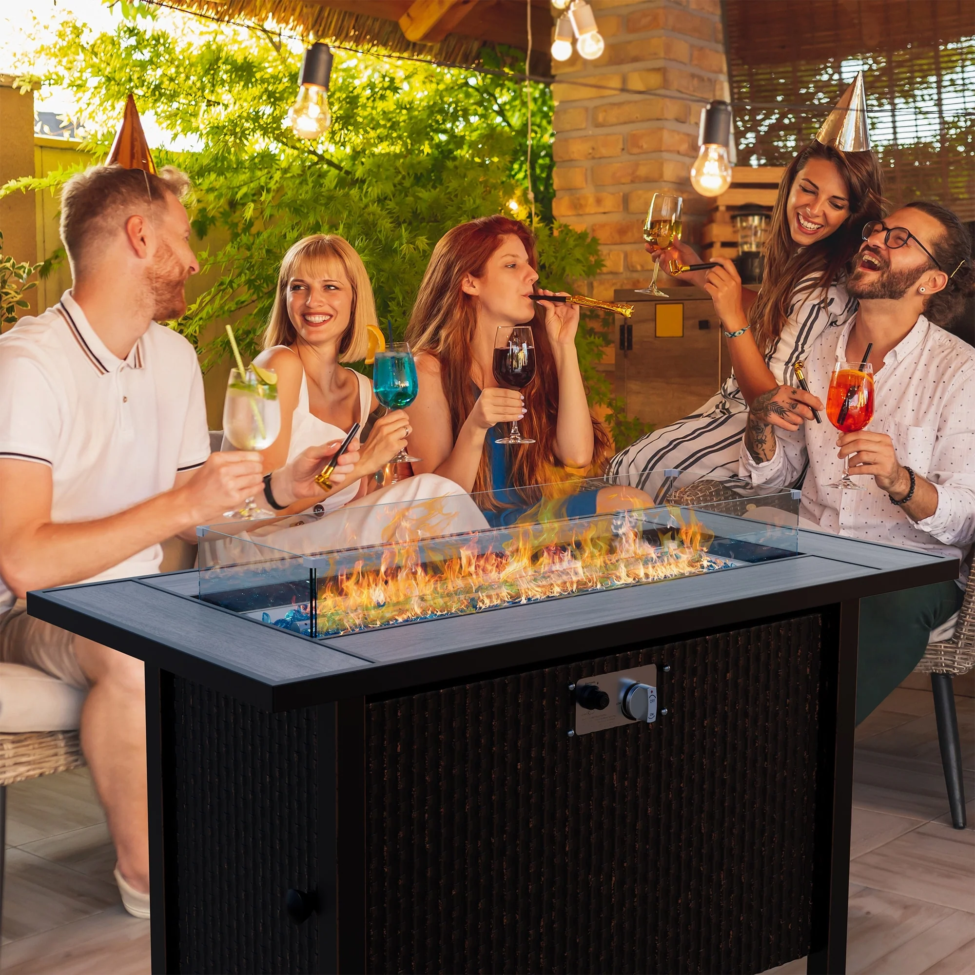 COSIEST Outdoor Rectangular Propane Fire Pit with Wind Guard, Tank Cover Table