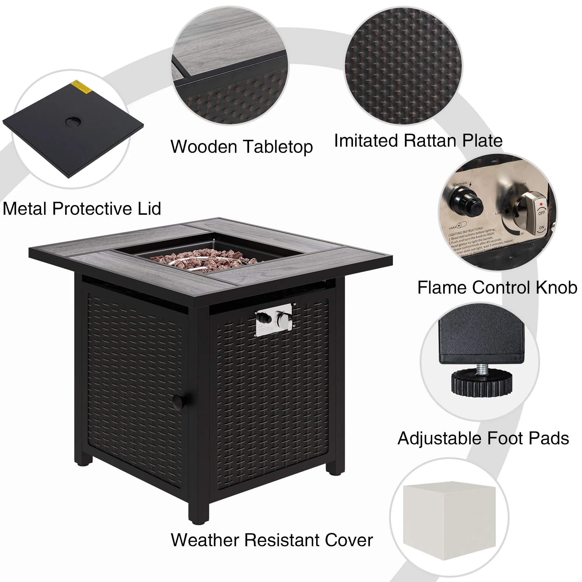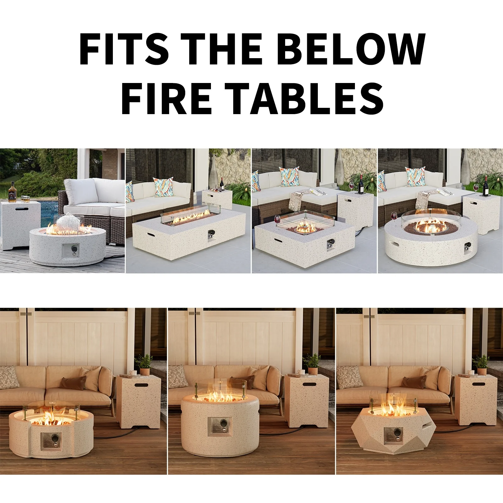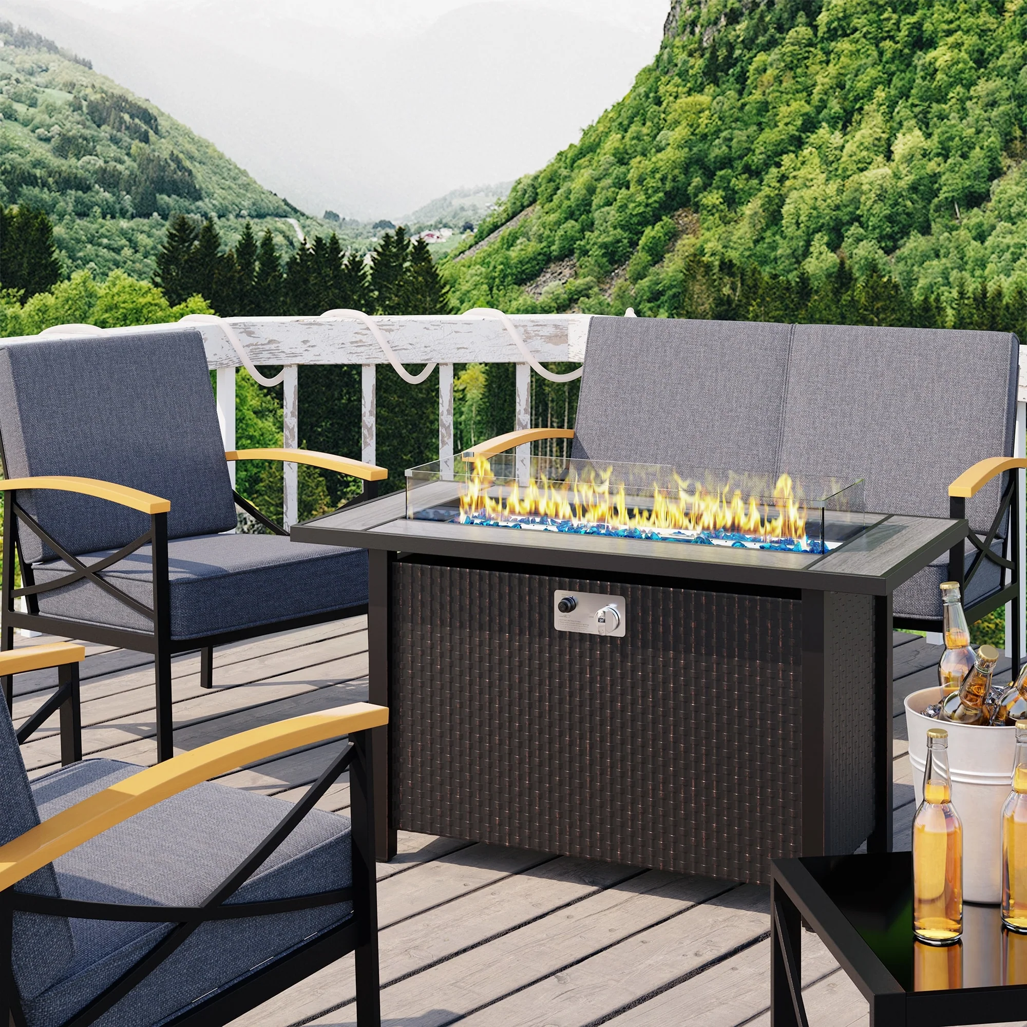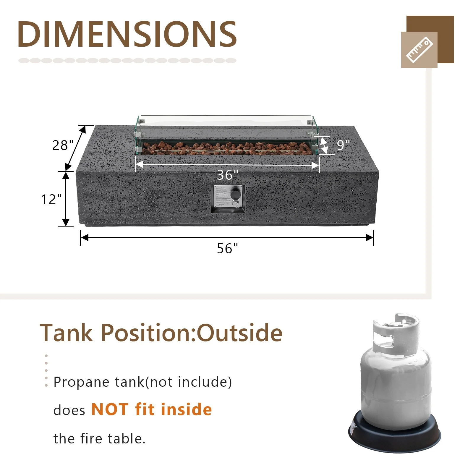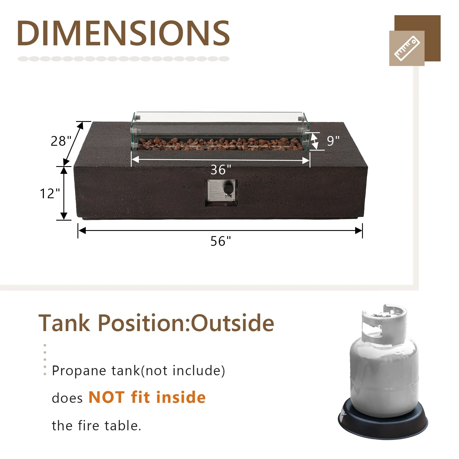COSIEST Outdoor Rectangular Propane Fire Pit with Wind Guard, Tank Cover Table