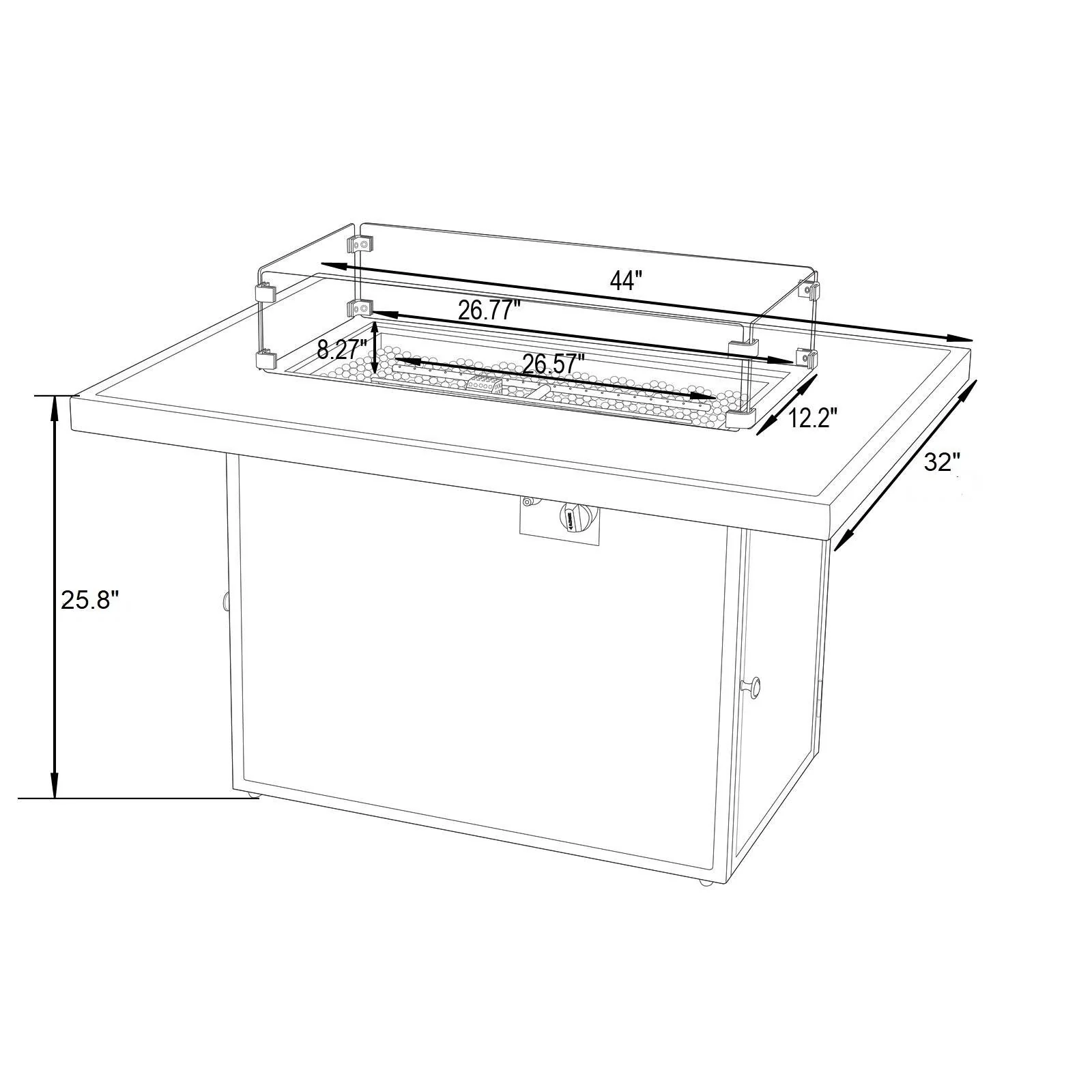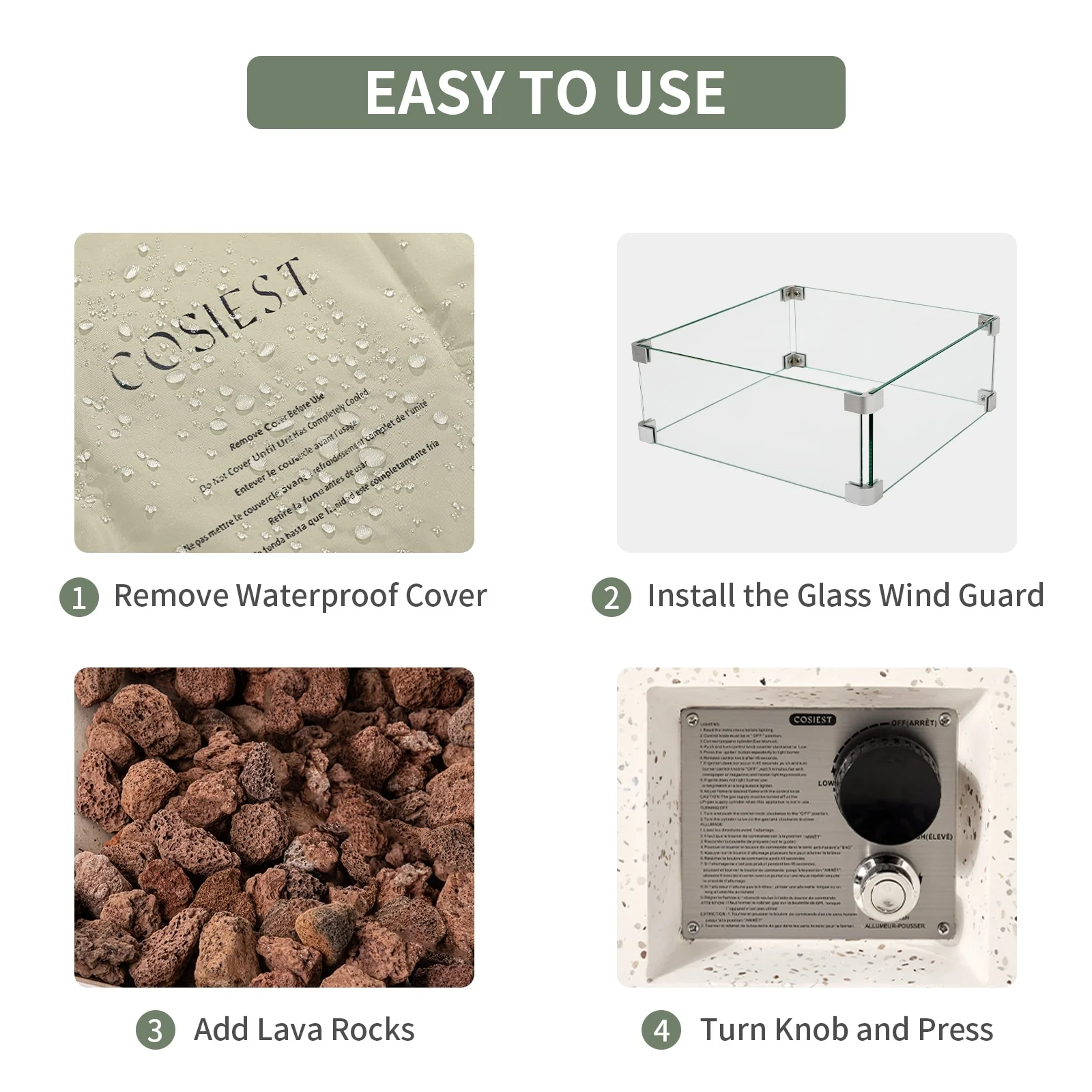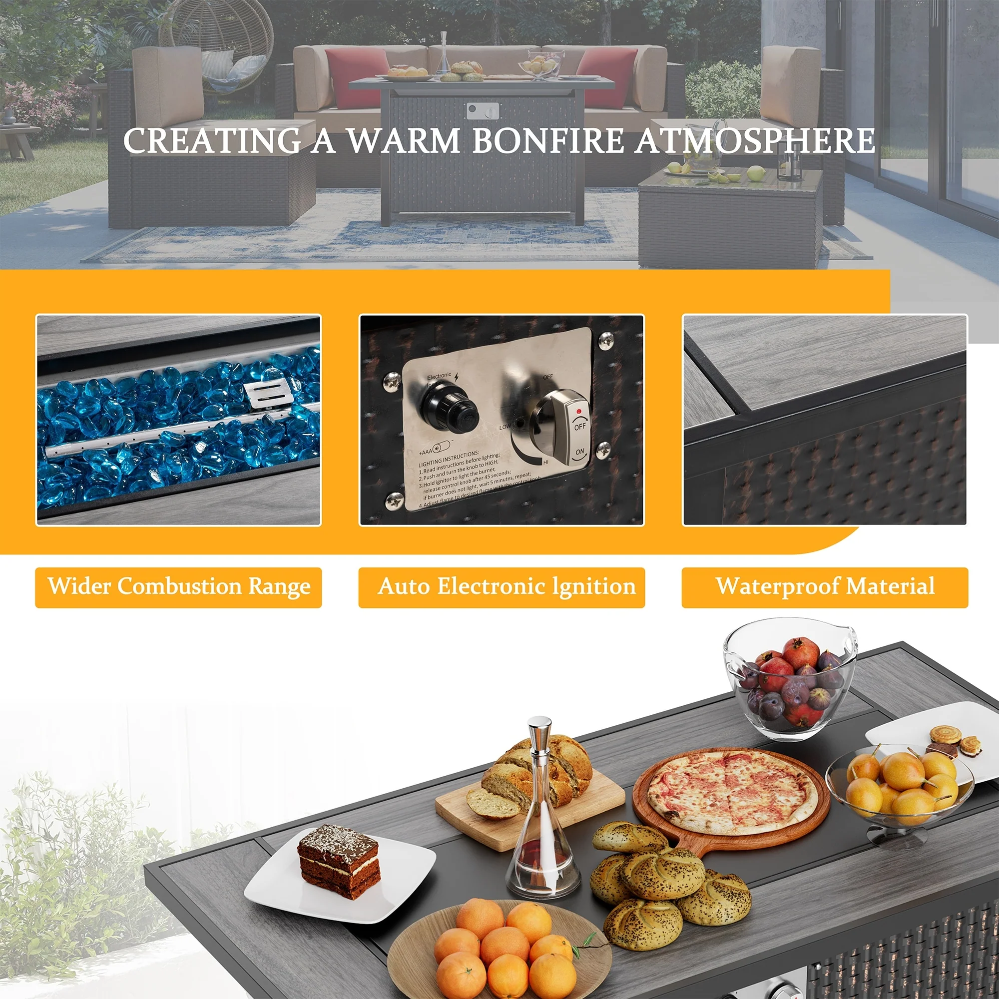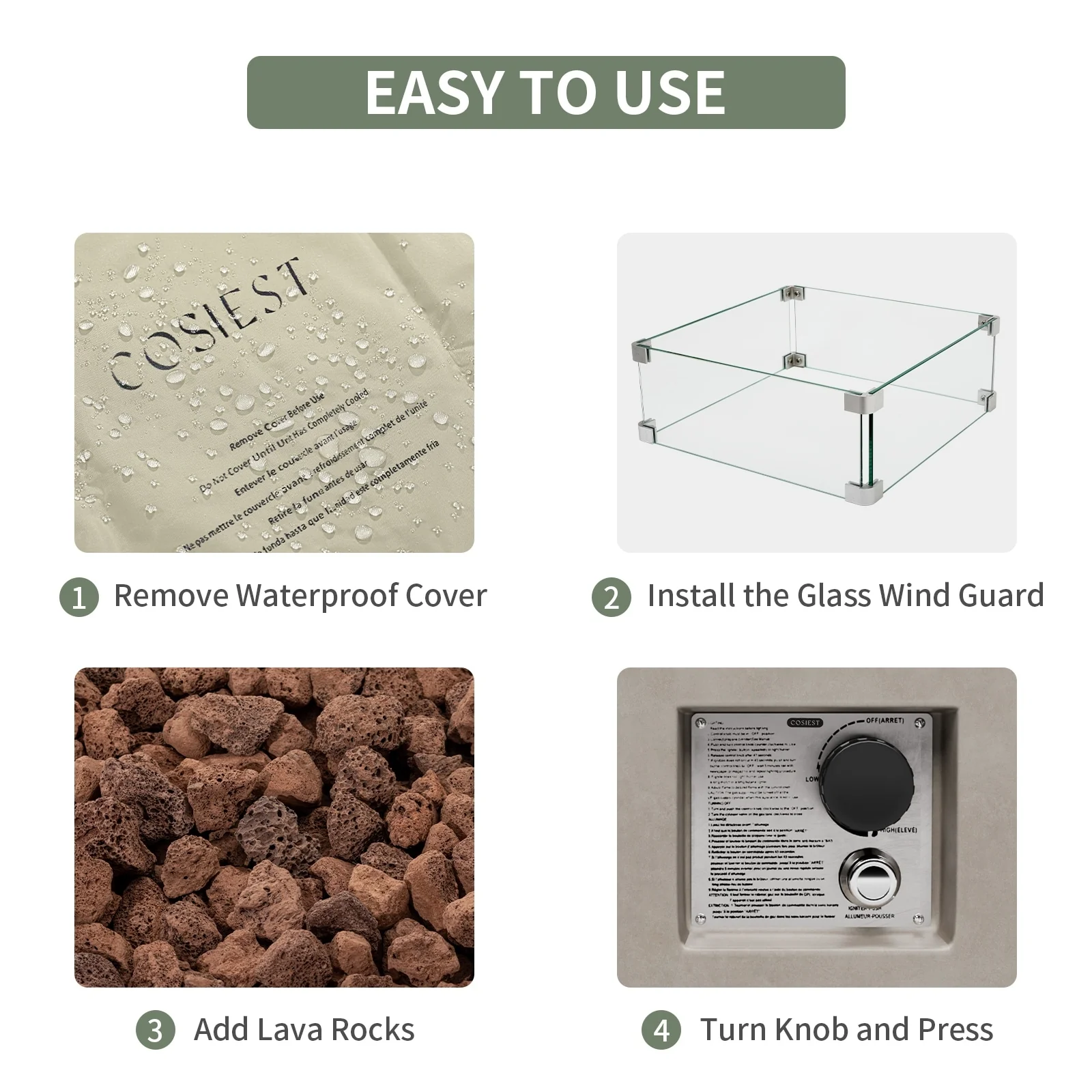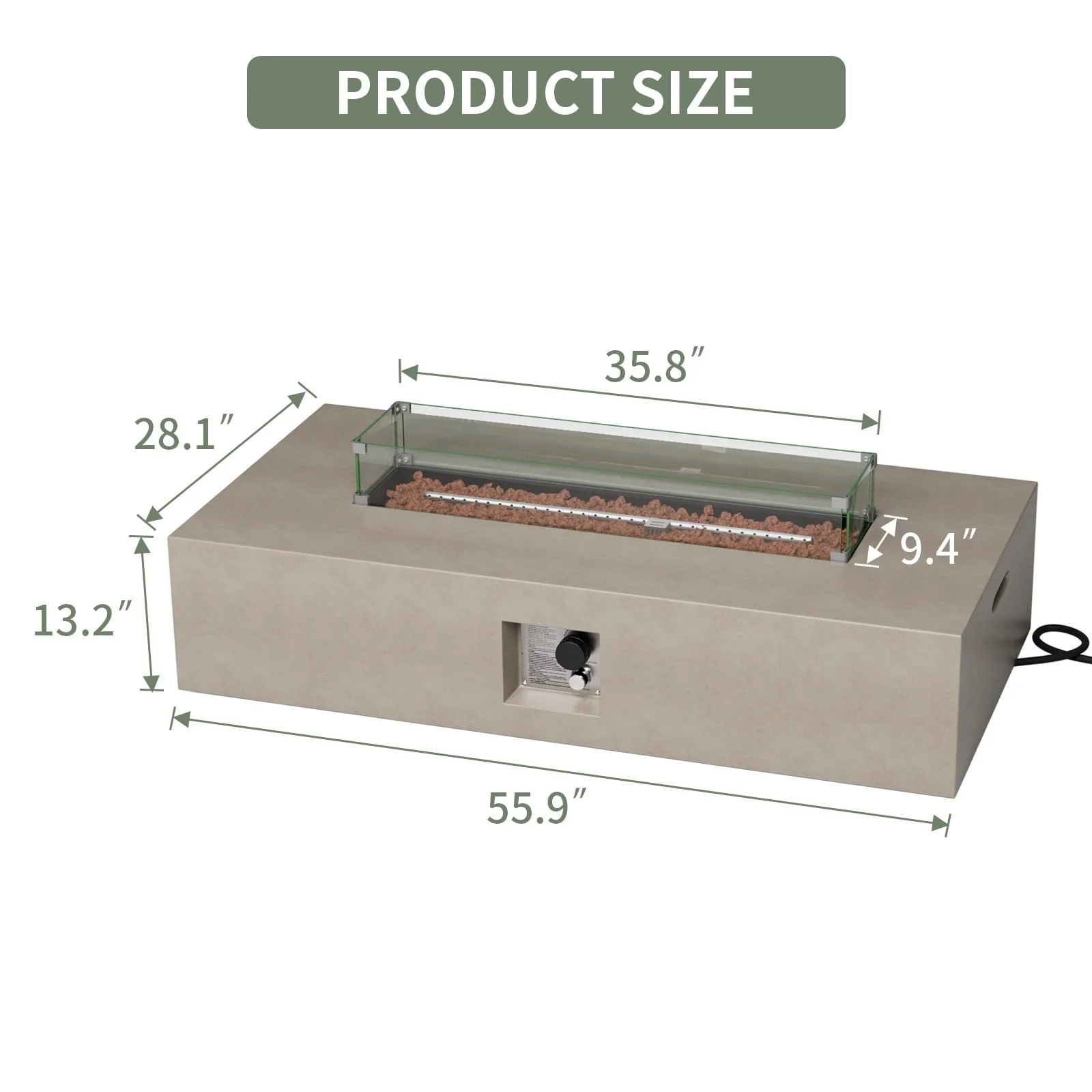 COSIEST Outdoor Rectangular Propane Fire Pit with Wind Guard, Tank Cover Table