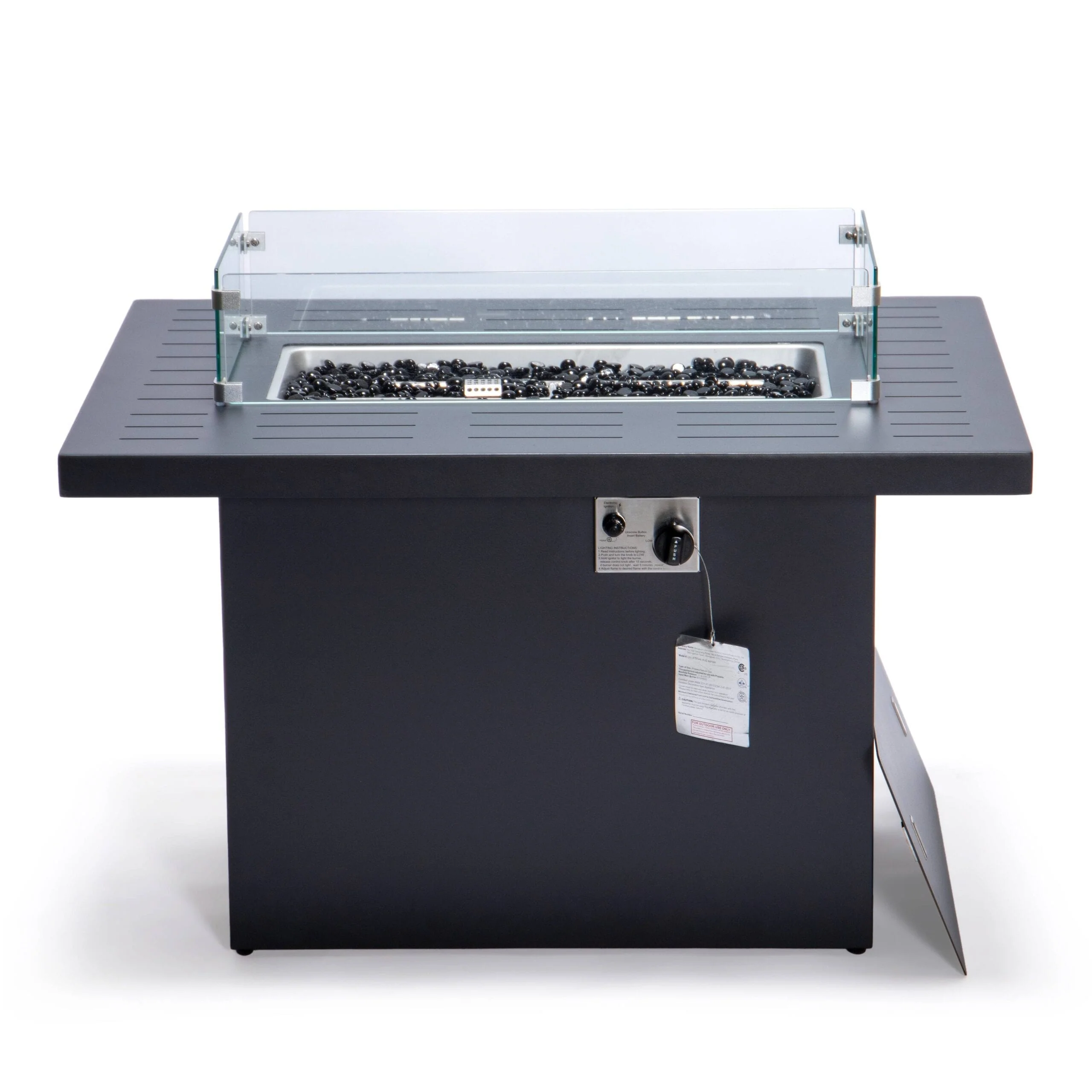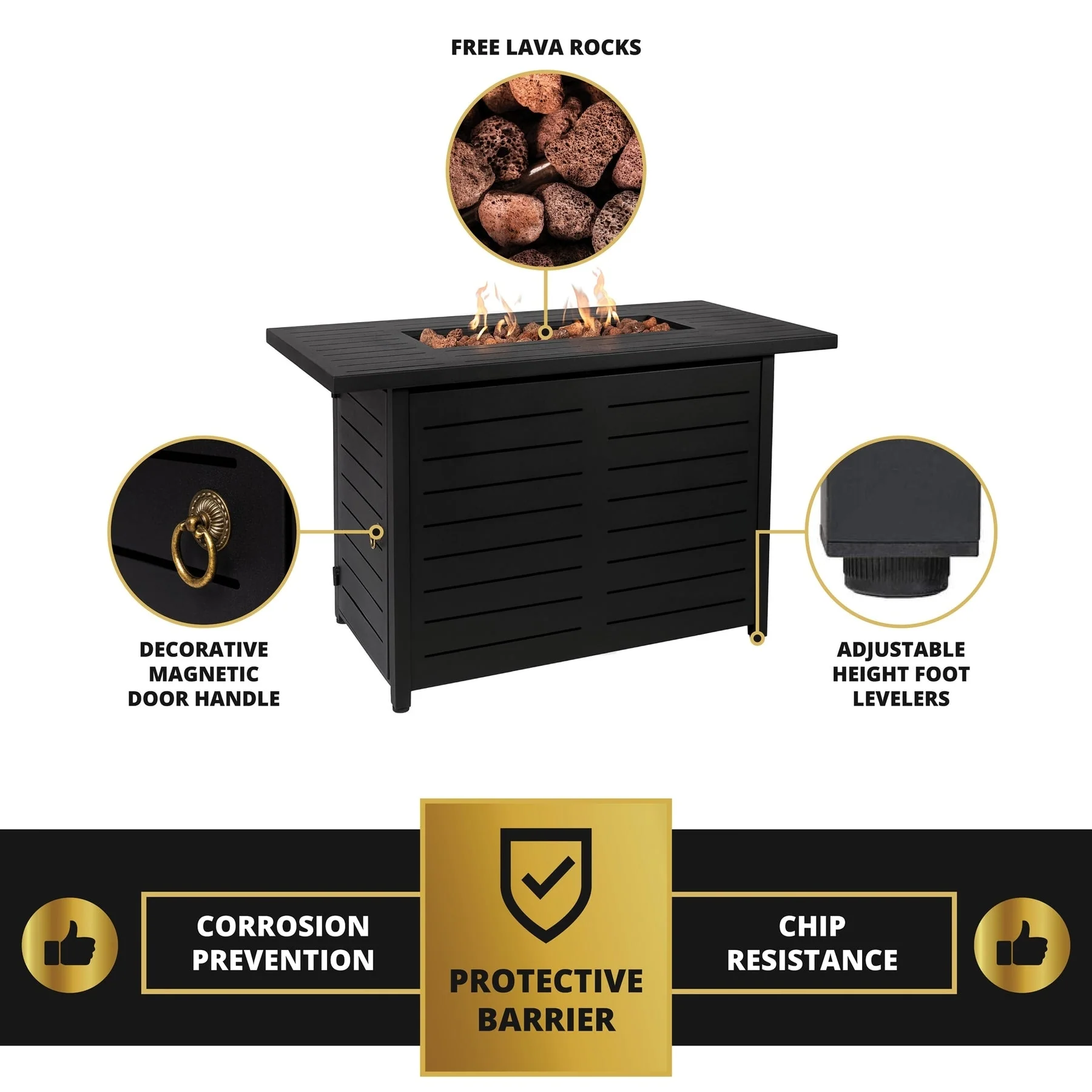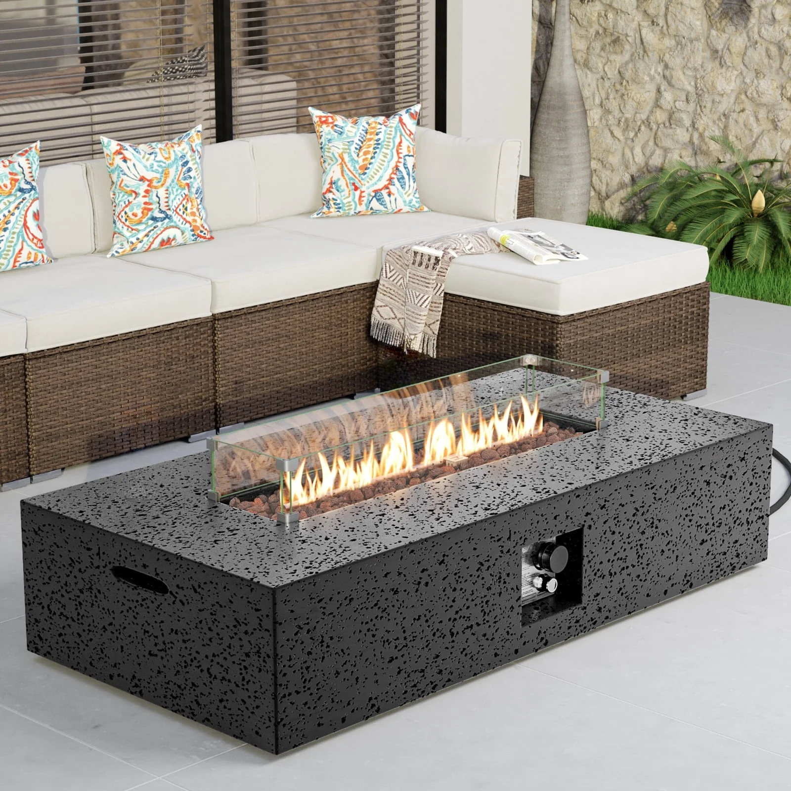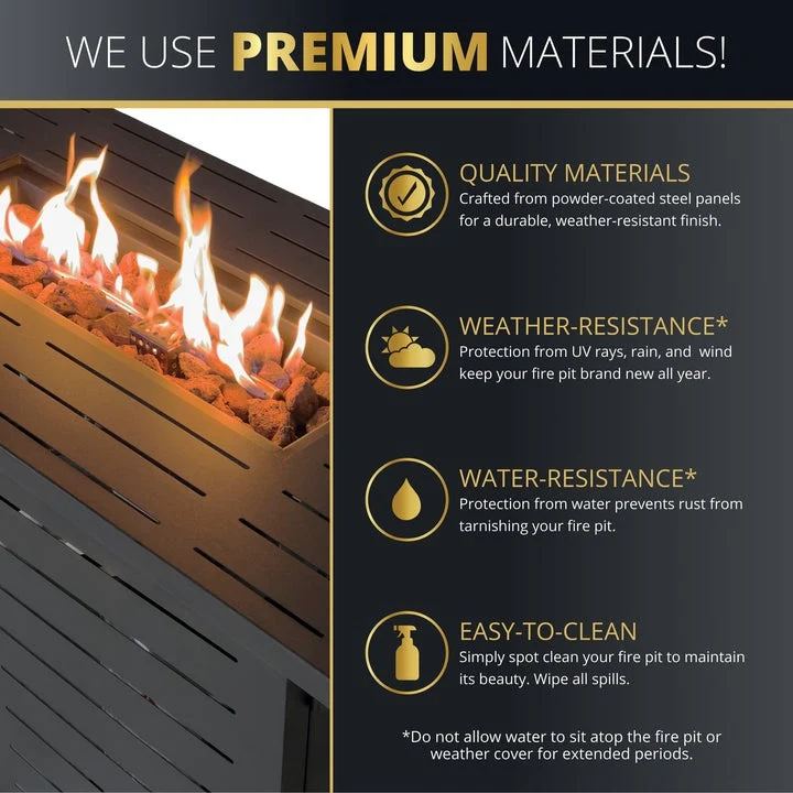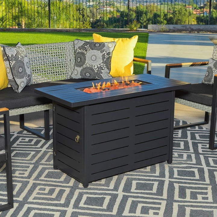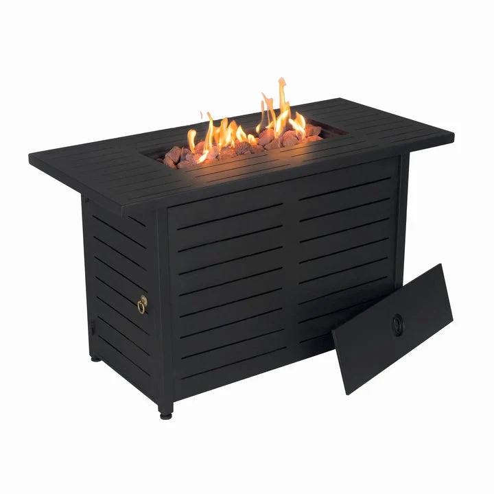 Kinger Home Ore Black 42-Inch Rectangle Fire Pit Table with Lava Rocks