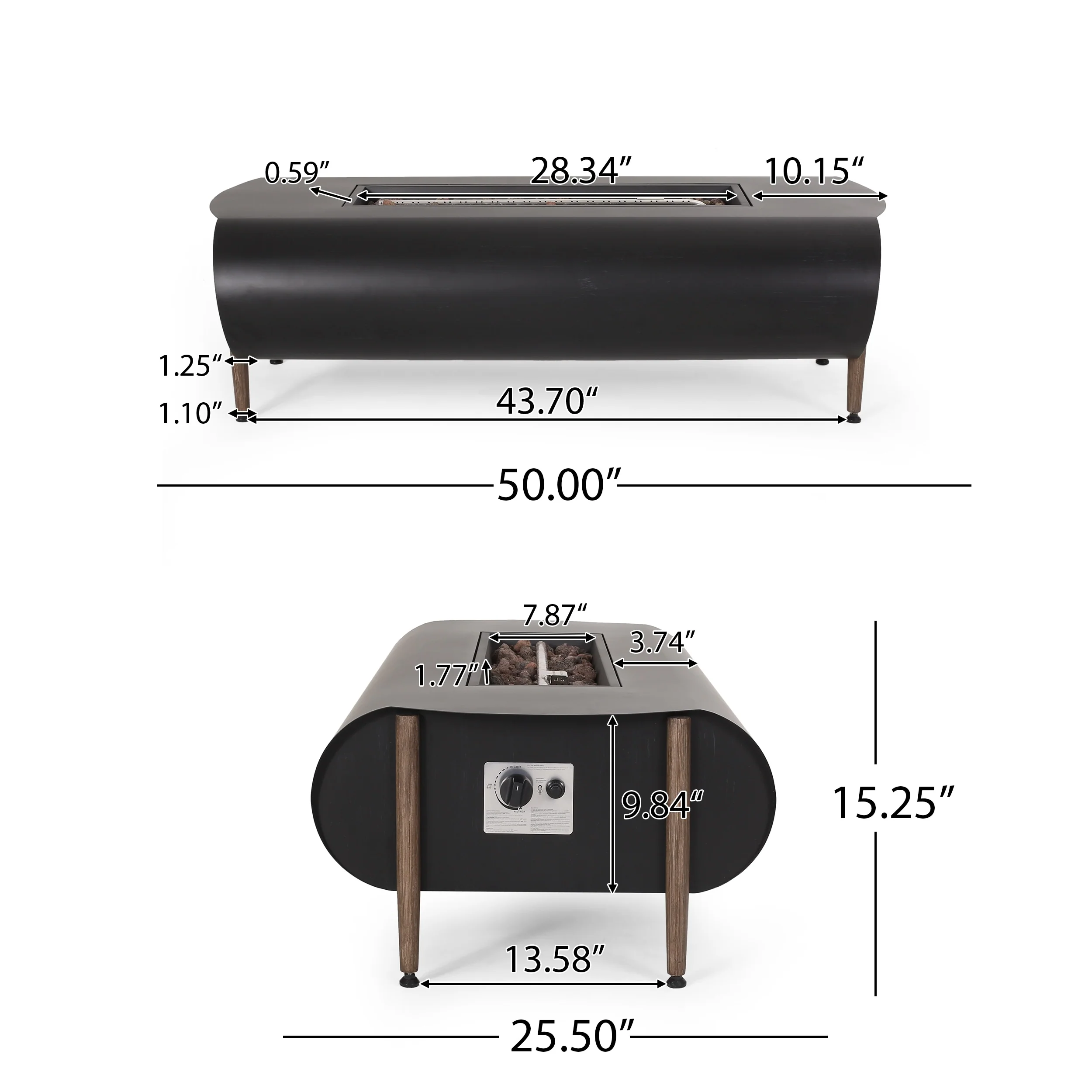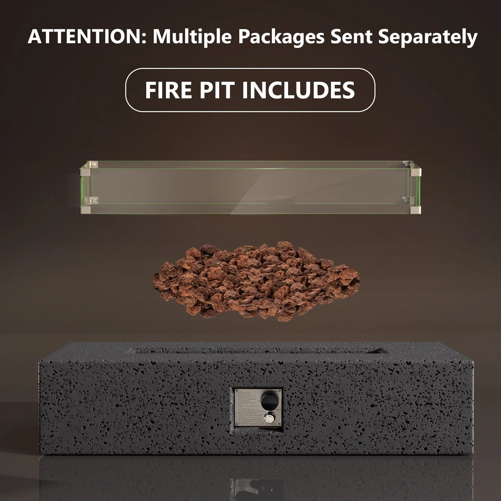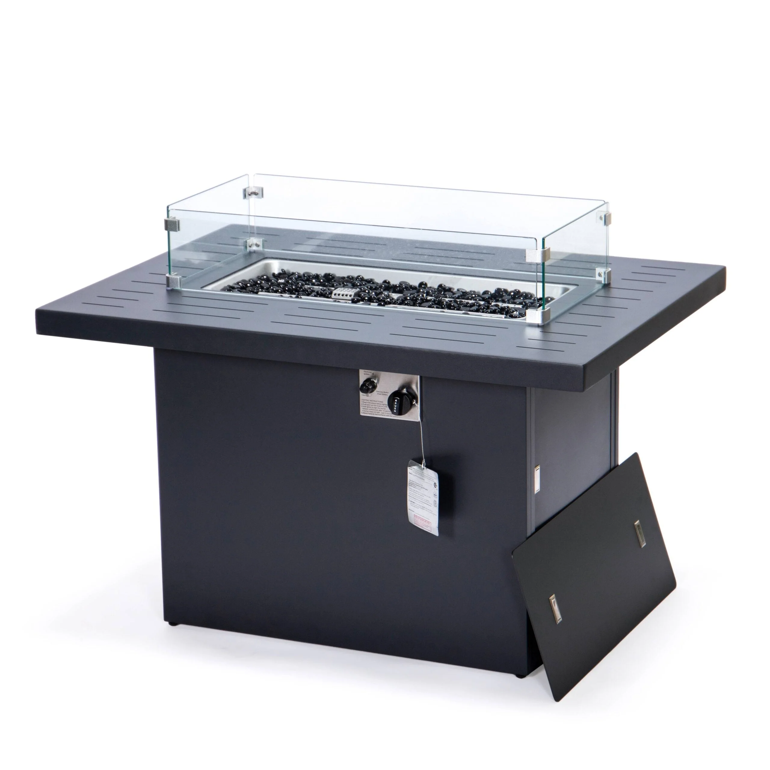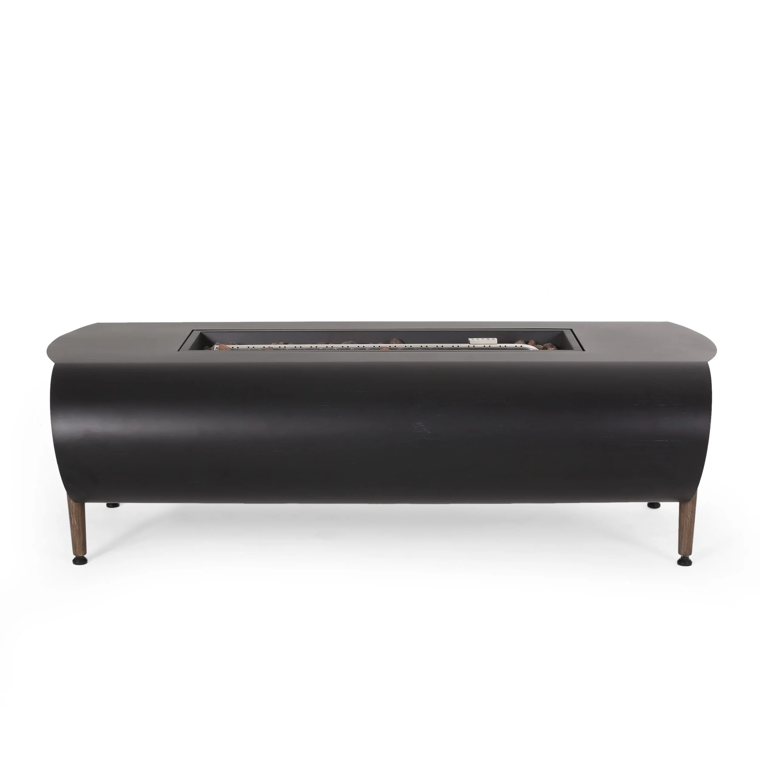 Kinger Home Ore Black 42-Inch Rectangle Fire Pit Table with Lava Rocks
