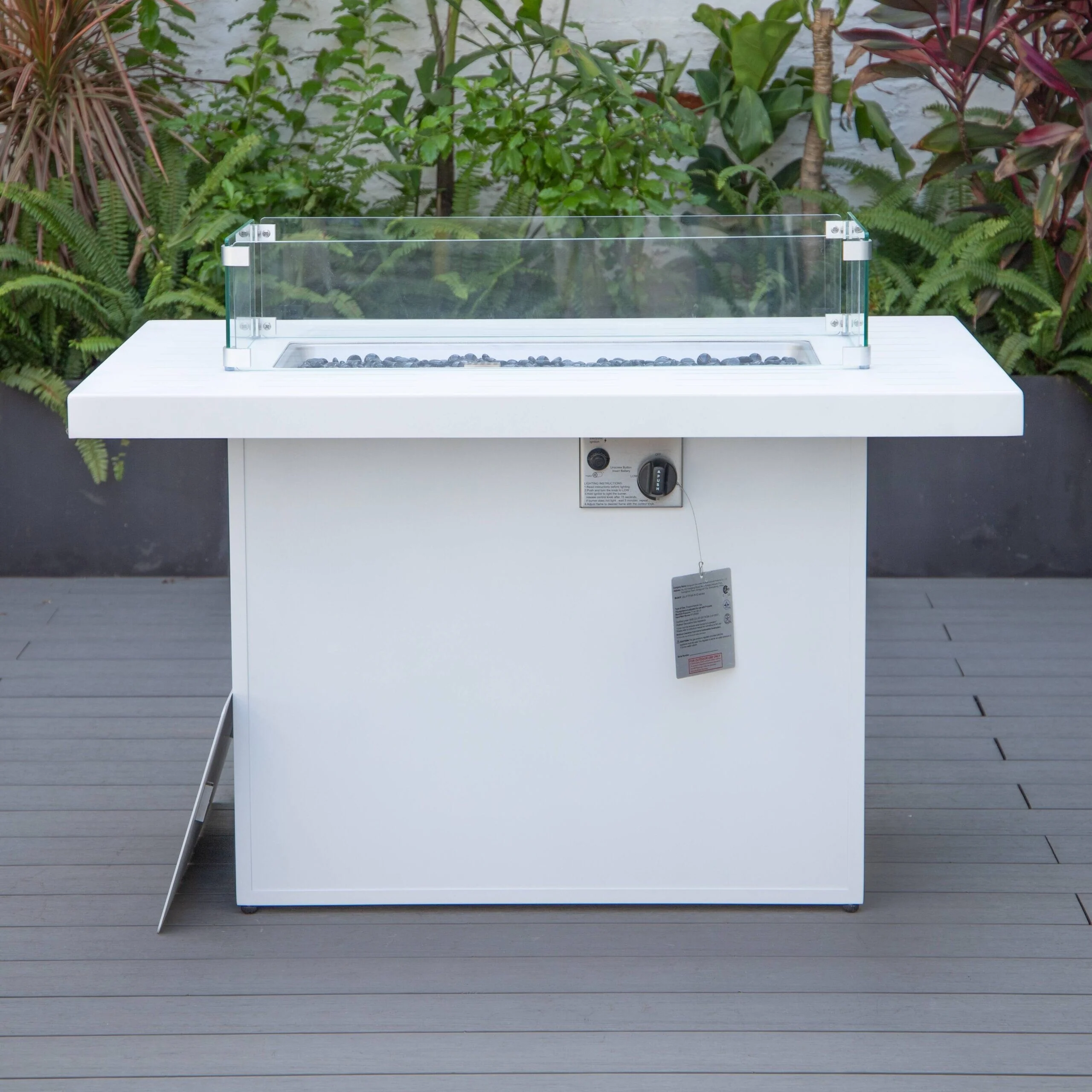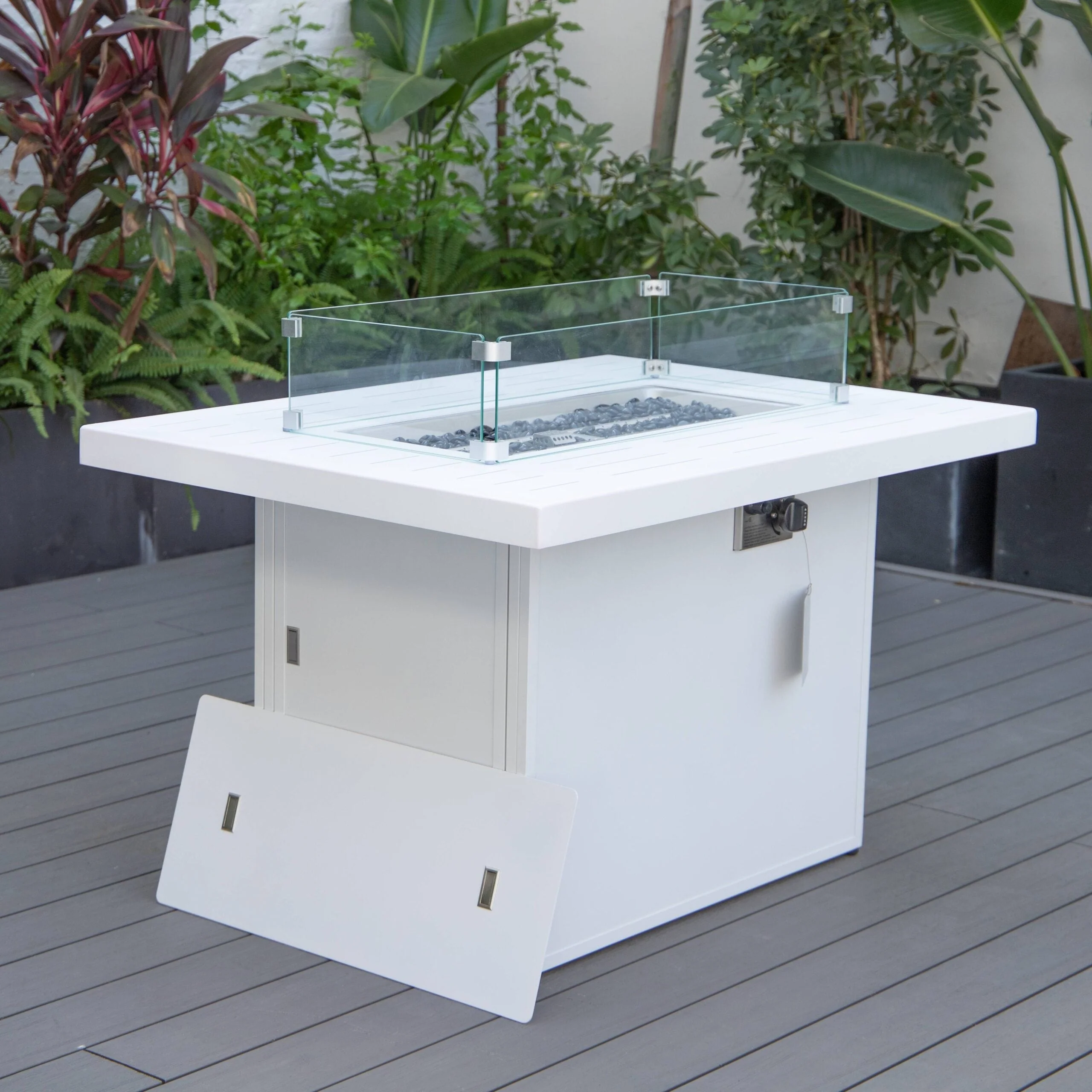LeisureMod Chelsea 44" Modern 55000 BTU Propane Patio Fire Pit Table with Wind Guard for Porch Backyard Garden Decor