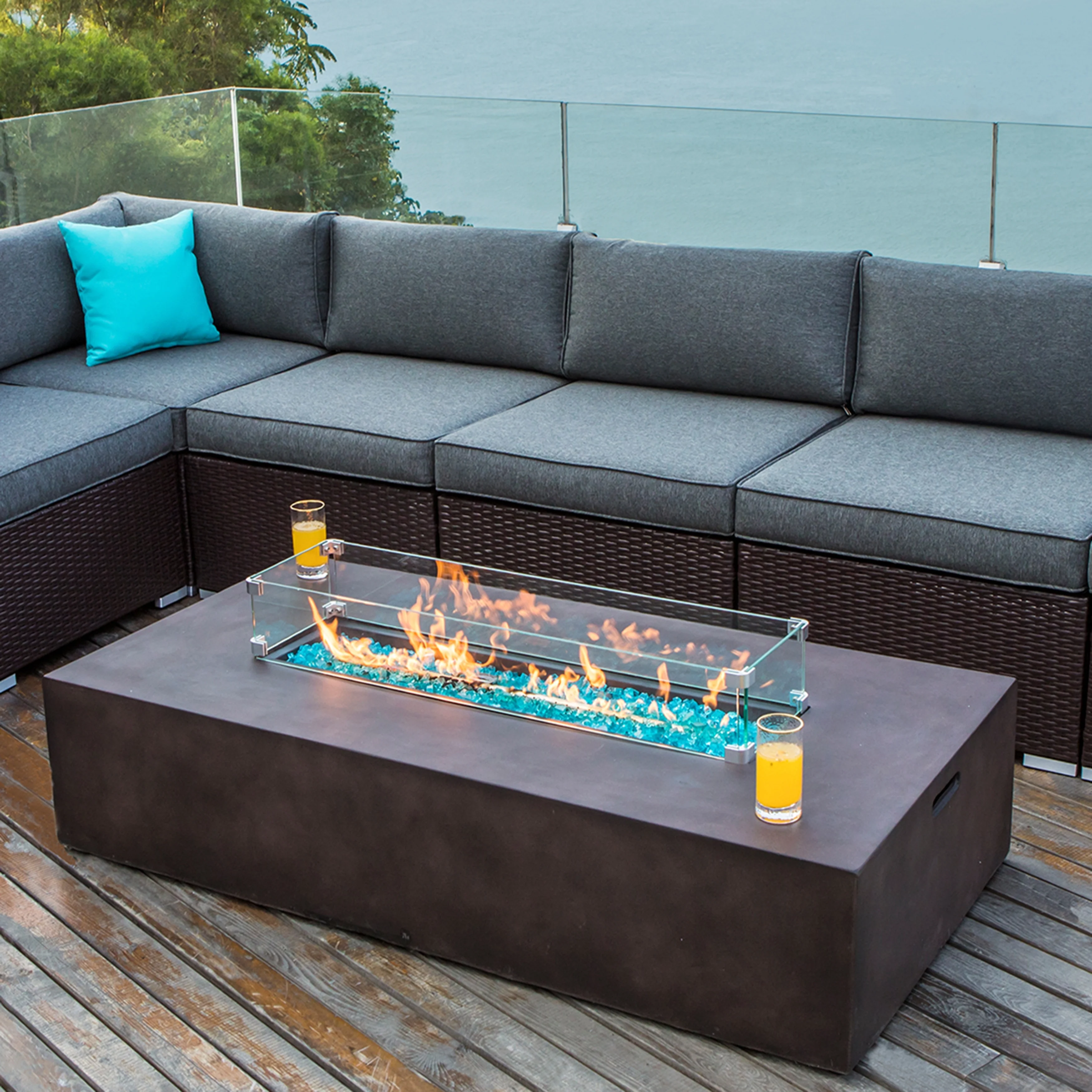 COSIEST Outdoor Patio Propane Rectangular Fire Pit Table w/ Wind Guard