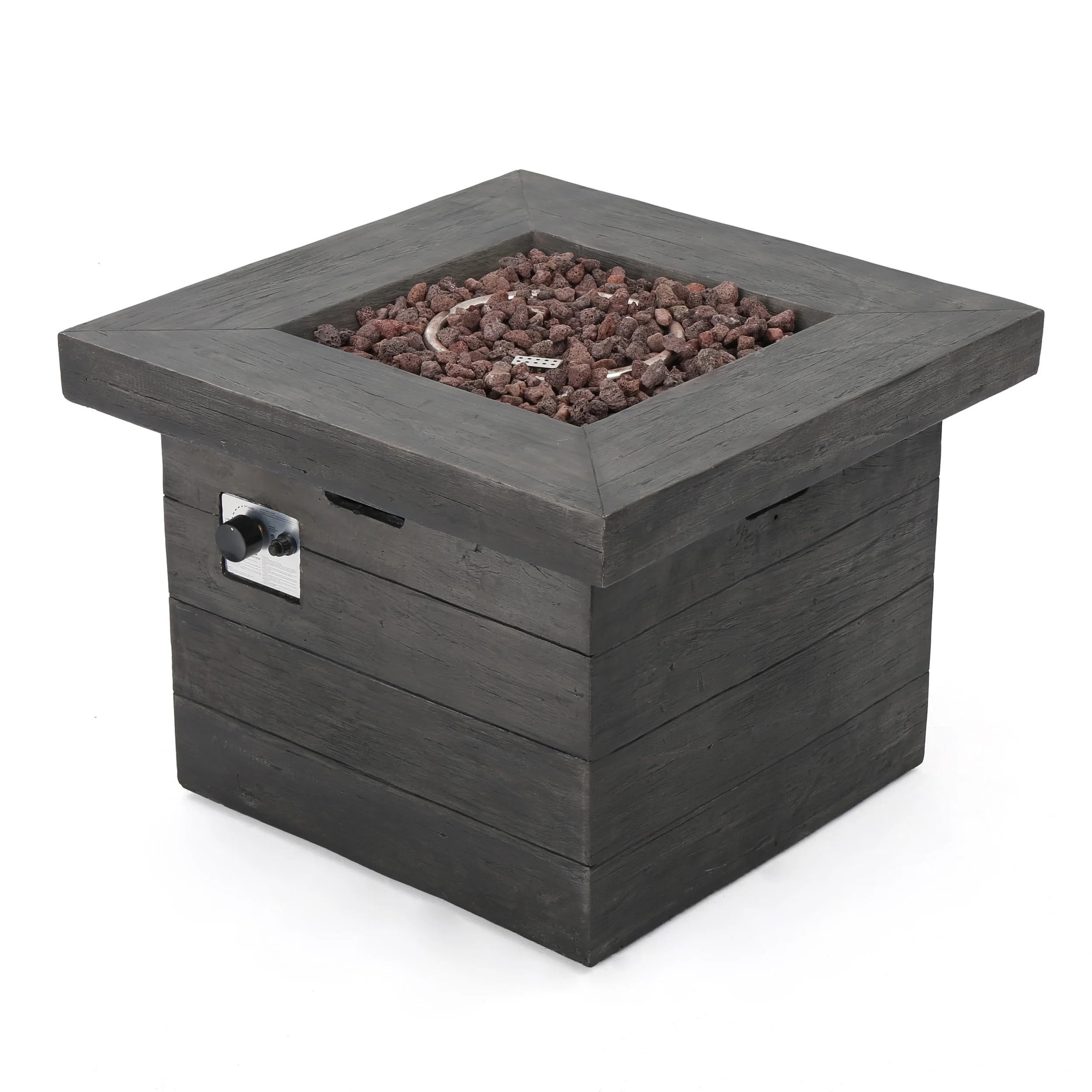 Angeles Outdoor Propane Square Fire Pit Table with Lava Rocks by Christopher Knight Home - N/A