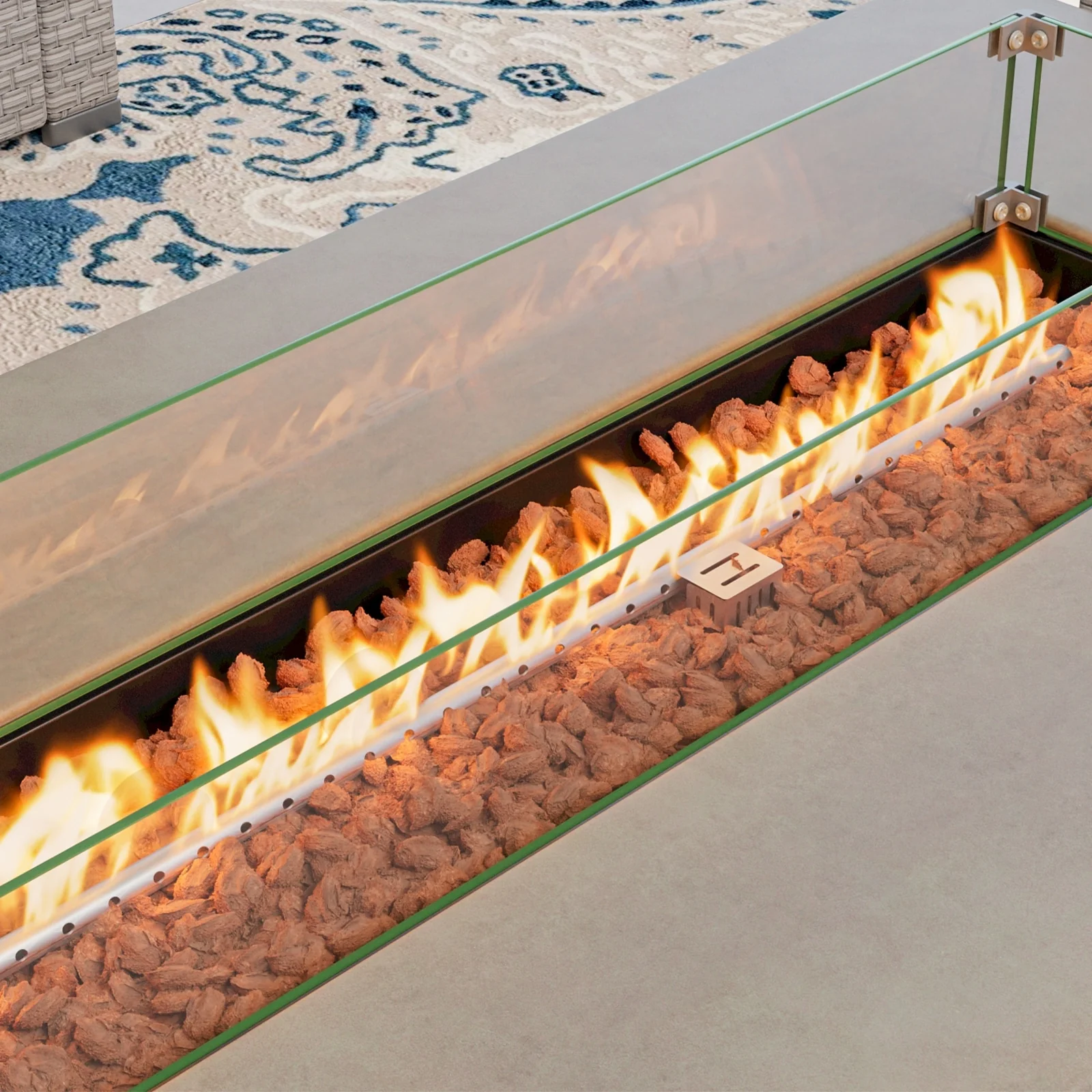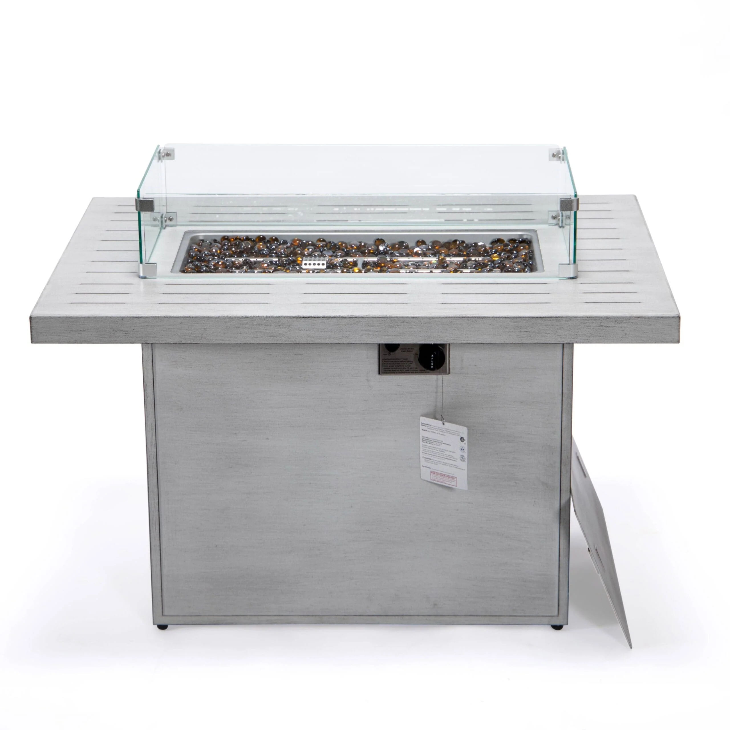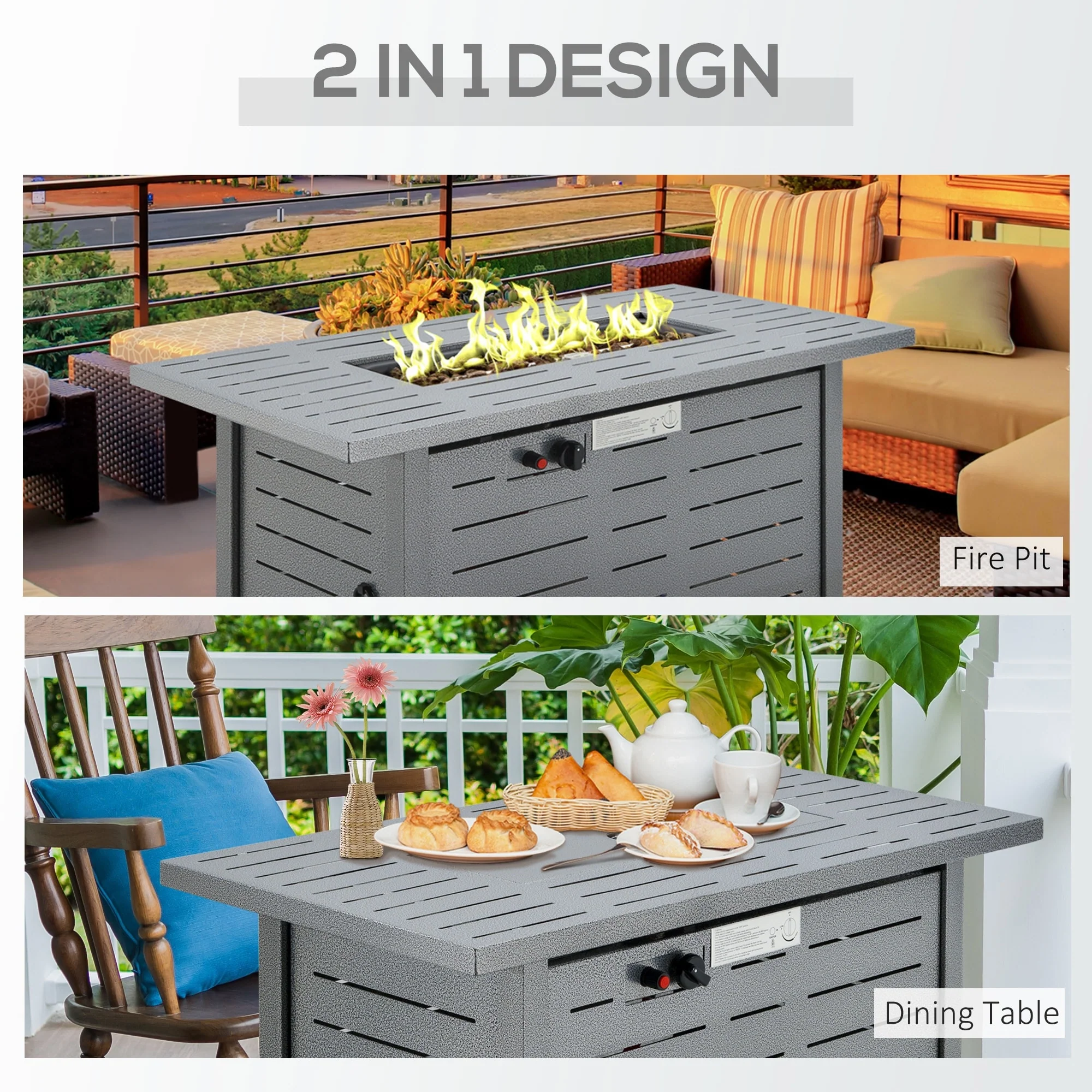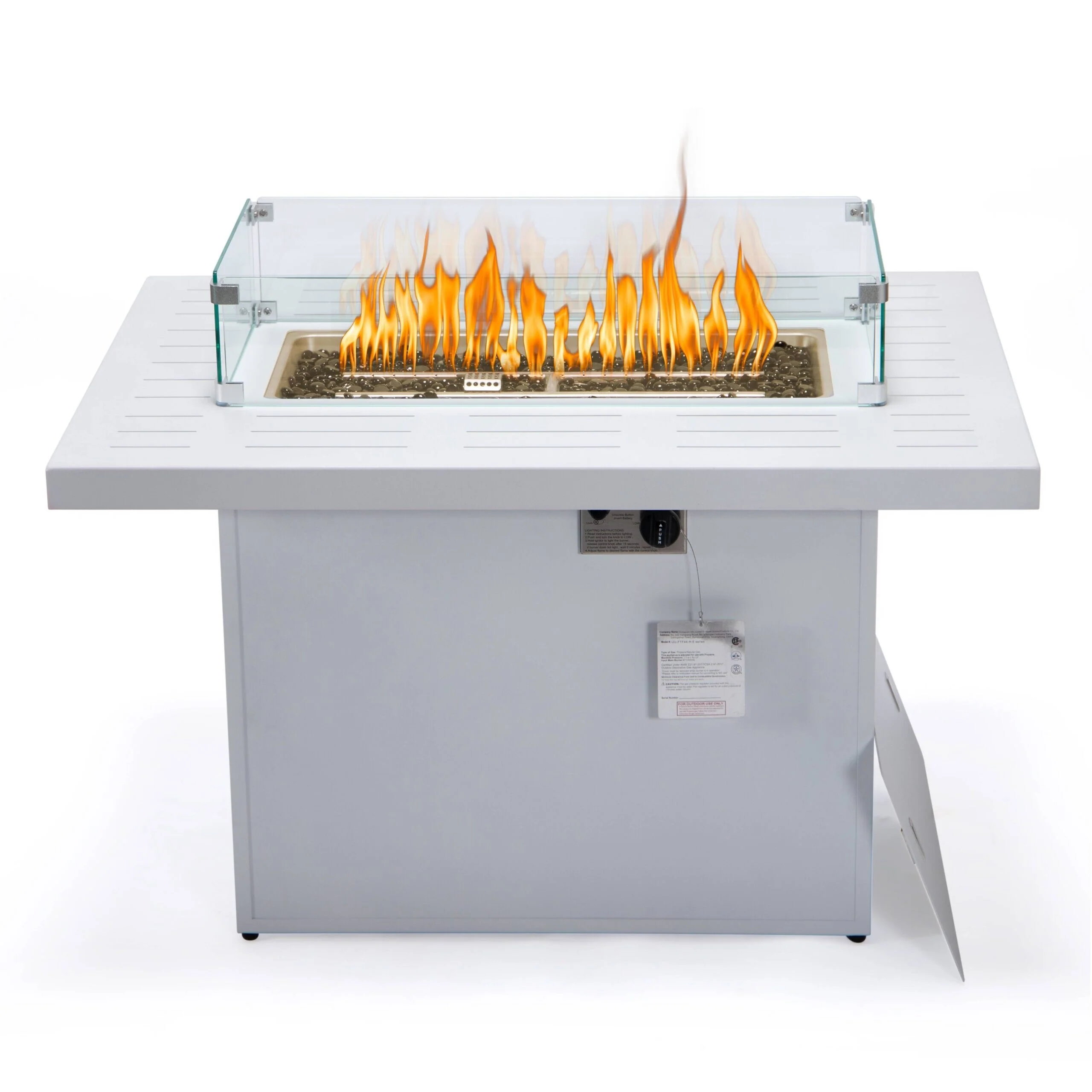 FINCATI Outdoor Aluminum 43" Dual-fuel Propane Fire Pit Table, CSA-certified, 60,000 BTU Modern Rectangular Firepit