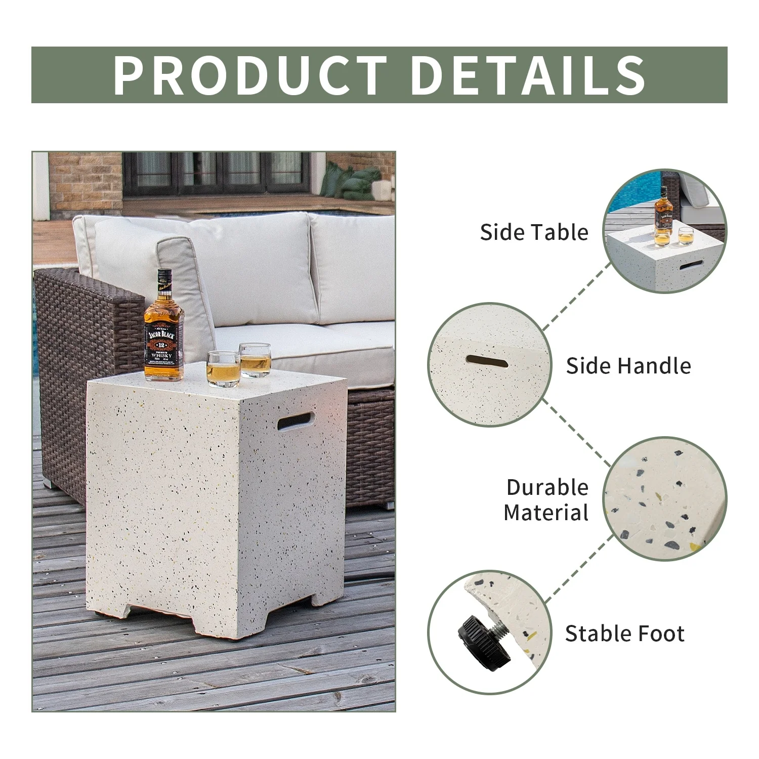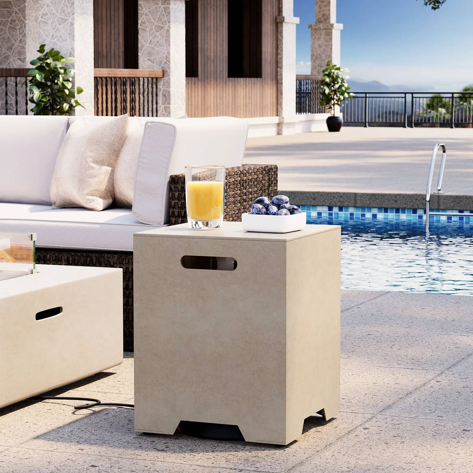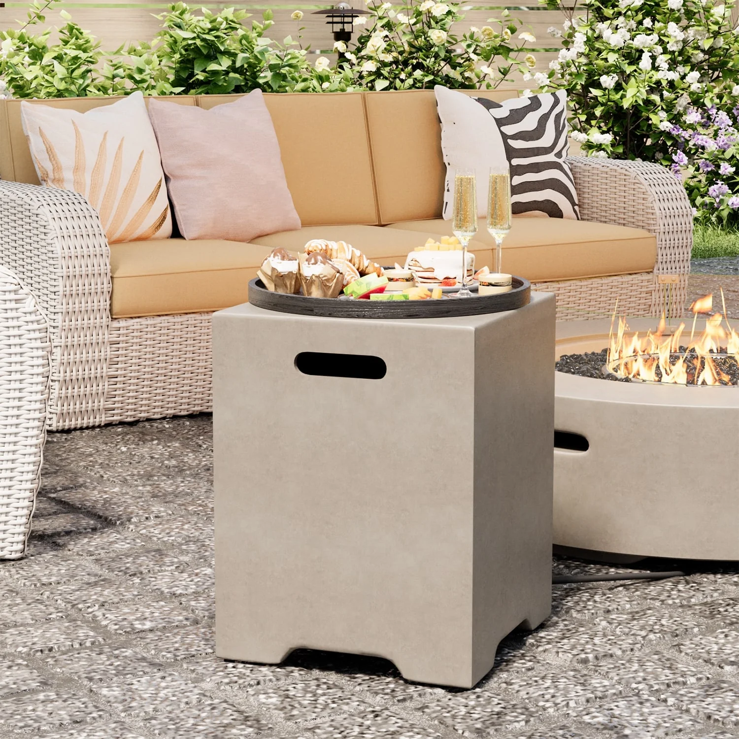 COSIEST Concrete Outdoor Propane Tank Cover Table