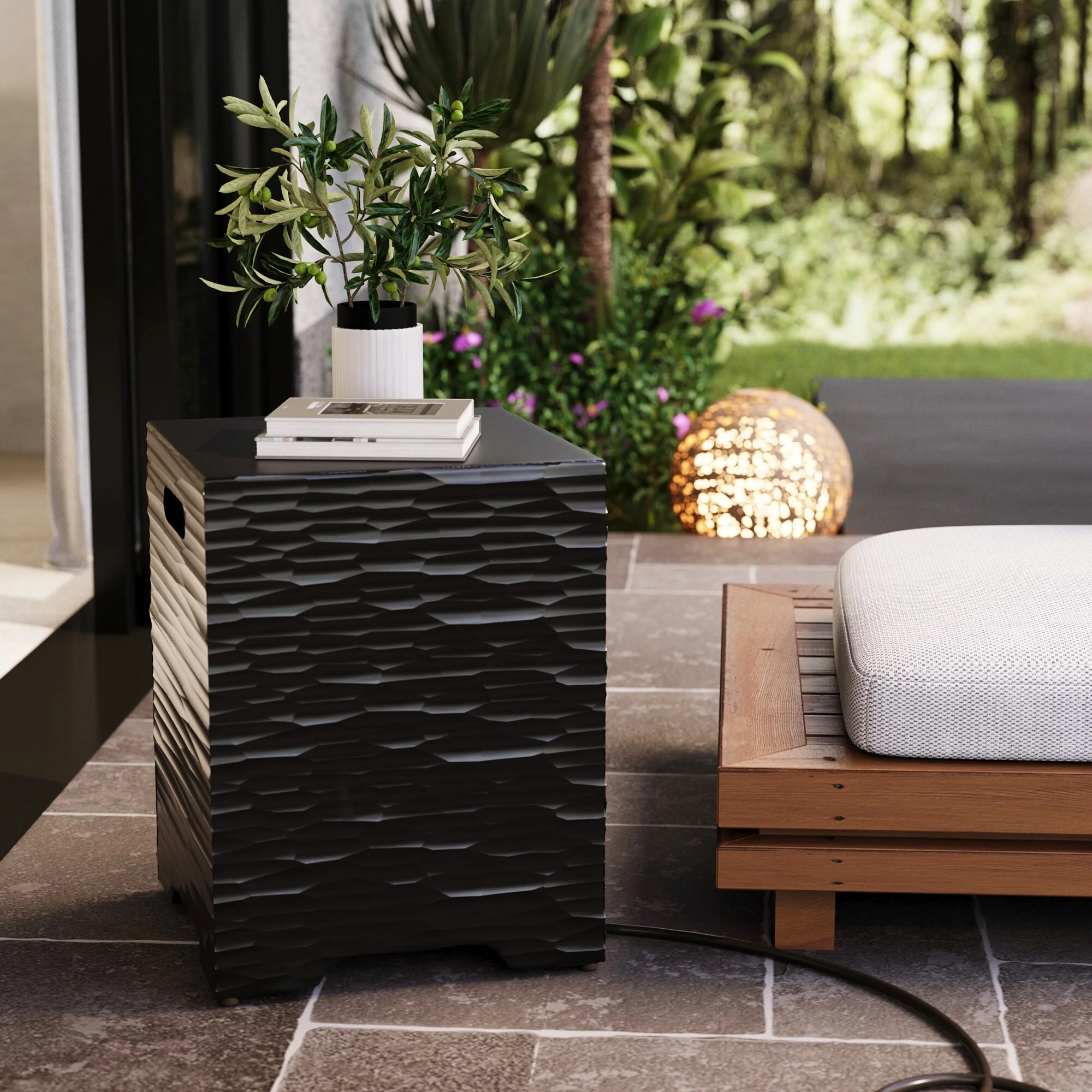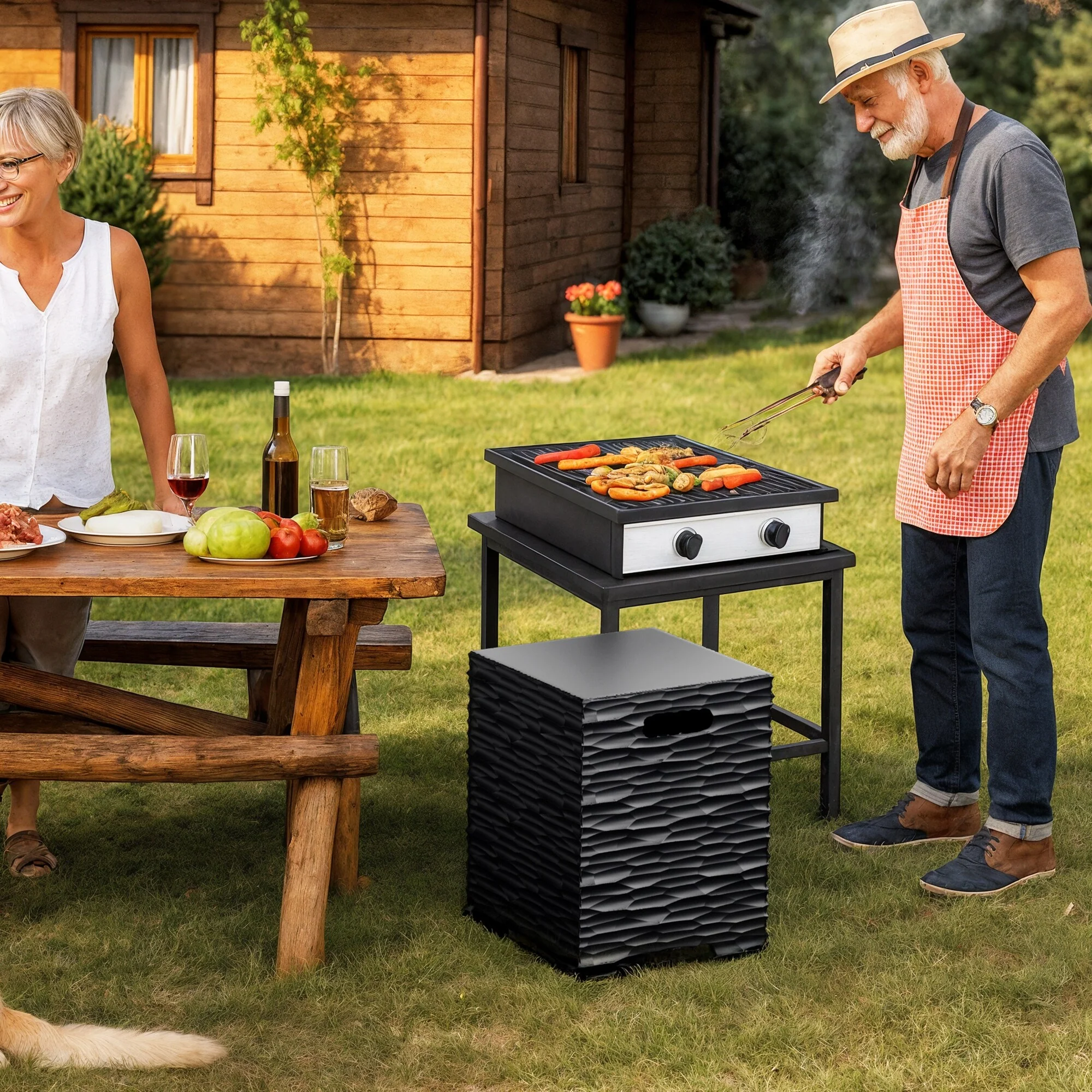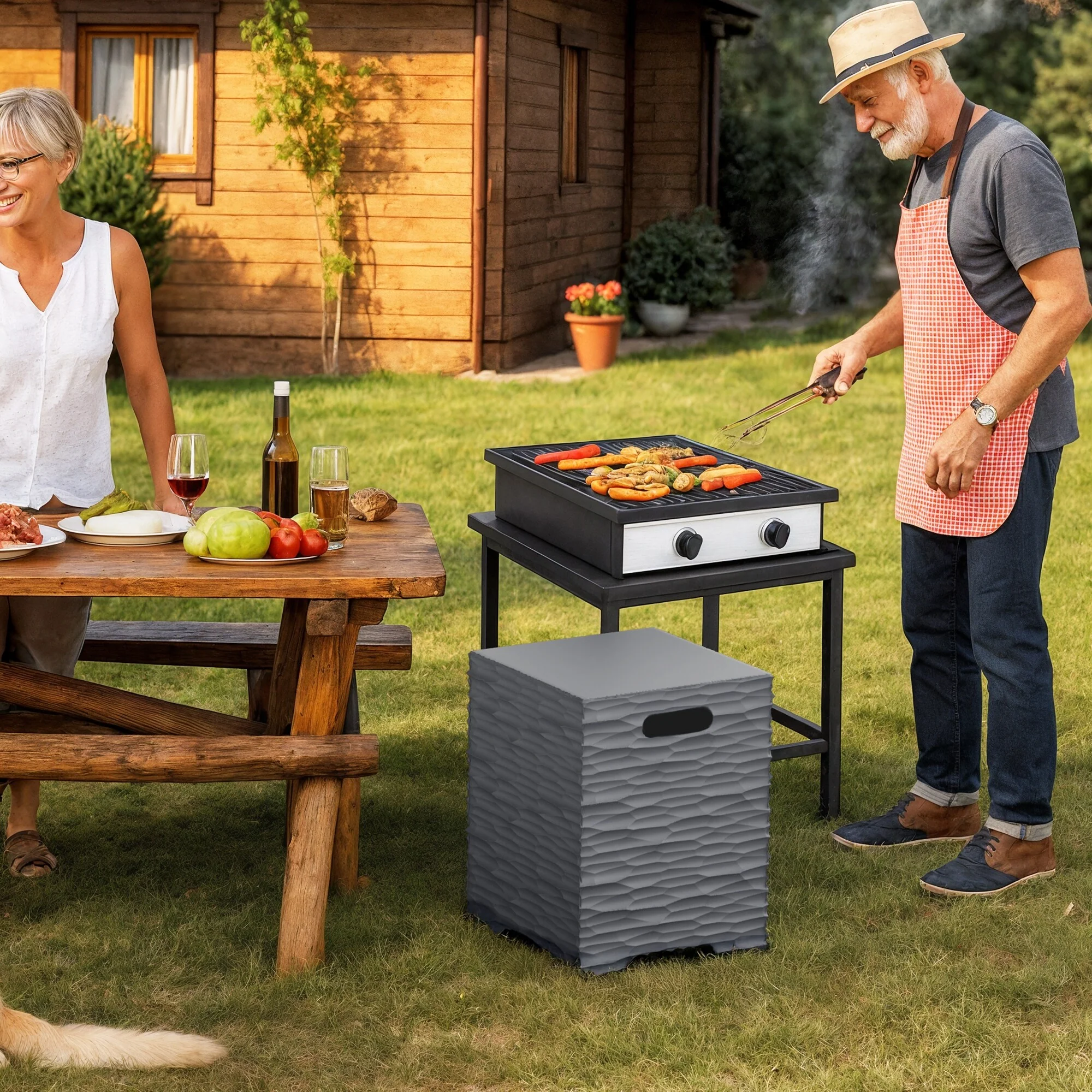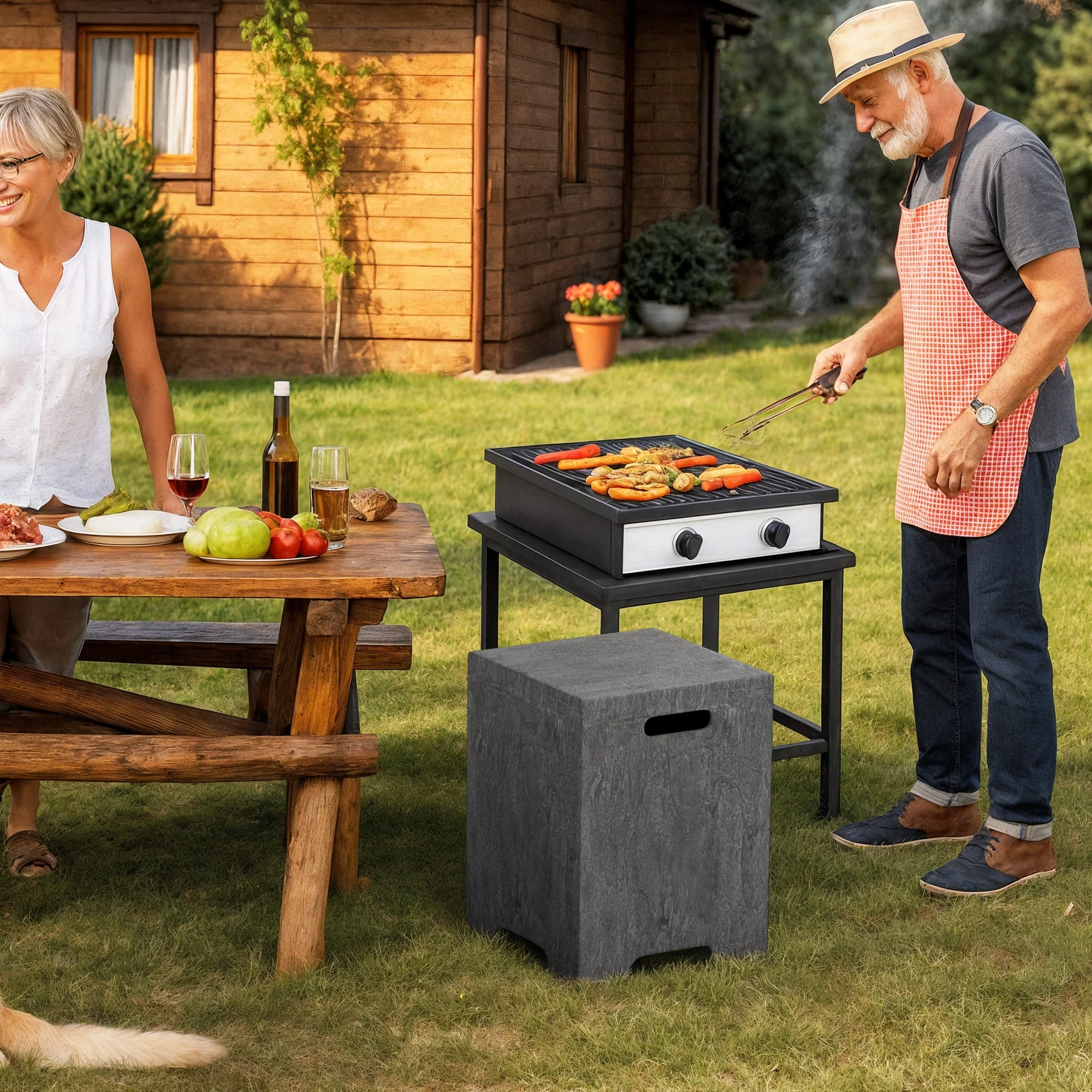 COSIEST Concrete Outdoor Propane Tank Cover Table