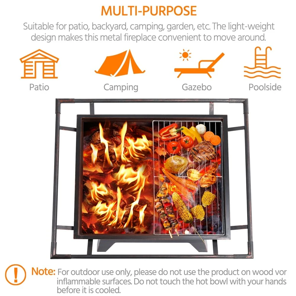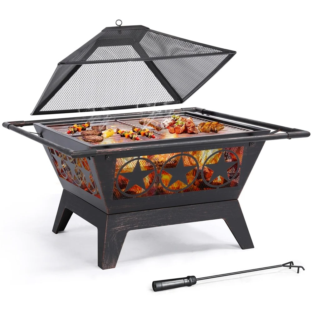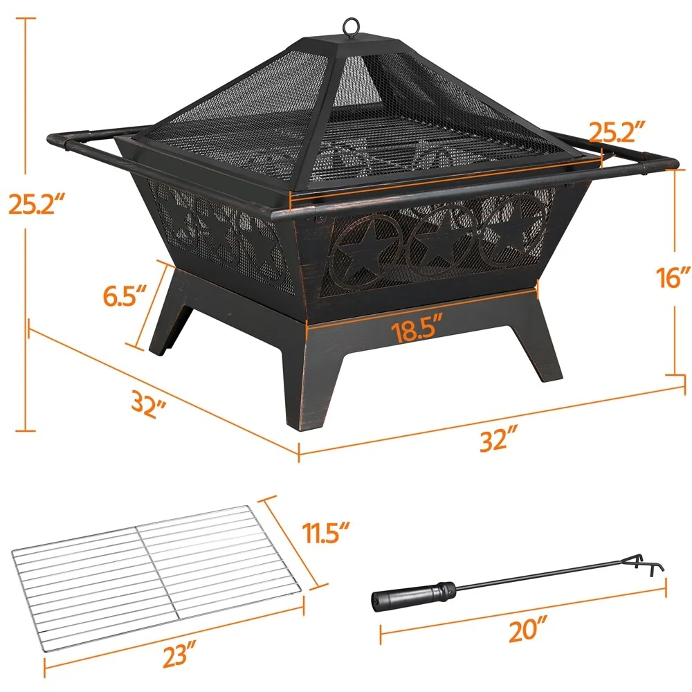 Metal Portable 32-inch Courtyard Fire Pit with Accessories