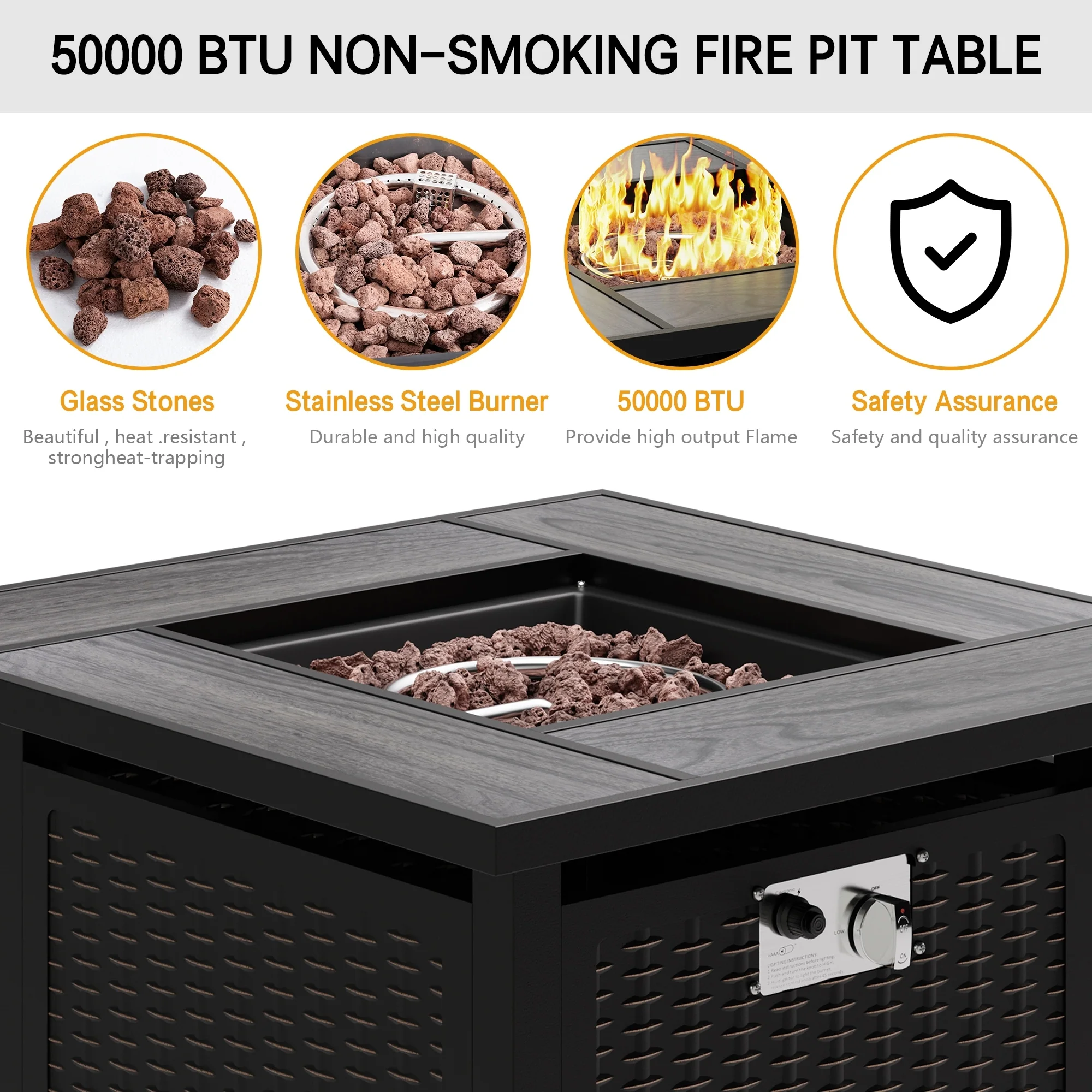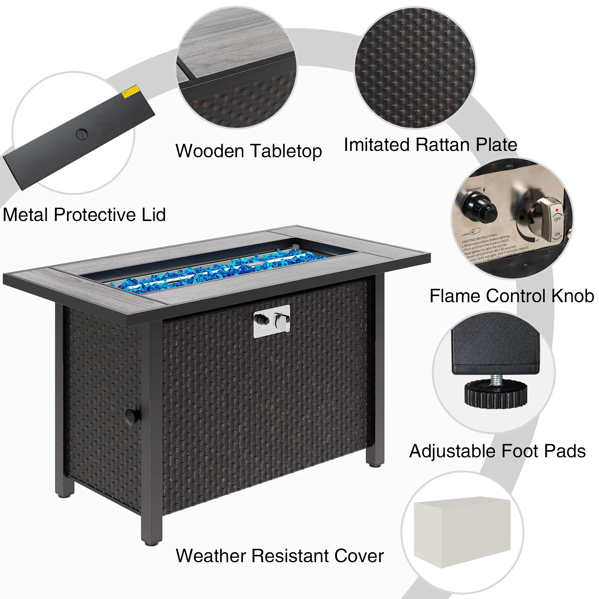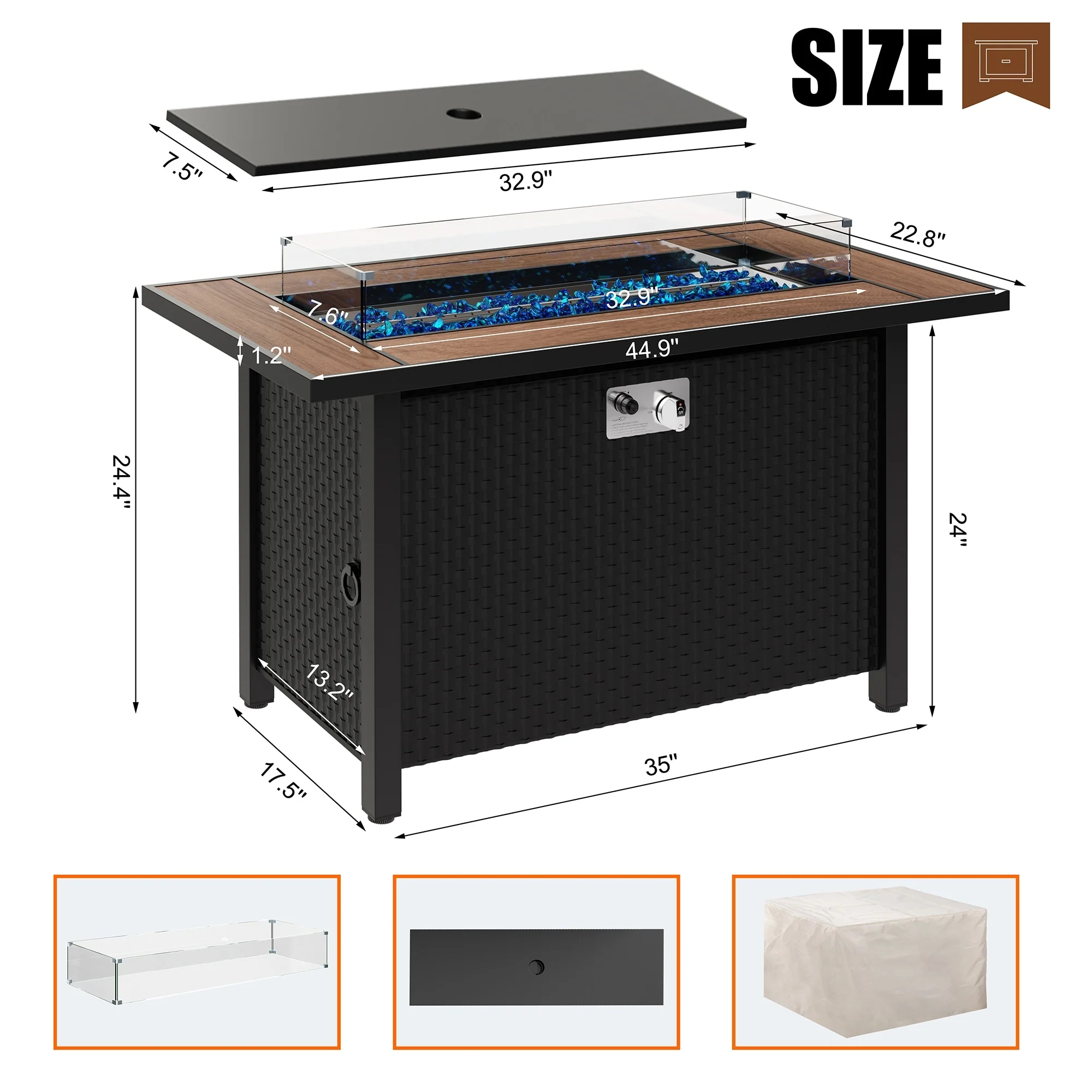 50,000 BTU 43 inch Outdoor Fire Pit Table with Cover - 43"x22 2"x24.8" WDH