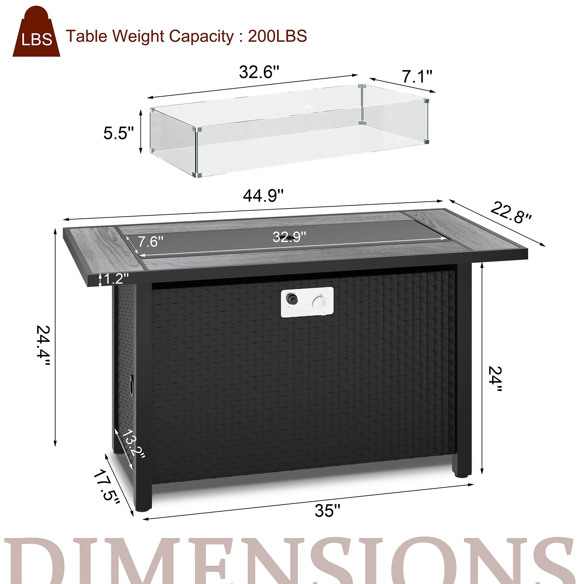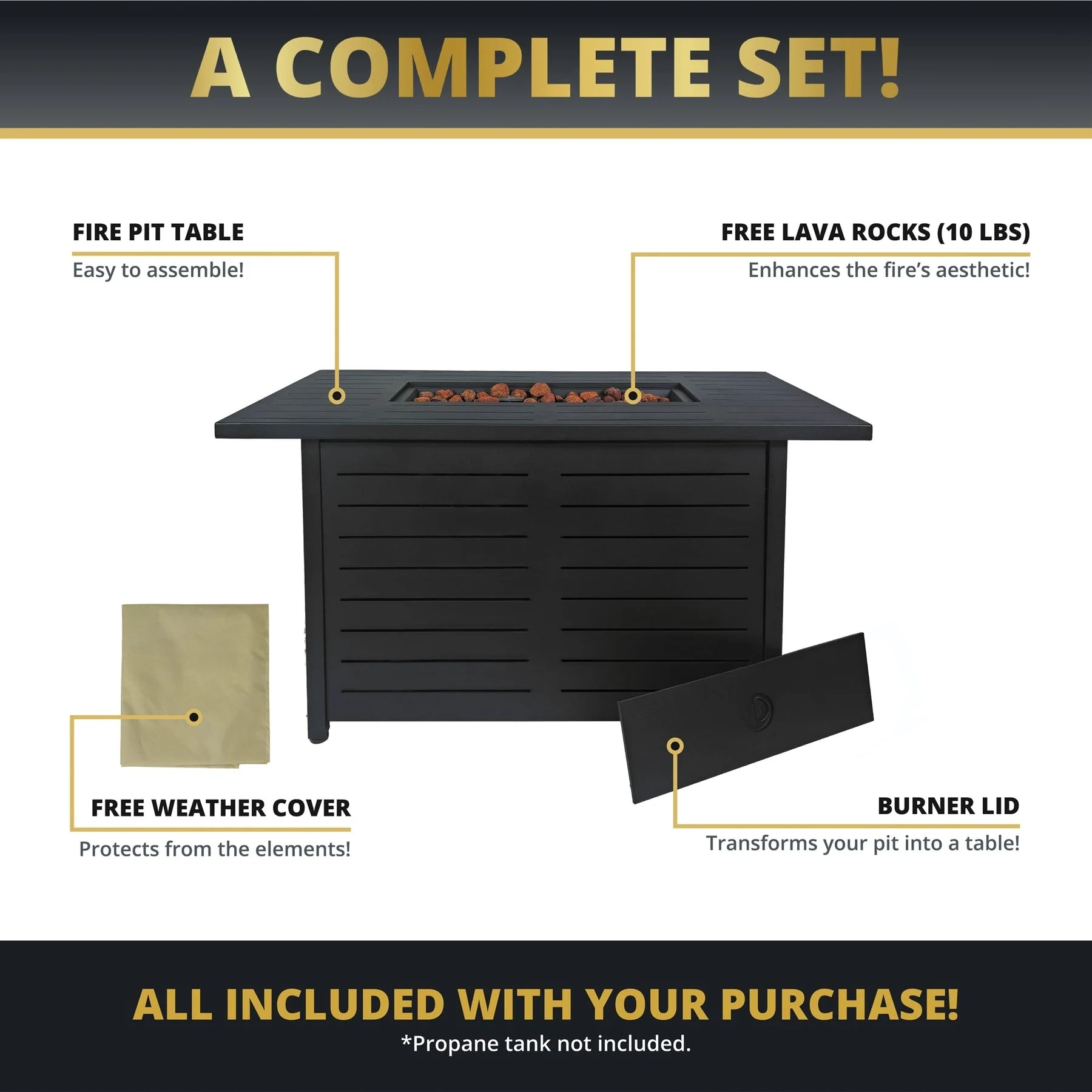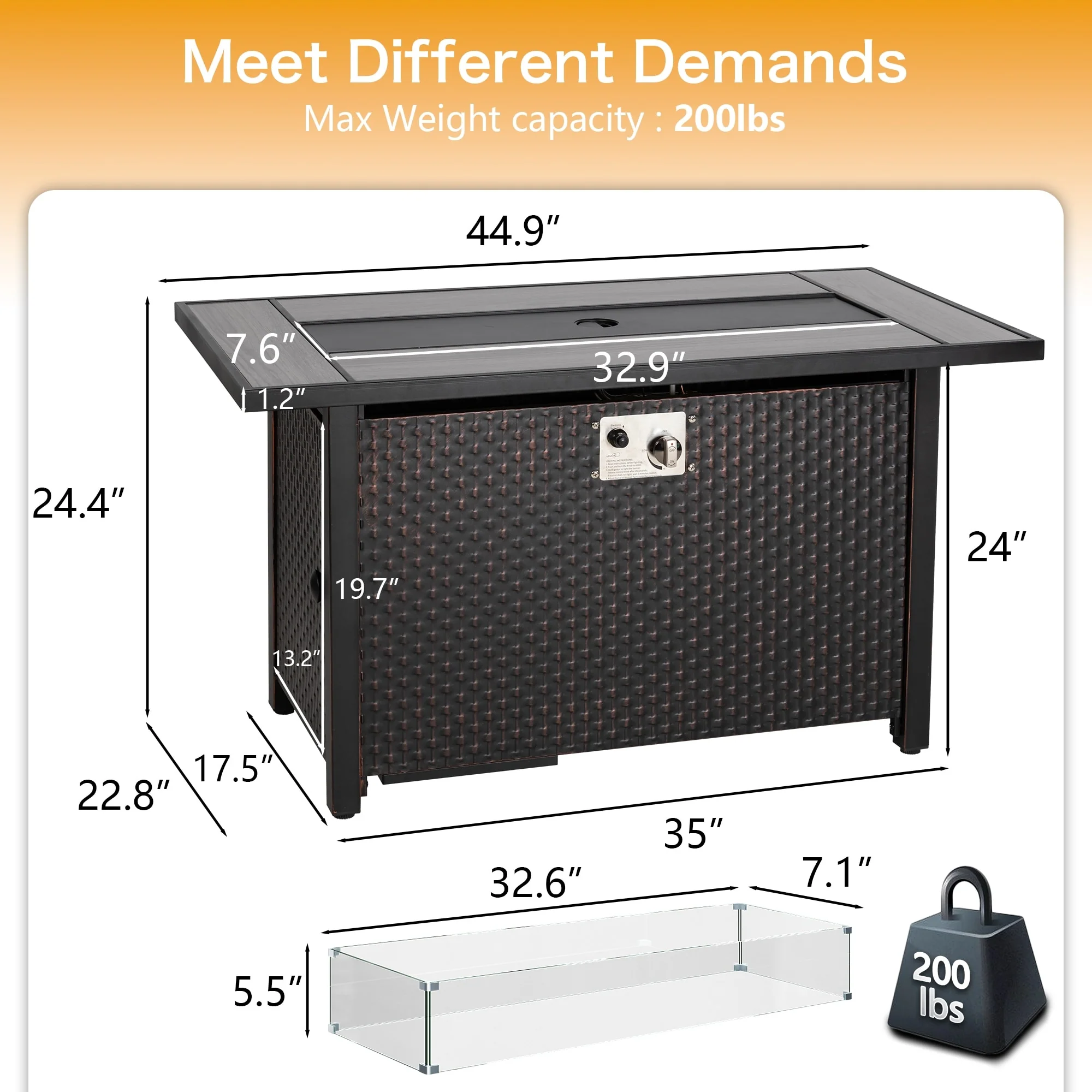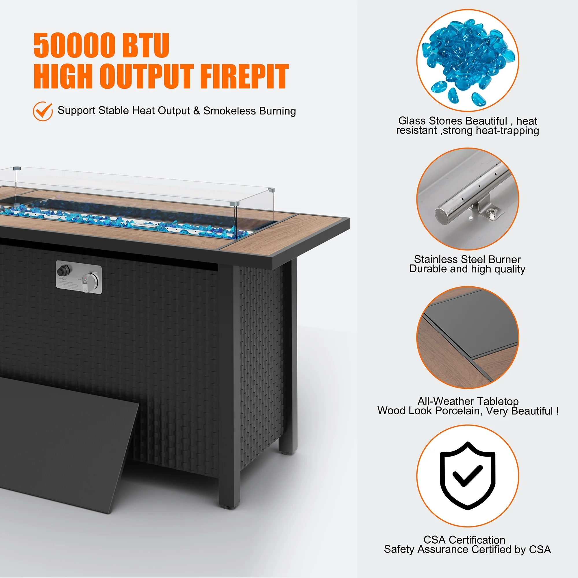 50,000 BTU 43 inch Outdoor Fire Pit Table with Cover - 43"x22 2"x24.8" WDH