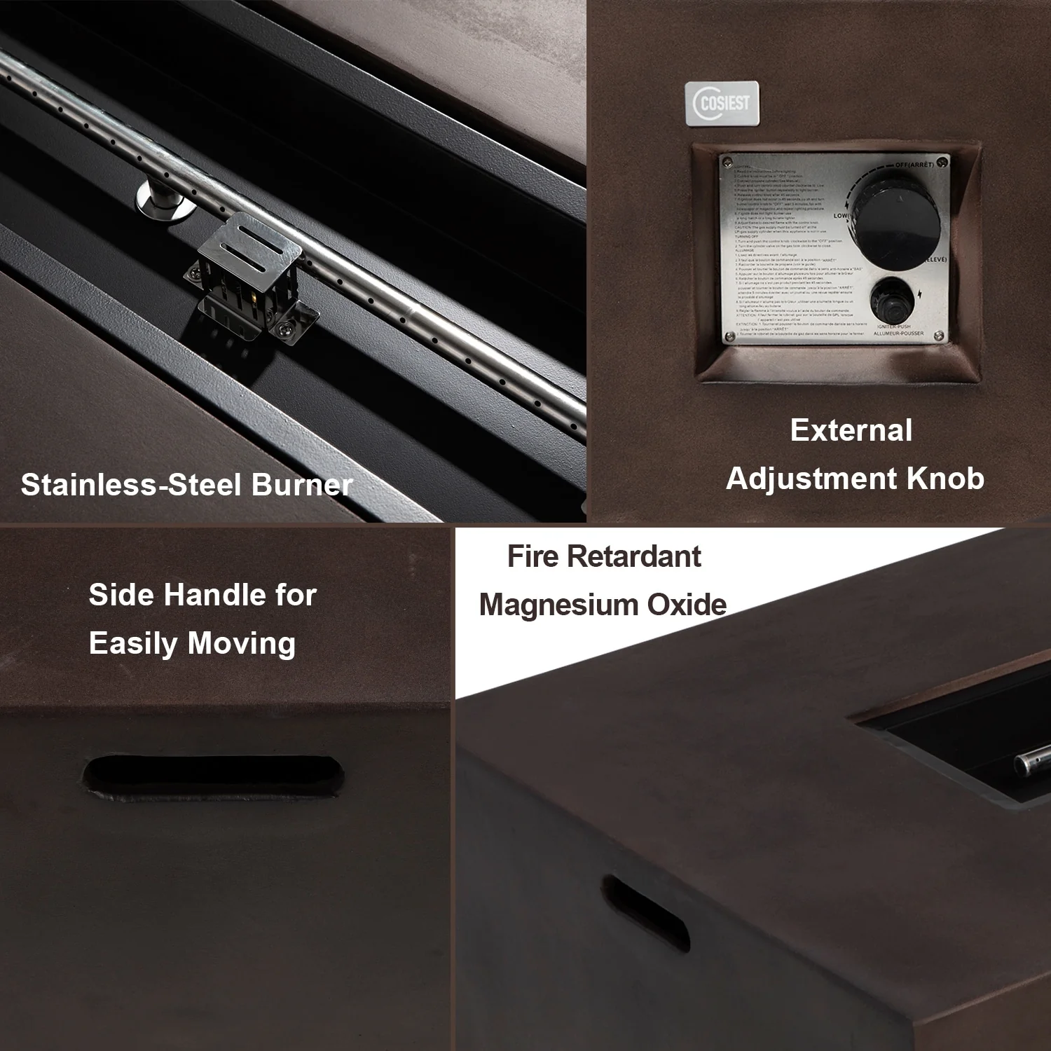Dakota Magnesium Oxide Square Gas Fire Pit by Christopher Knight Home