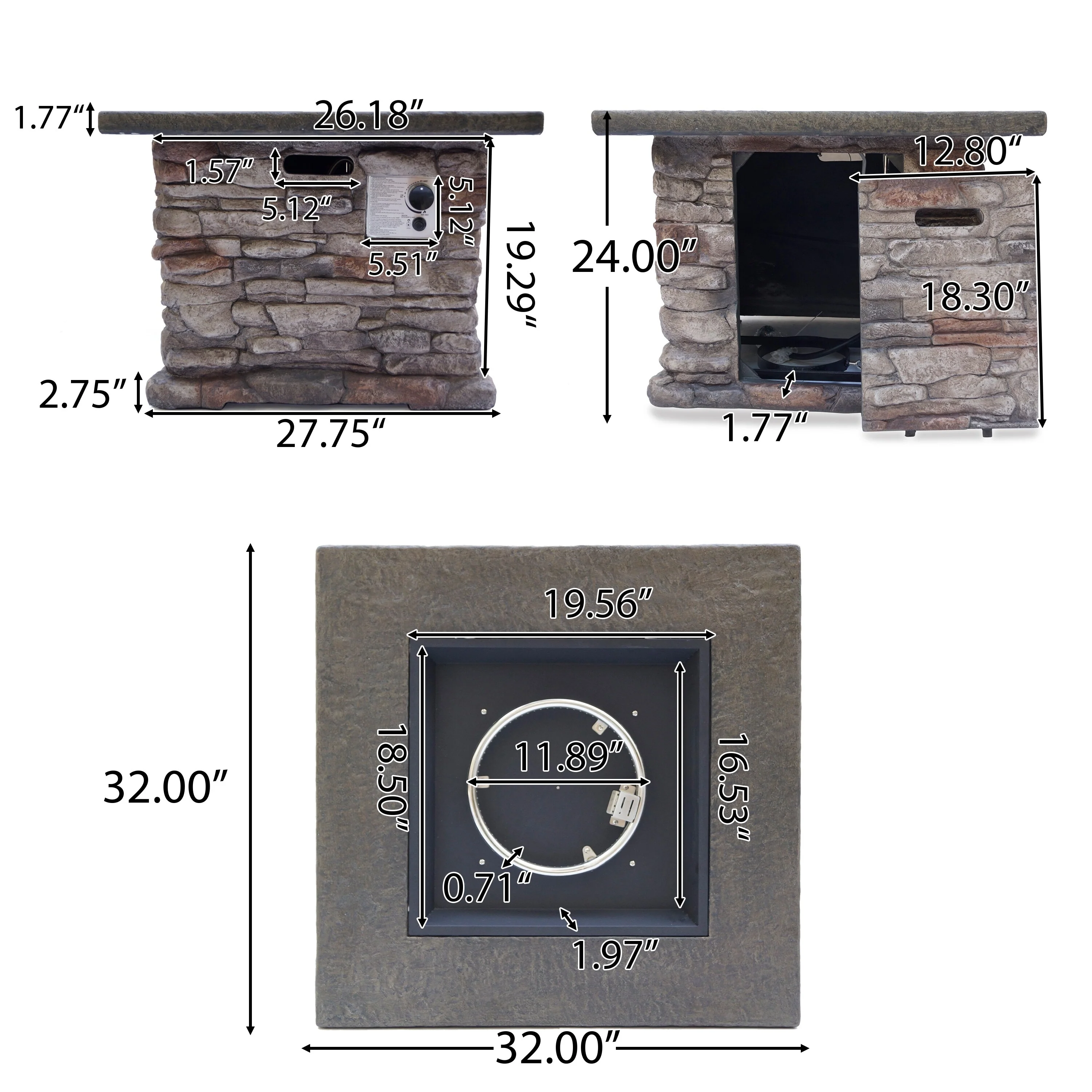 Stonewall Square Propane Firepit by Christopher Knight Home
