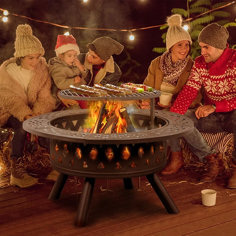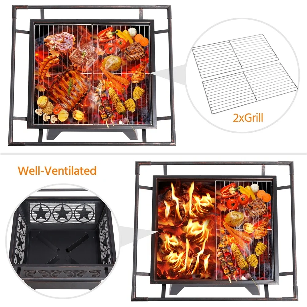 38-inch Outdoor Fire Pit Table with Cooking Grates
