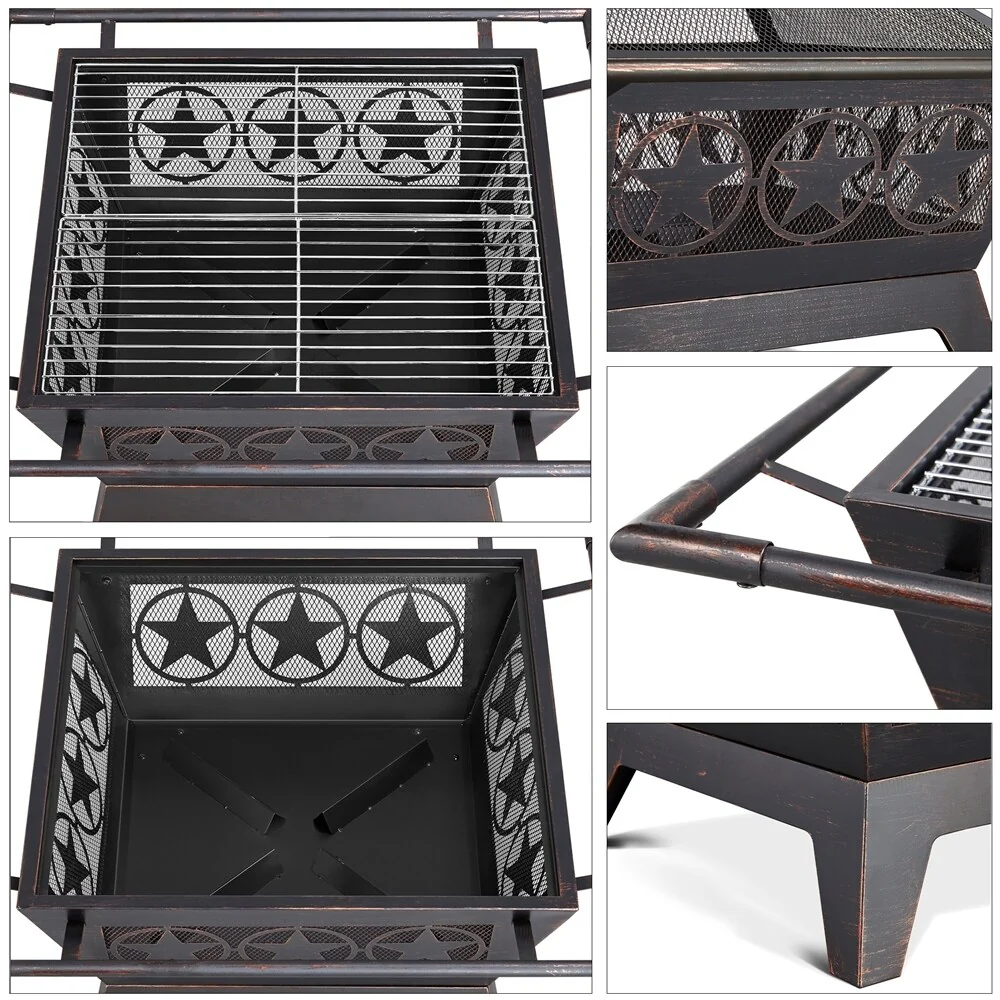 Yaheetech 34in Fire Pit Table Outdoor Patio Fire Pits Square Steel Stove with Mesh Screen and Cover