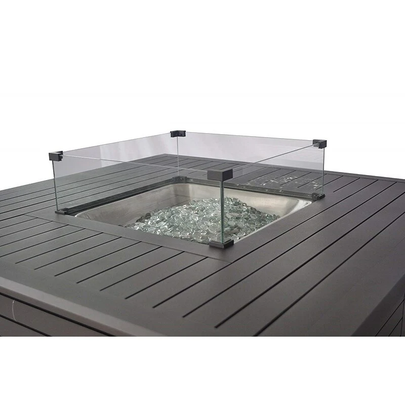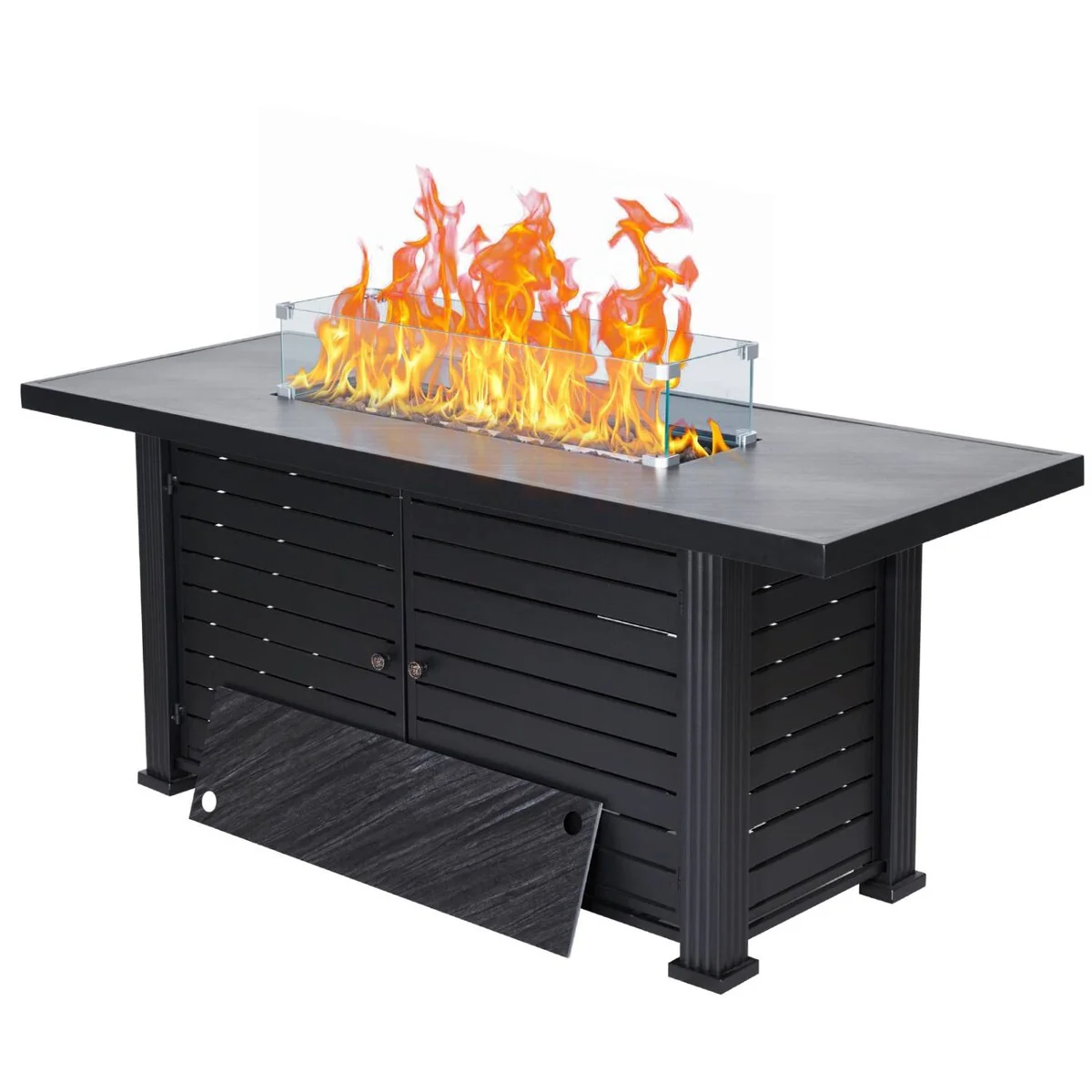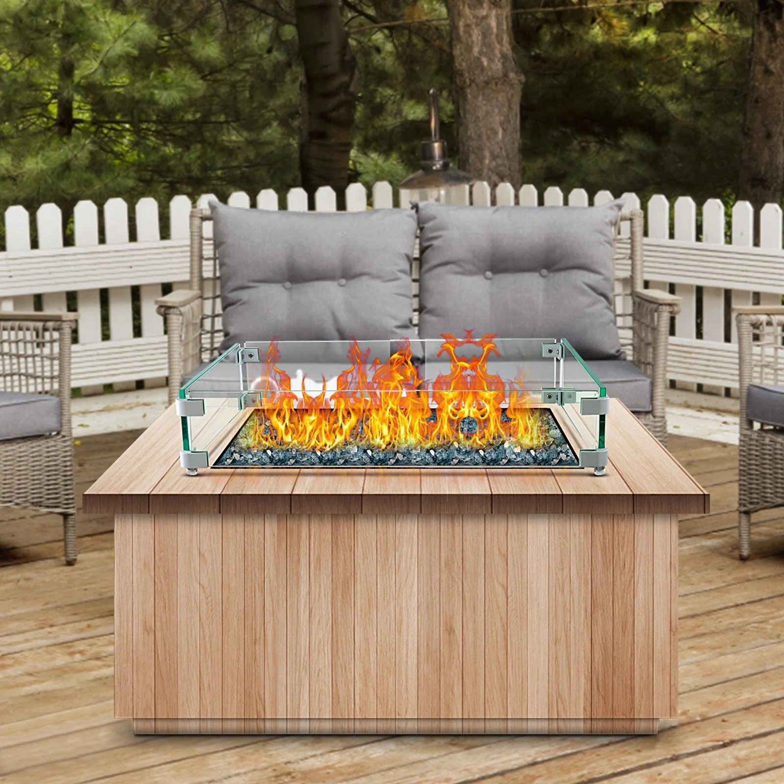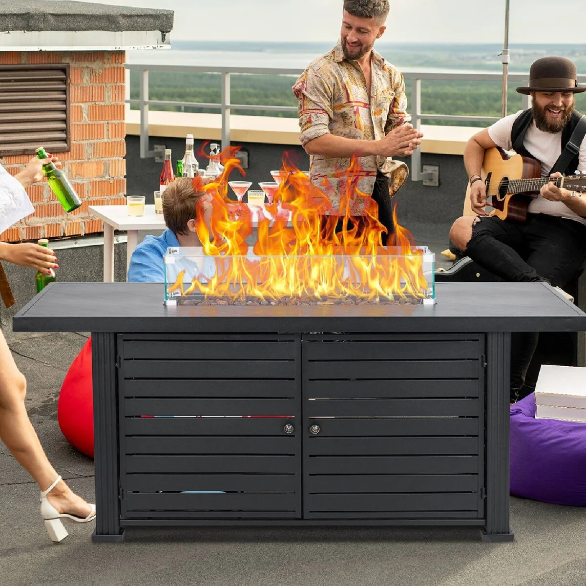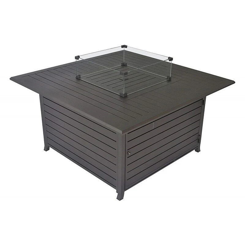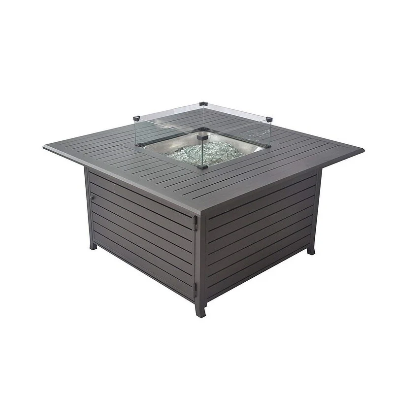 45 Inch 50,000 Btu Square Propane Gas Fire Pit Table,w/ Glass Wind Guard, Aluminum Tabletop, Glass Rocks, Cover and Table Lid